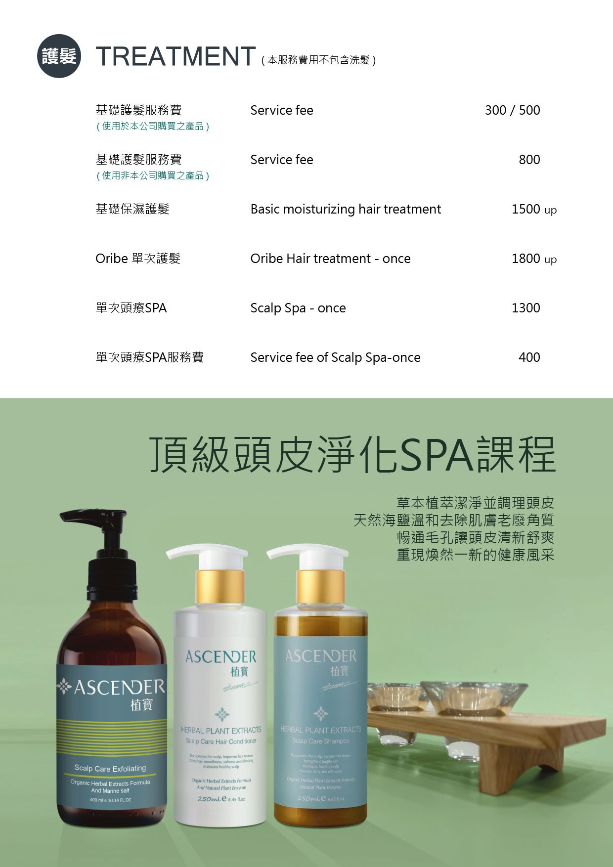精油洗髮$ 800+ORIBE護髮$ 2,000