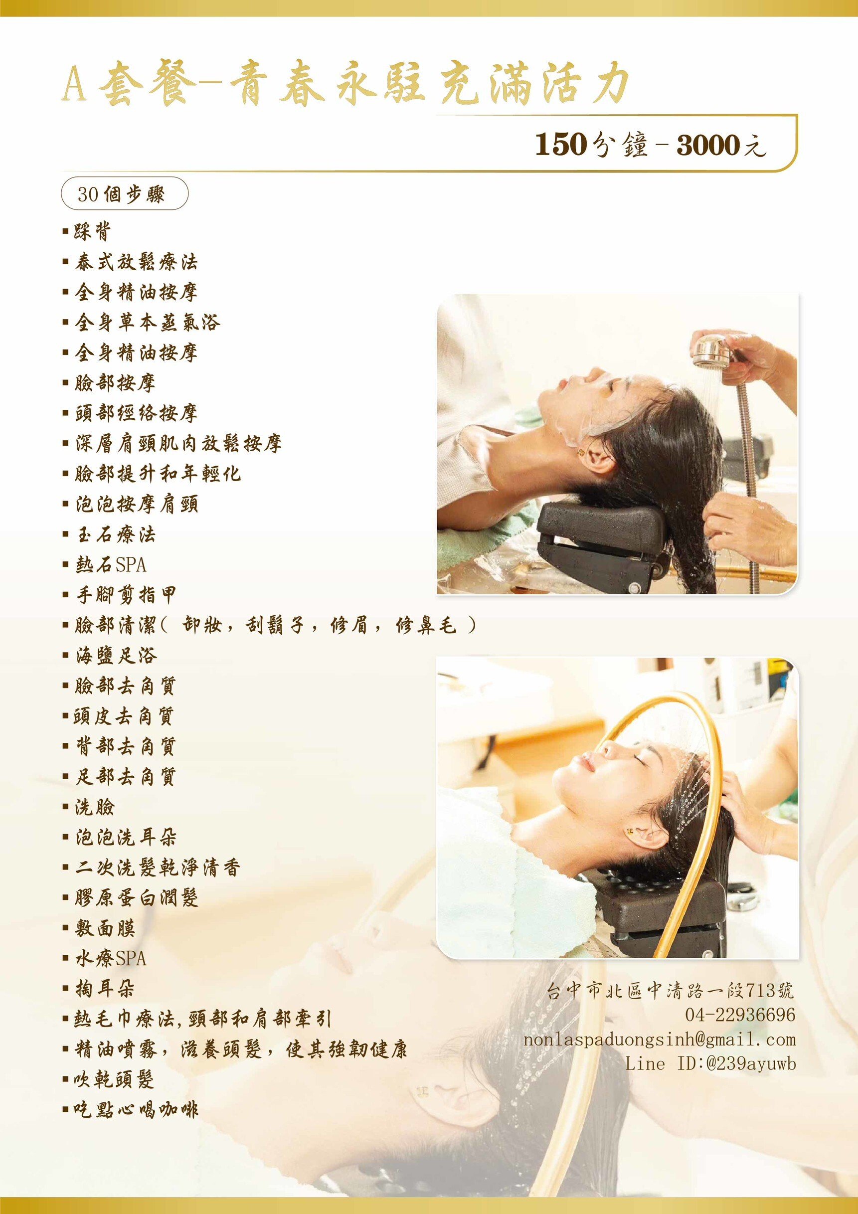 ・方案項目之順序,將依照個人身體狀況及現場人員評估調整,請於下訂前知悉。