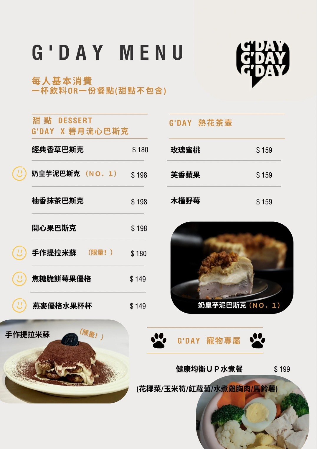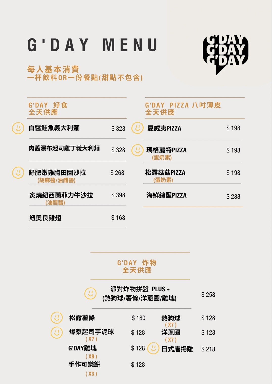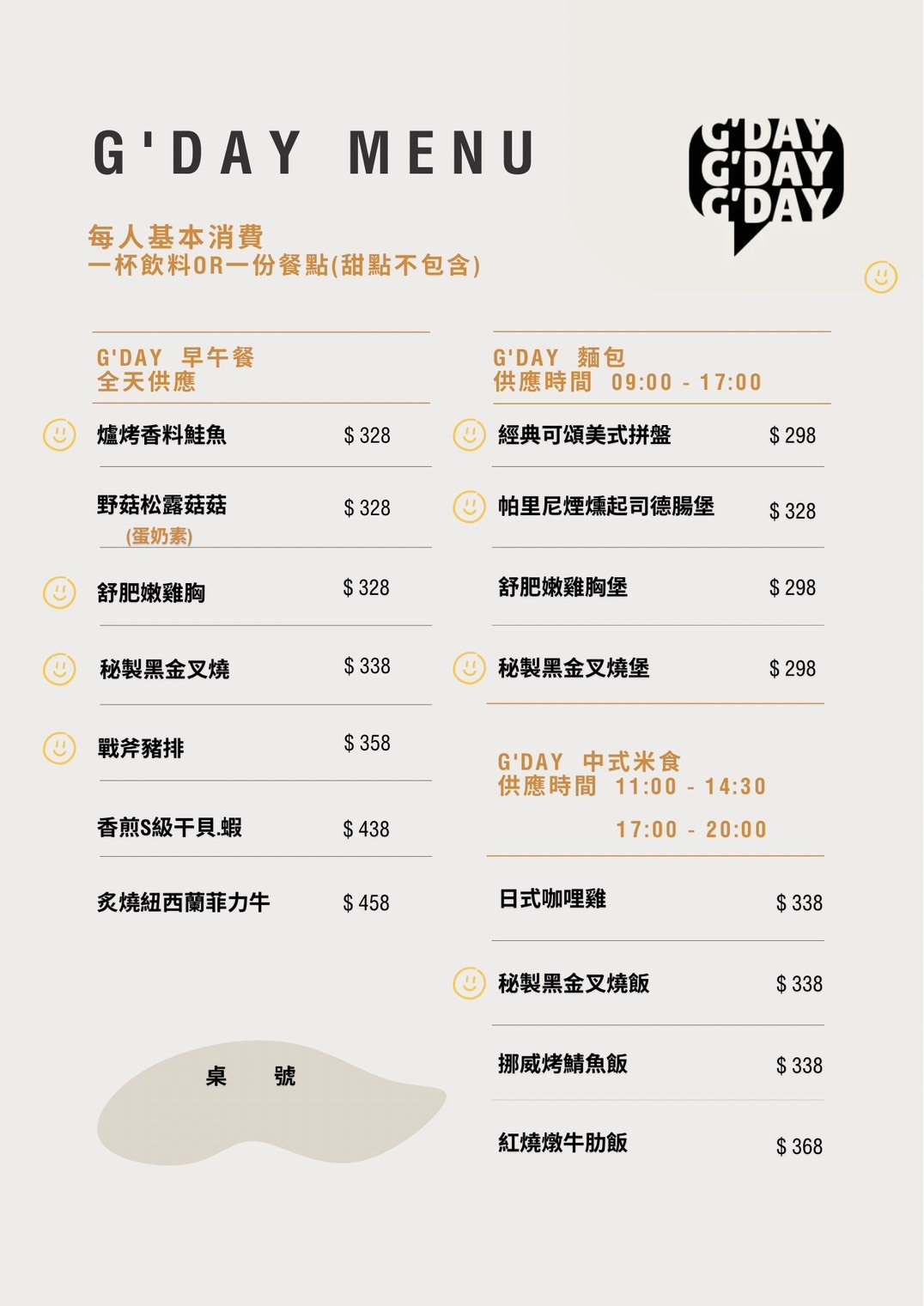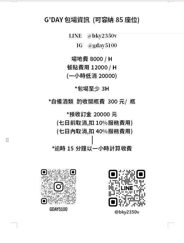 G'DAY |線上預訂(大於8人以上或當天訂位,煩請電洽;若有人數變更請提前電聯告知 )