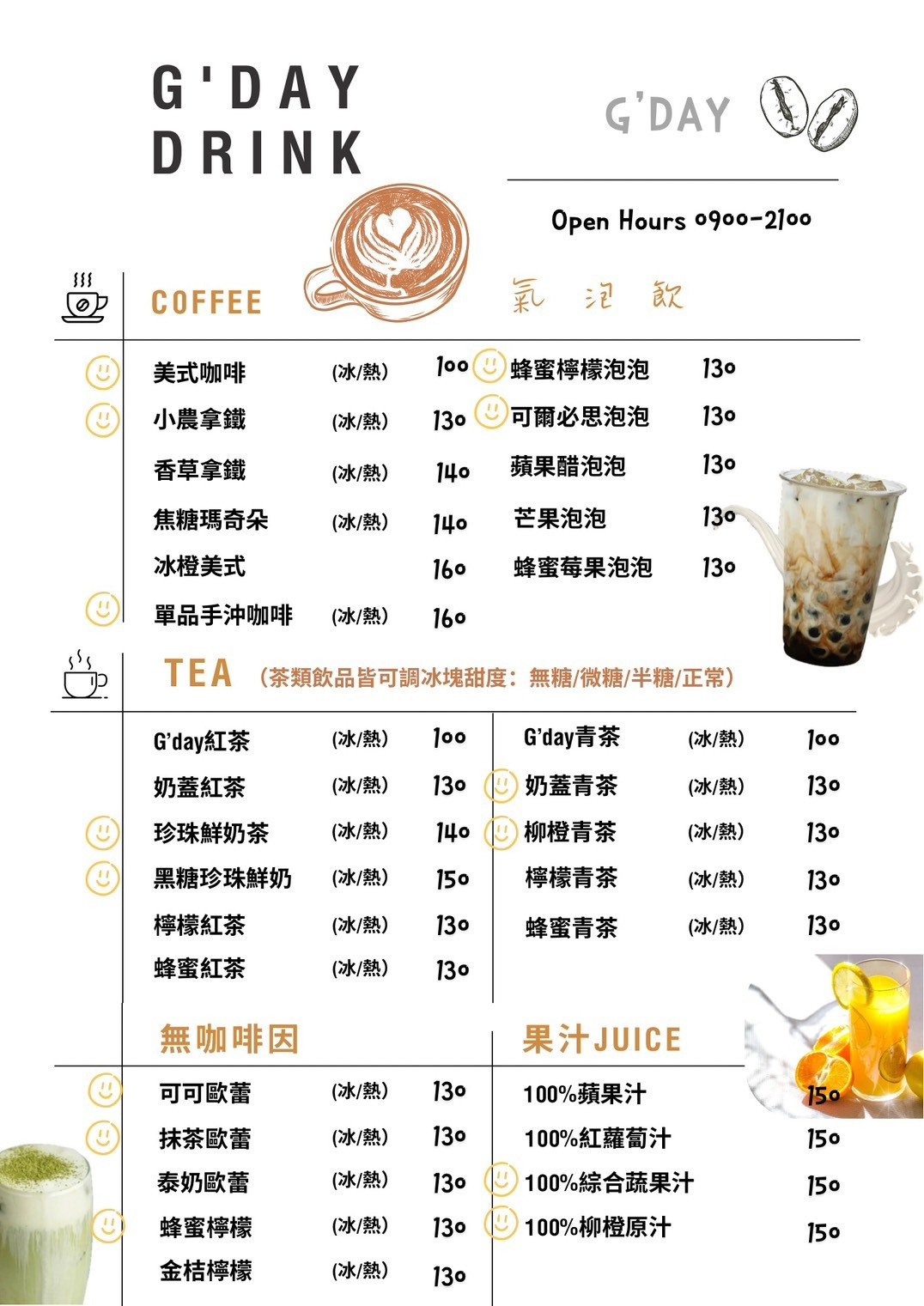- 1. 低消為一杯飲品或一份餐點(炸物、甜點不計入),現場無須服務費,若有人數變更,請提前電話告知。