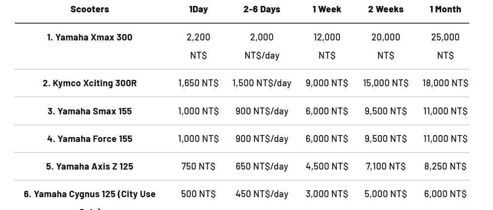 If you have any questions about rental pricing, please visit our website at taipeiscooterrentals.com or contact us on WhatsApp at +886908289299