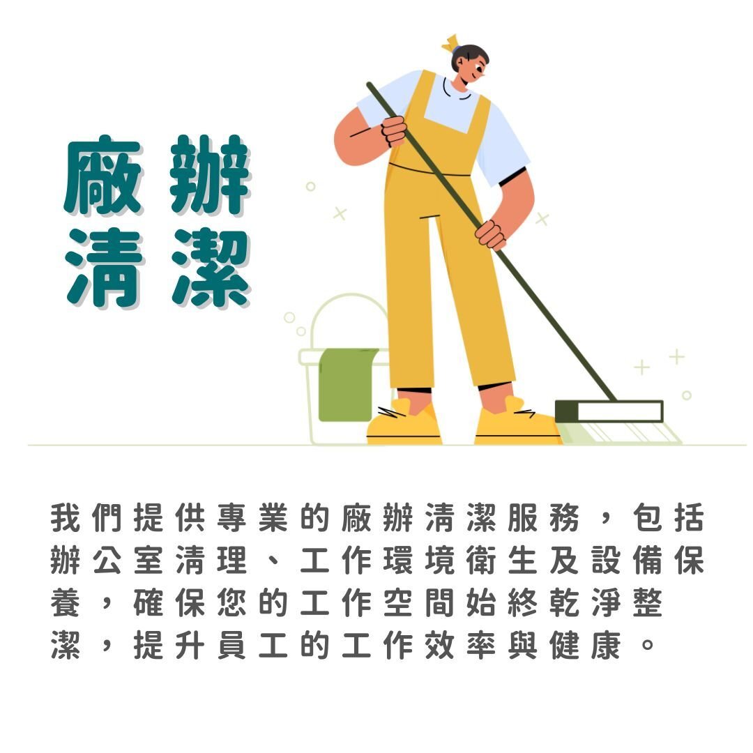 外牆清洗|地板清洗|裝潢粗清|裝潢後細清|大型清潔等多元項目。