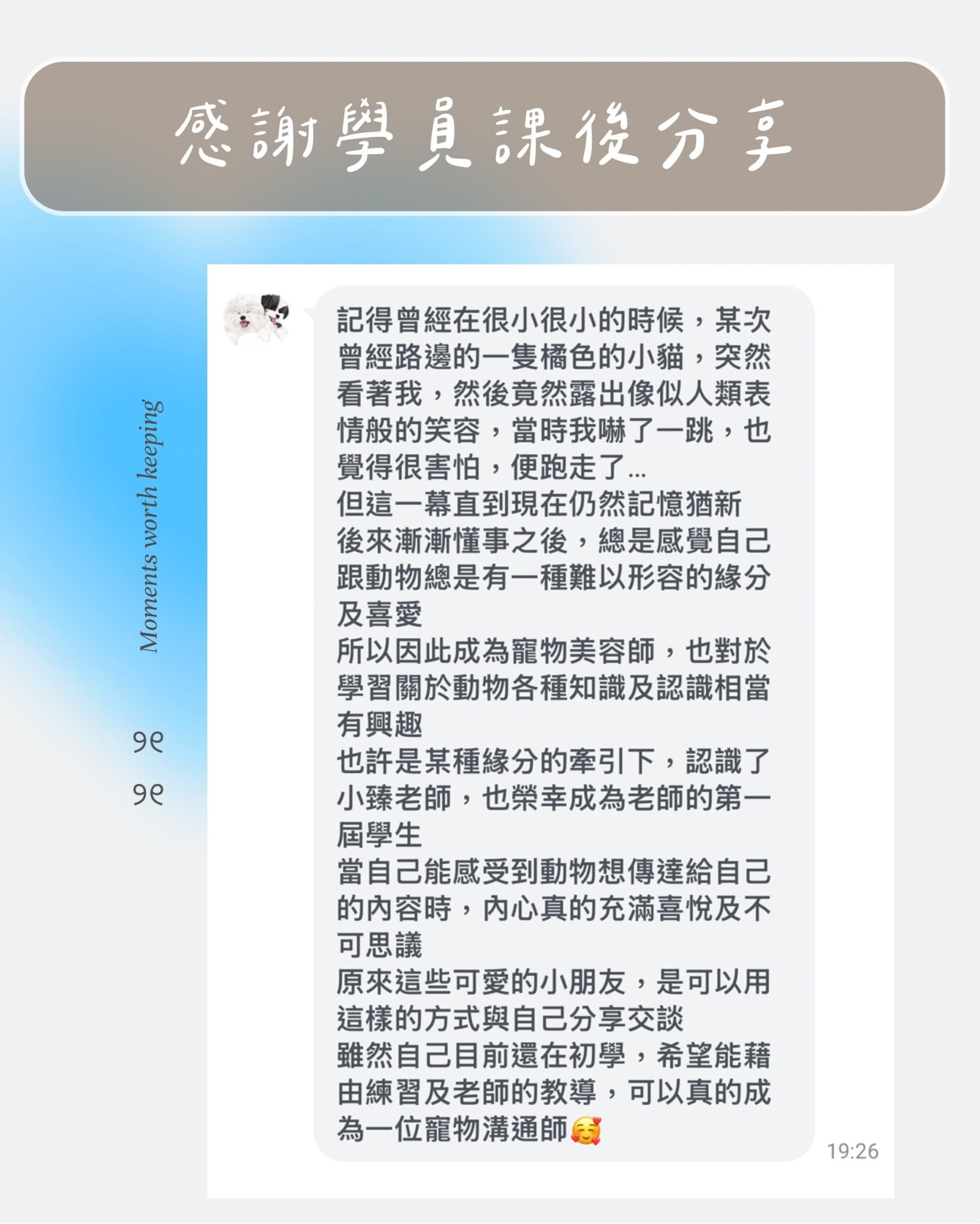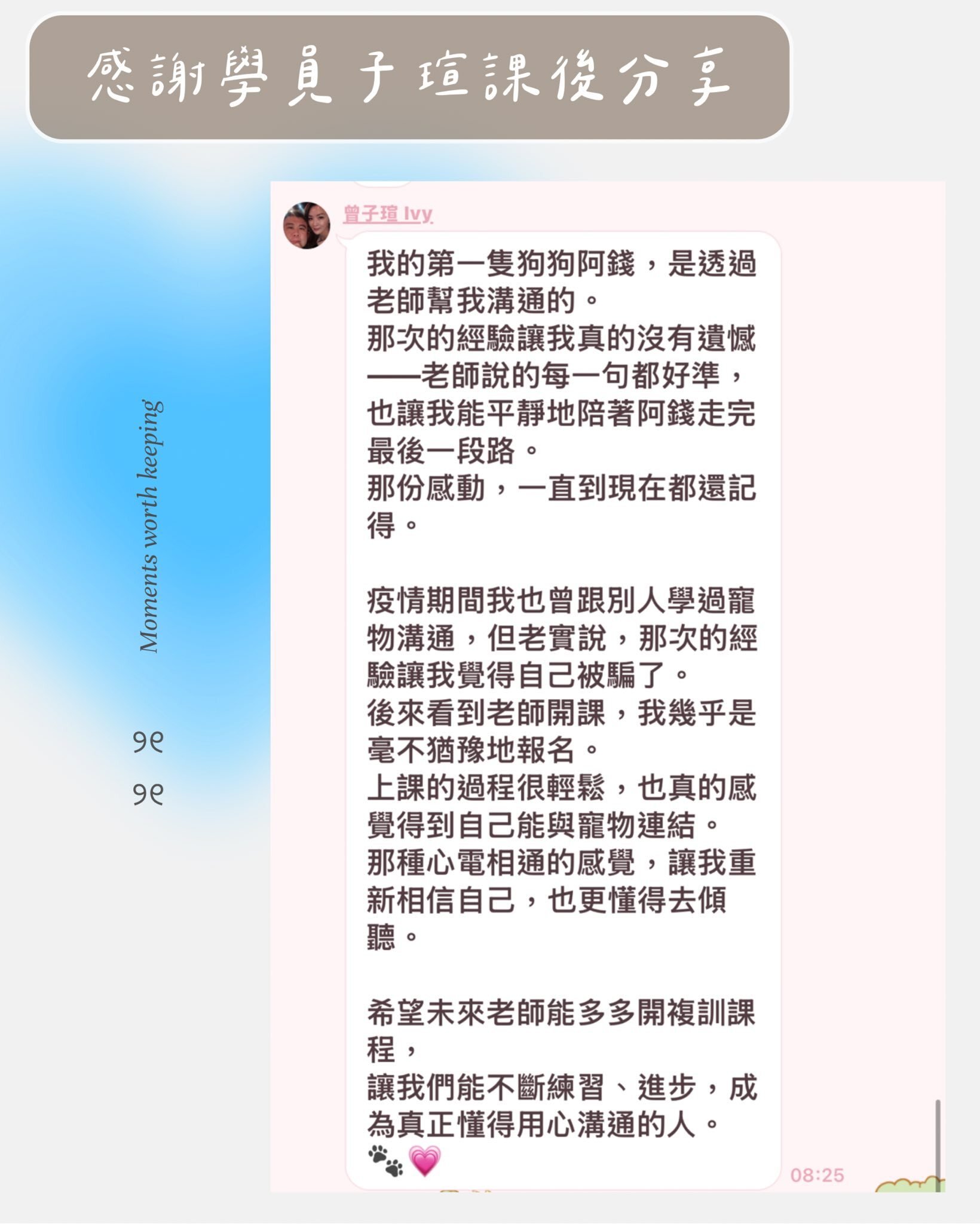 ,提供線上 LINE、語音通話(語音通話請飼主事前先預約告知)。一般溝通以線上文字為主。, 全遠端預約