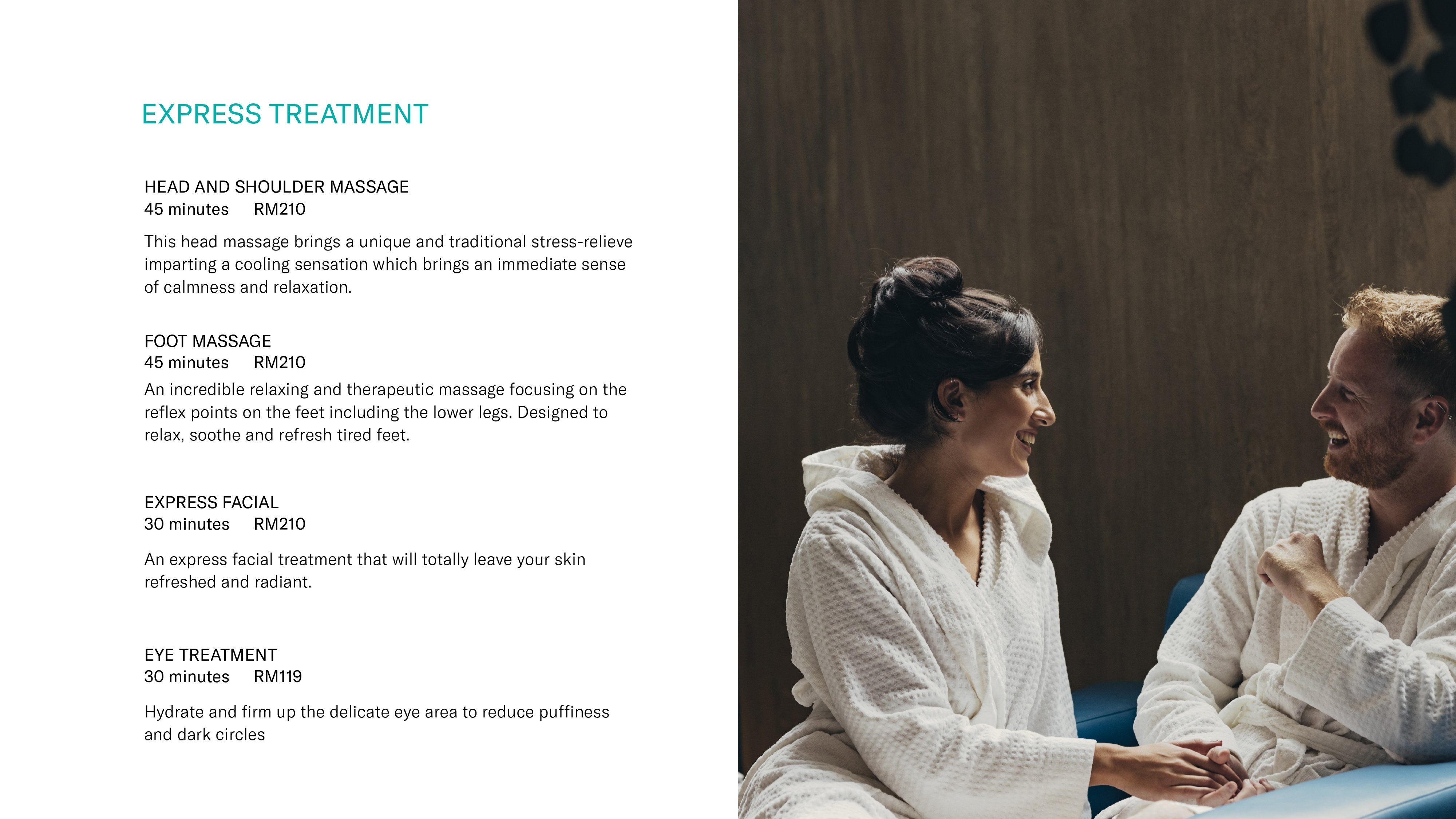 ・The Body Massage which can bring tranquility to the mind to ease your stress and a truly magical moment that awakens your senses.