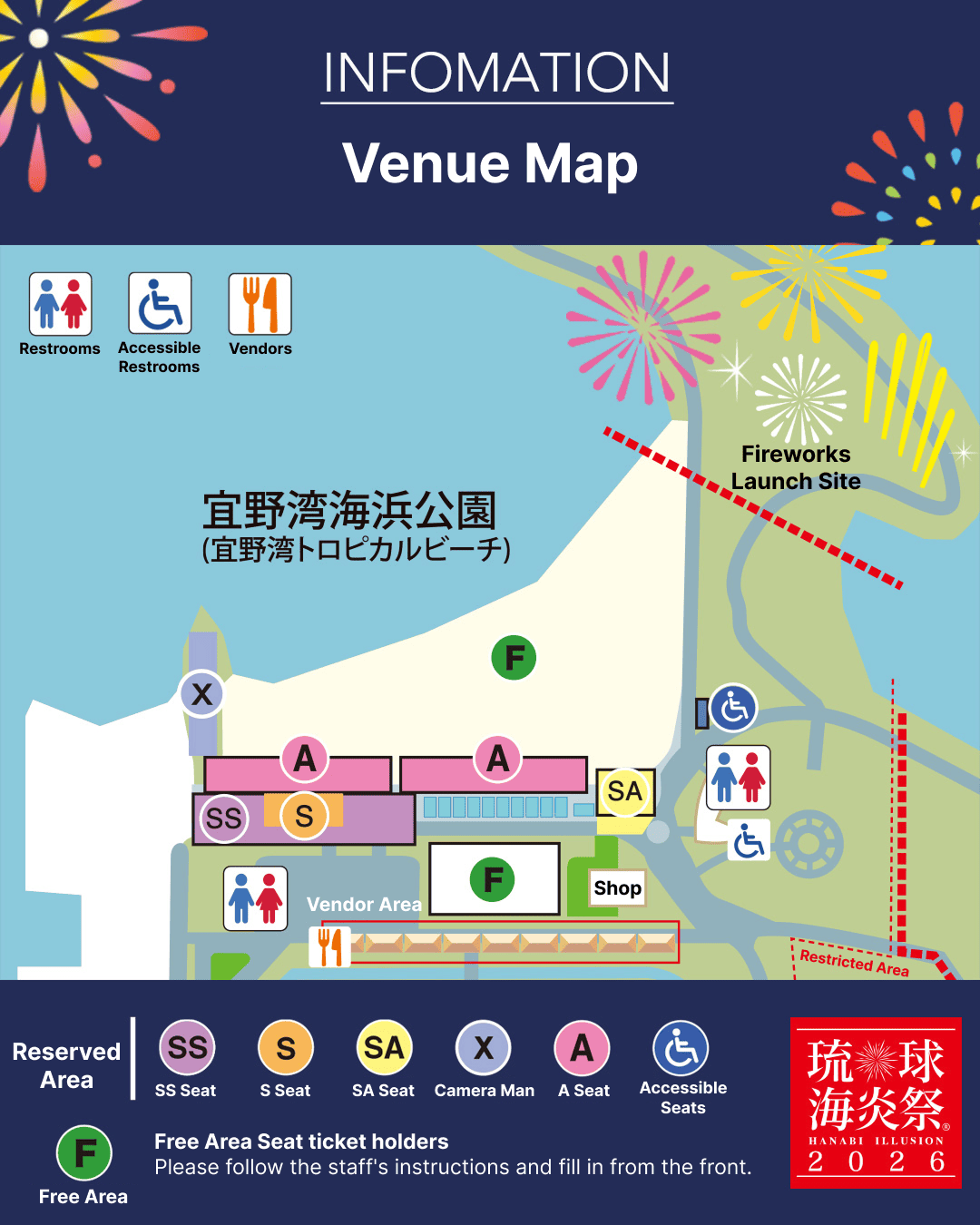 🎆 Want the best view of the fireworks? With this ticket, you’ll be seated right on the beach or grassy area of Ginowan Seaside Park, choosing your favorite spot freely.