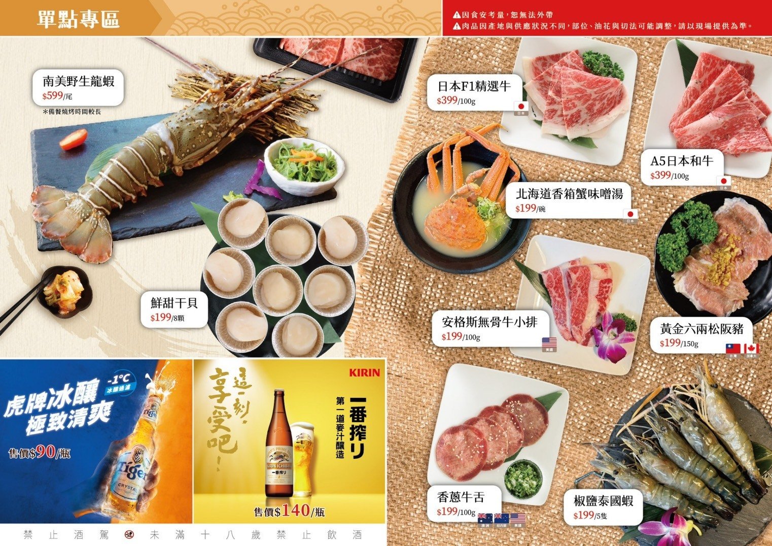 啤酒 1 瓶 ( 600 ml,每桌 1 份;數量有限,送完為止 )