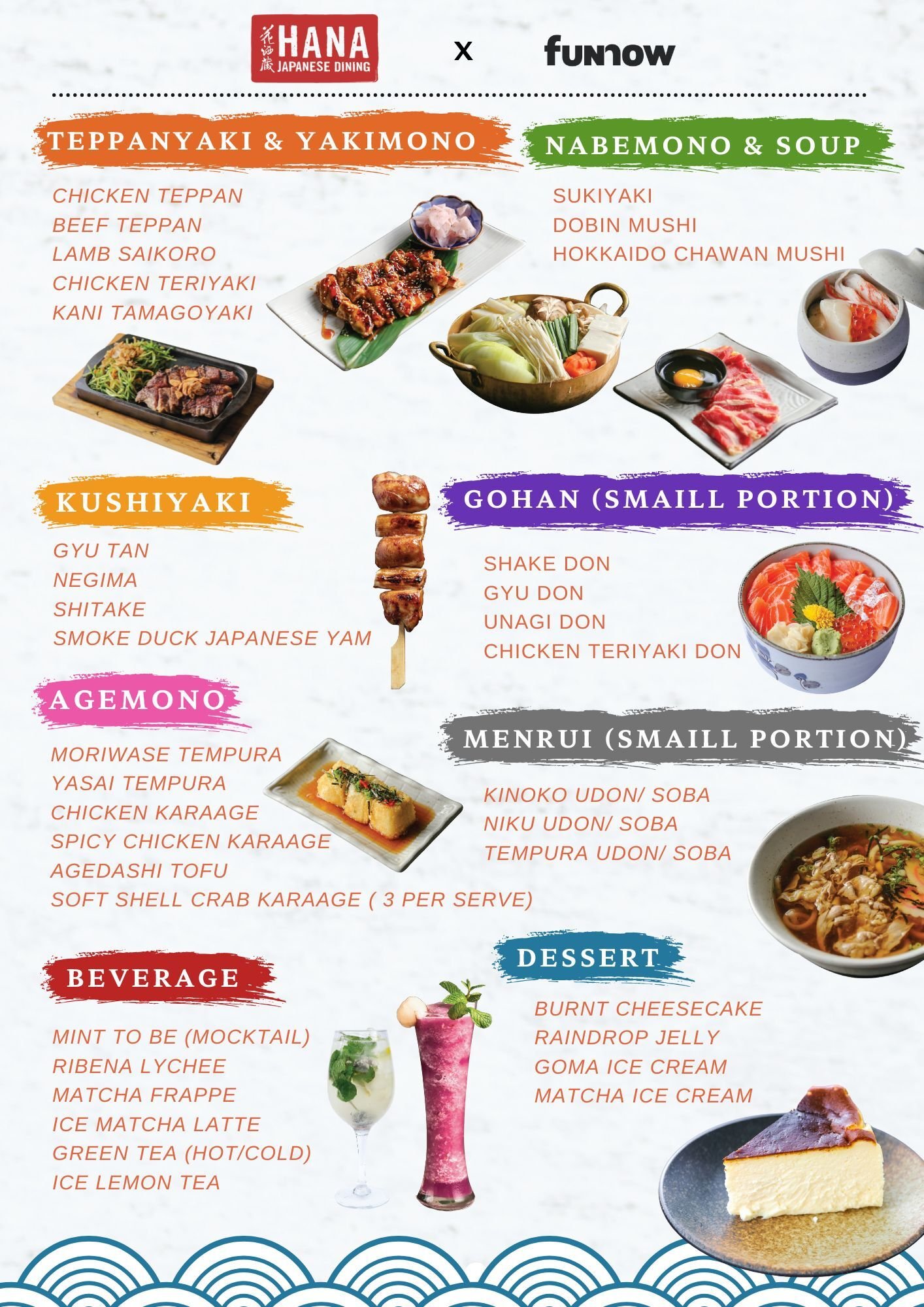 ・Hana Japanese Dining brings a gastronomical experience that is sure to delight your senses through borderless Japanese cuisine. Infused with the impact of western food cultures, and the abundance of sake and whiskey choices, everything is wrapped up in one stylish and friendly dining atmosphere..