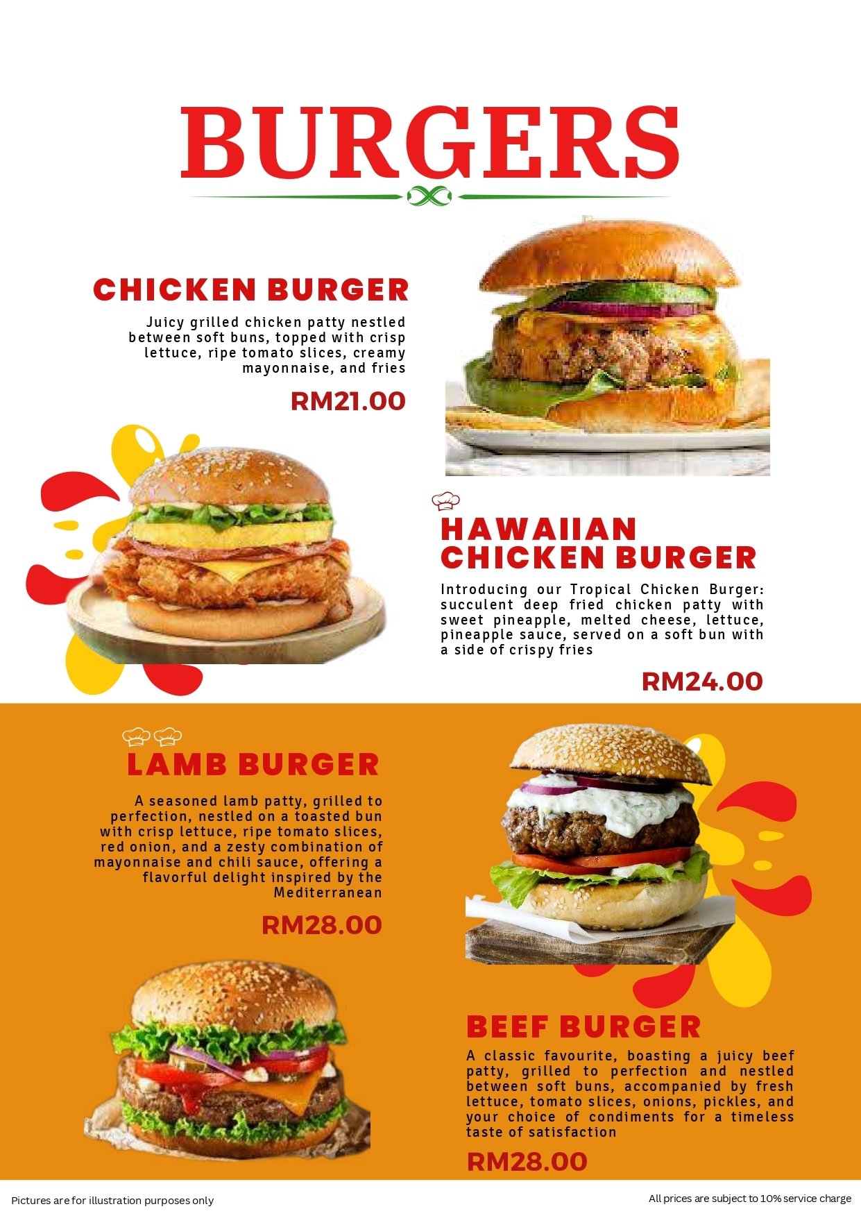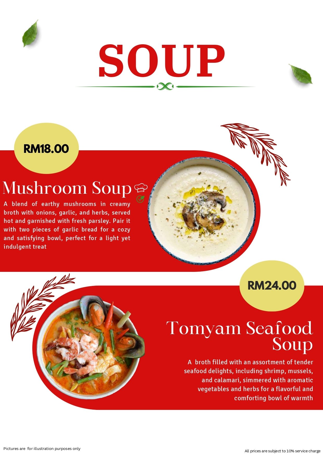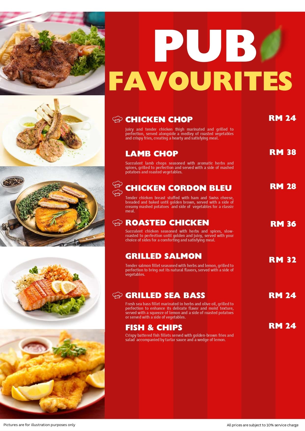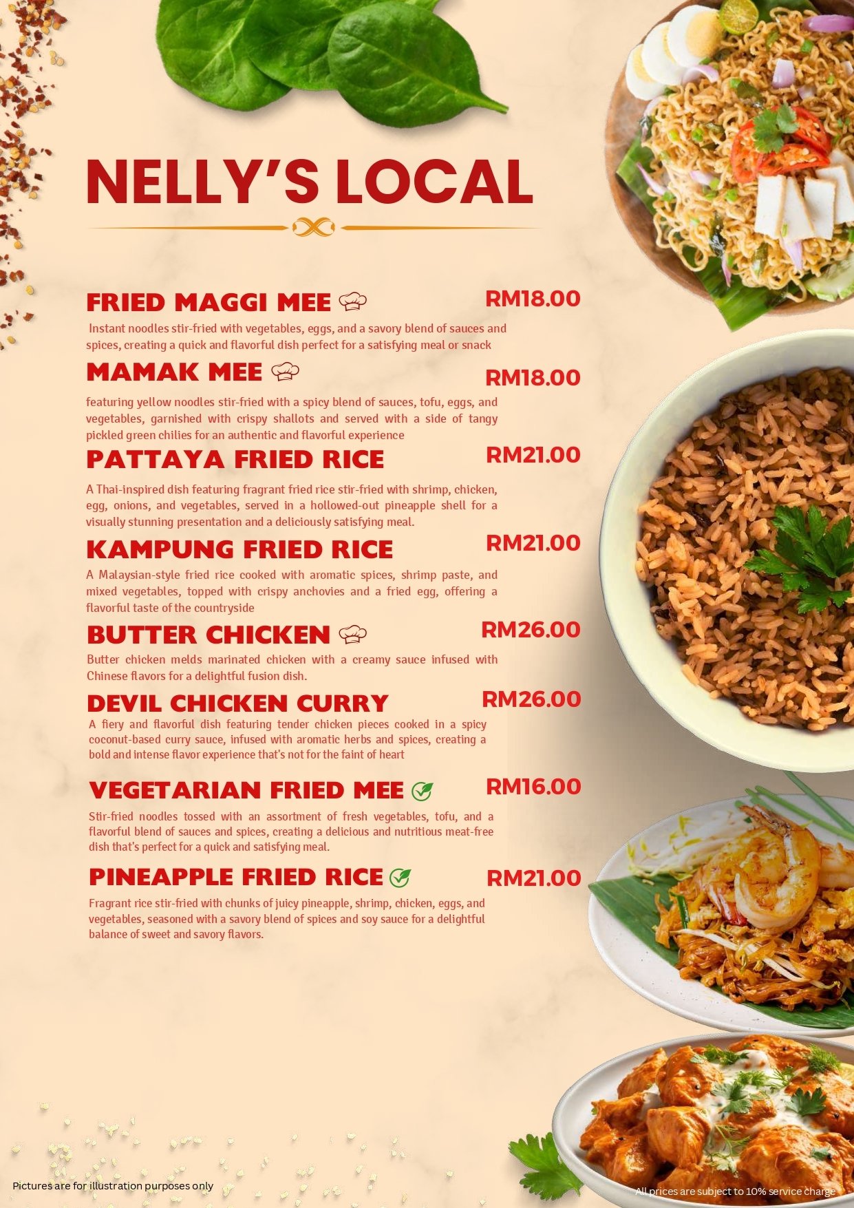 - Pictures shown are for illustrations purpose only. Dishes ordered are subject to daily menu provided.