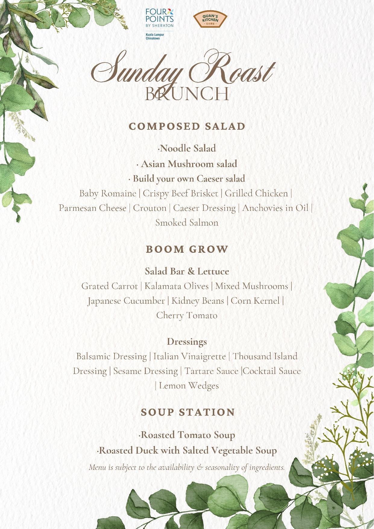 ・Step into a vibrant atmosphere where the energy of Chinatown meets the comfort of an international setting. The Quan's Kitchen Sunday Roast Brunch is your weekly invitation to relax and connect.