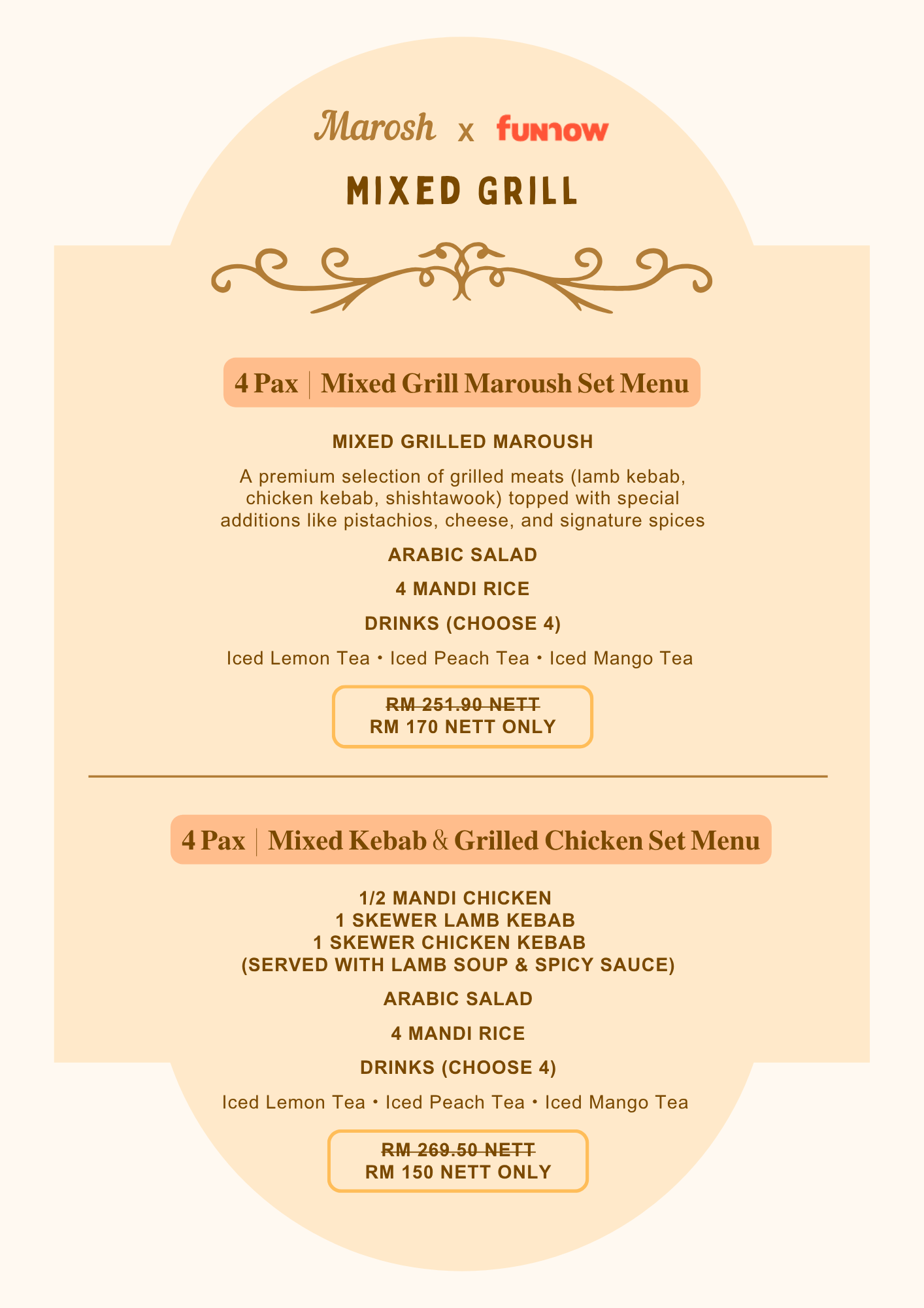 Nestled in the heart of Bukit Bintang, Marosh Restaurant brings you the authentic flavours of Lebanon with a warm, welcoming atmosphere perfect for family and friends.