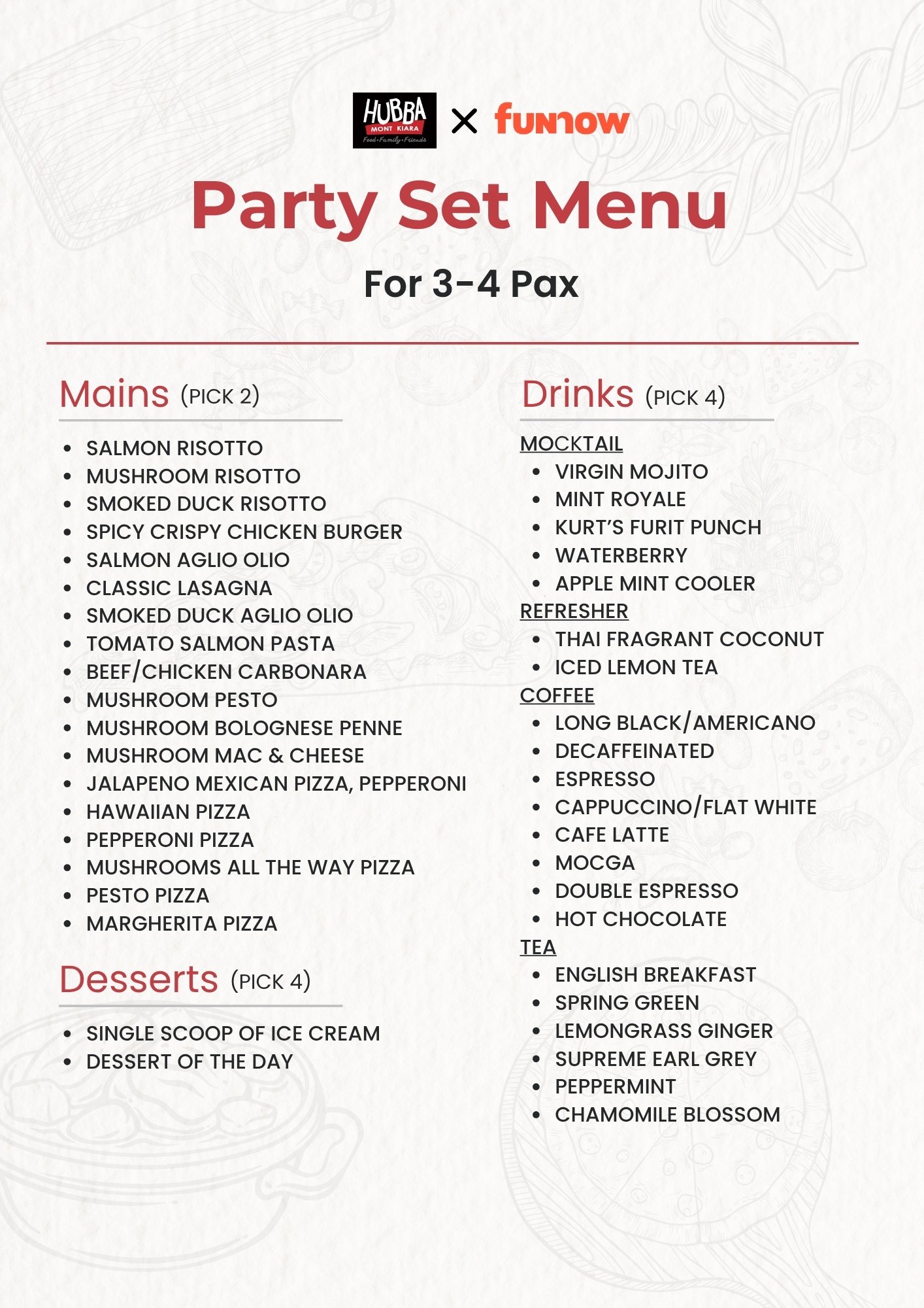 - Seating operates on a first-come, first-served basis. Hubba Mont Kiara reserves the right to manage seating arrangements as needed.