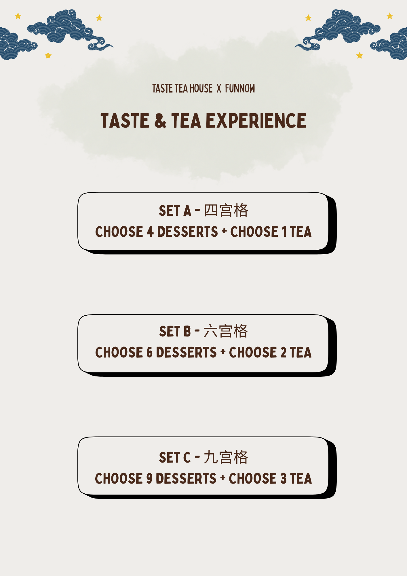 A Four-Dessert Set (四宫格) served with one tea of your choice.