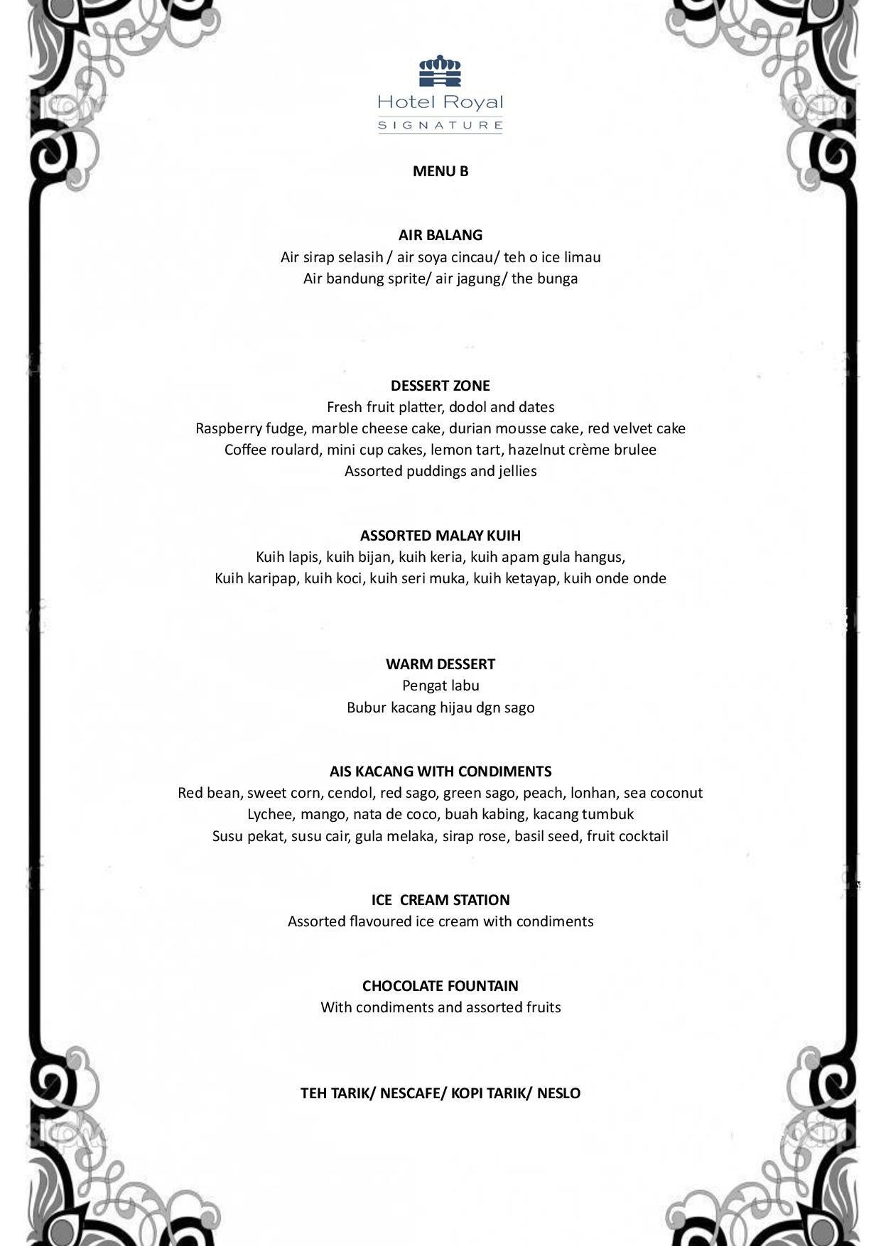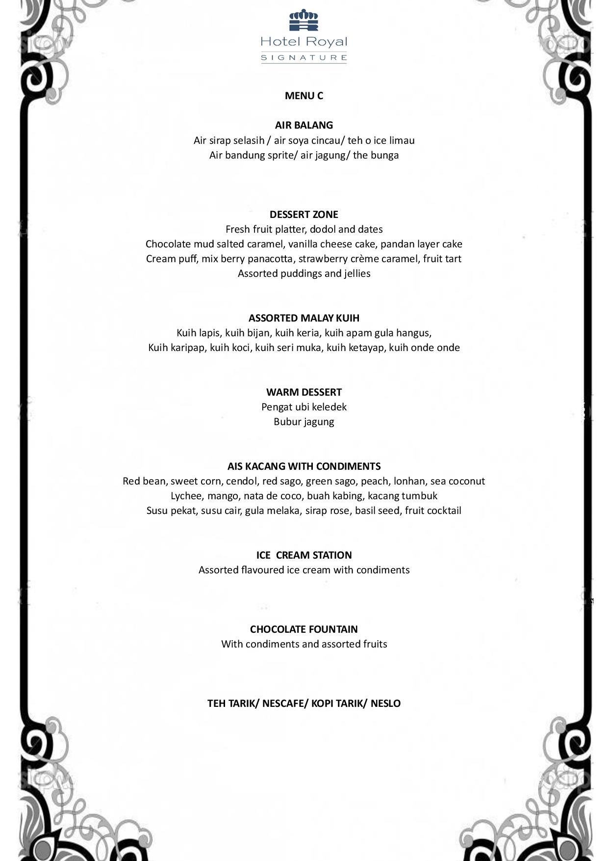 - Pictures shown are for illustrations purpose only. Dishes ordered are subject to daily menu provided.
