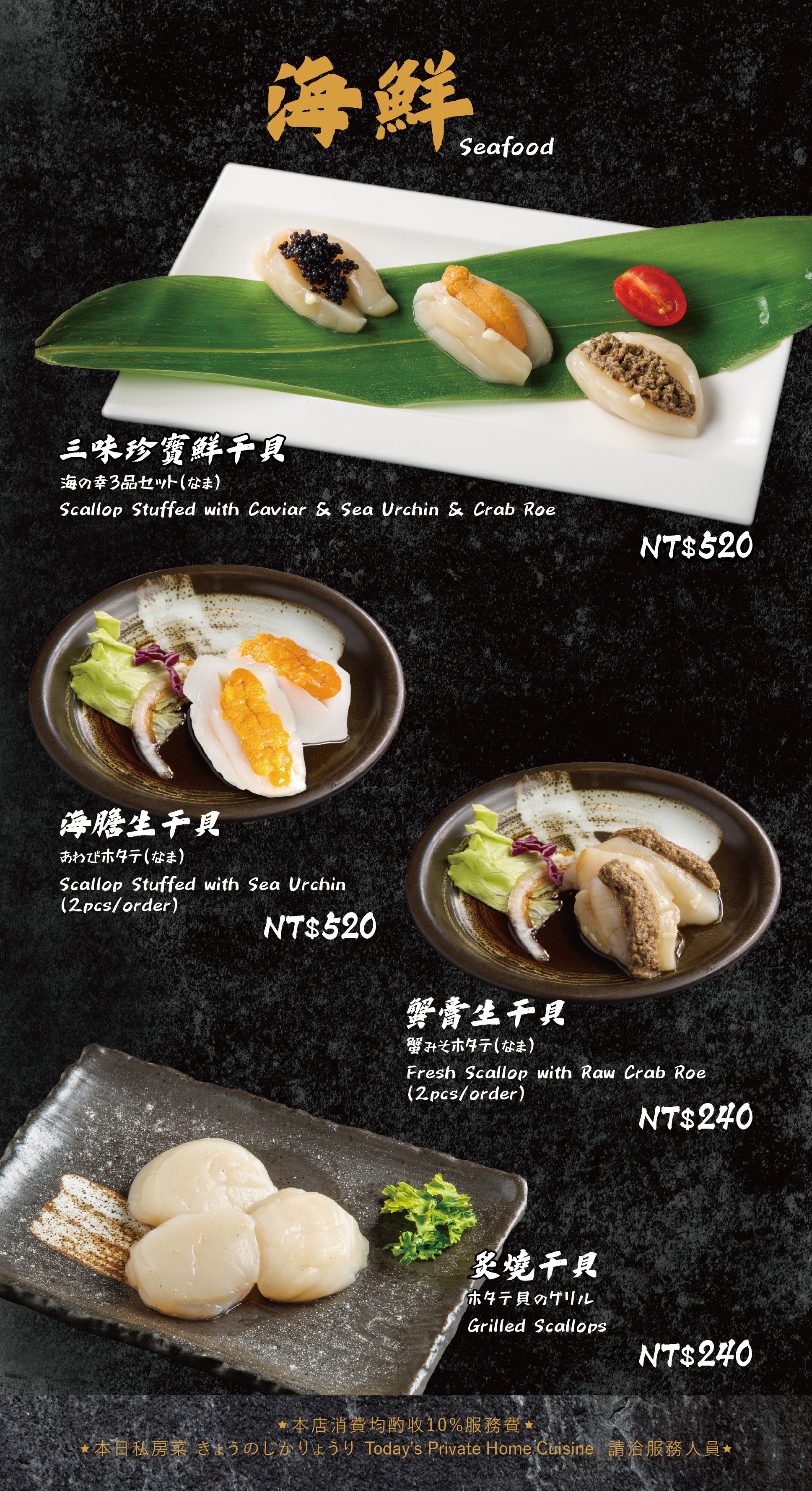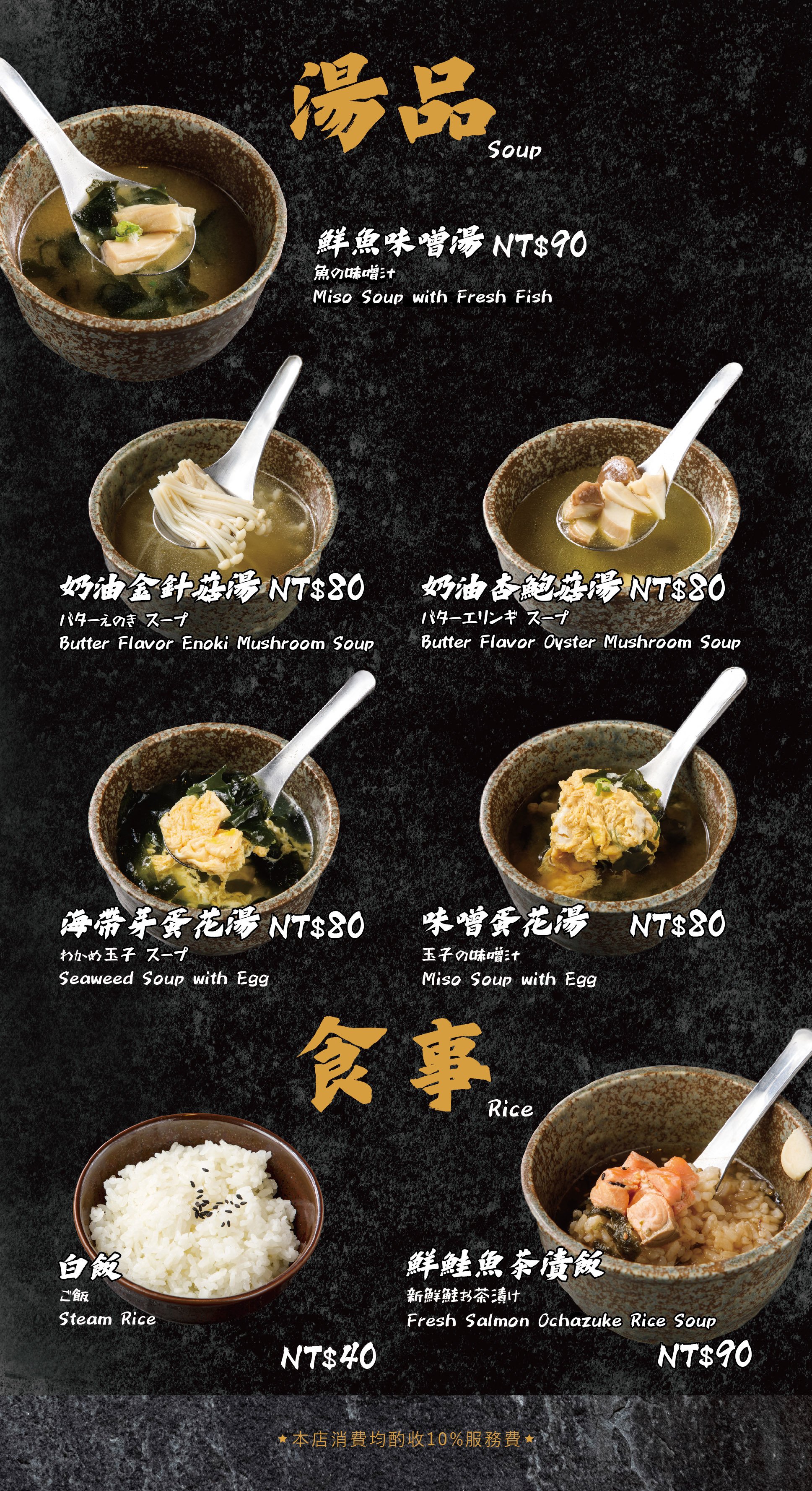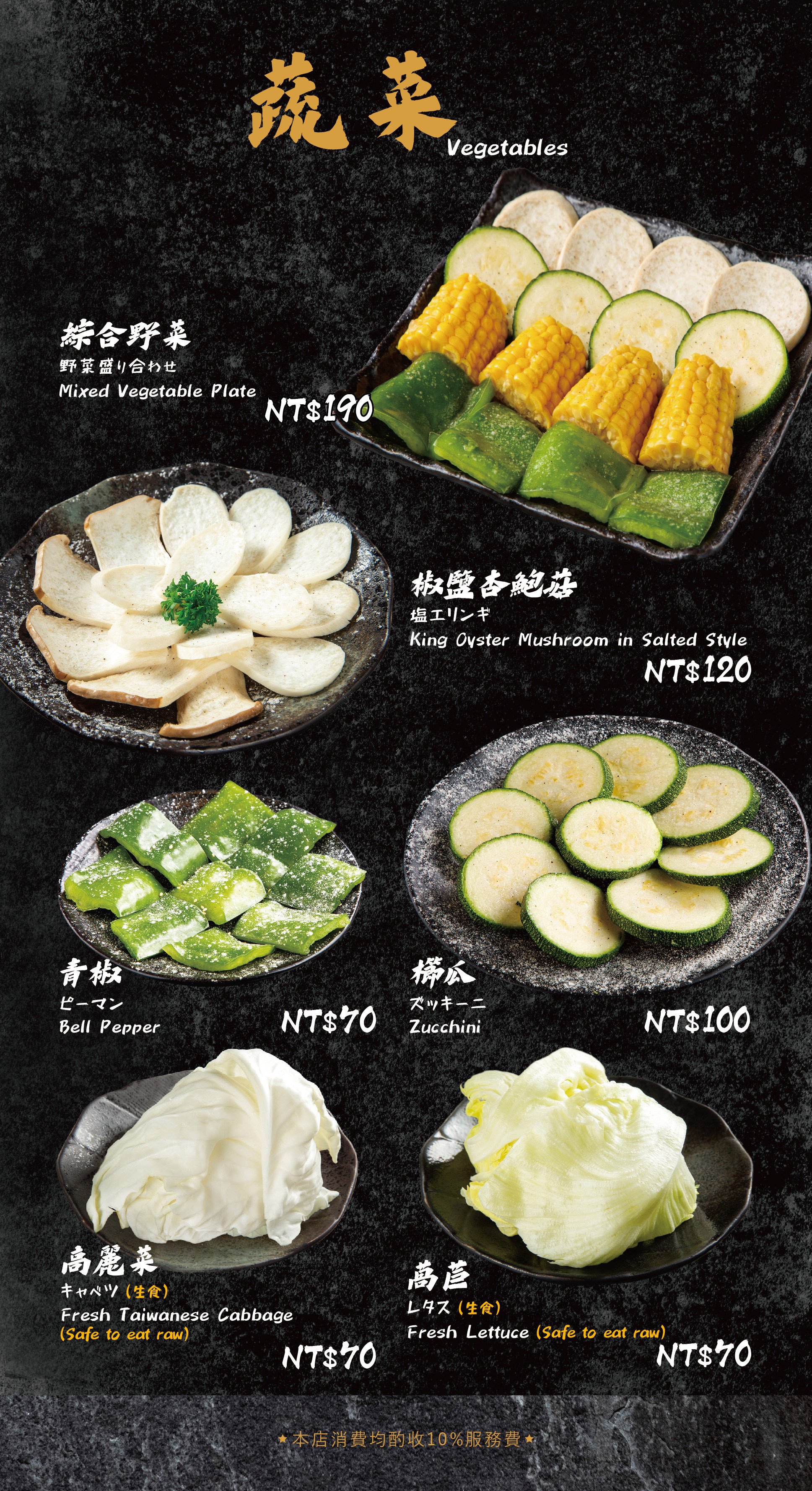 ・現場需收 10% 服務費。