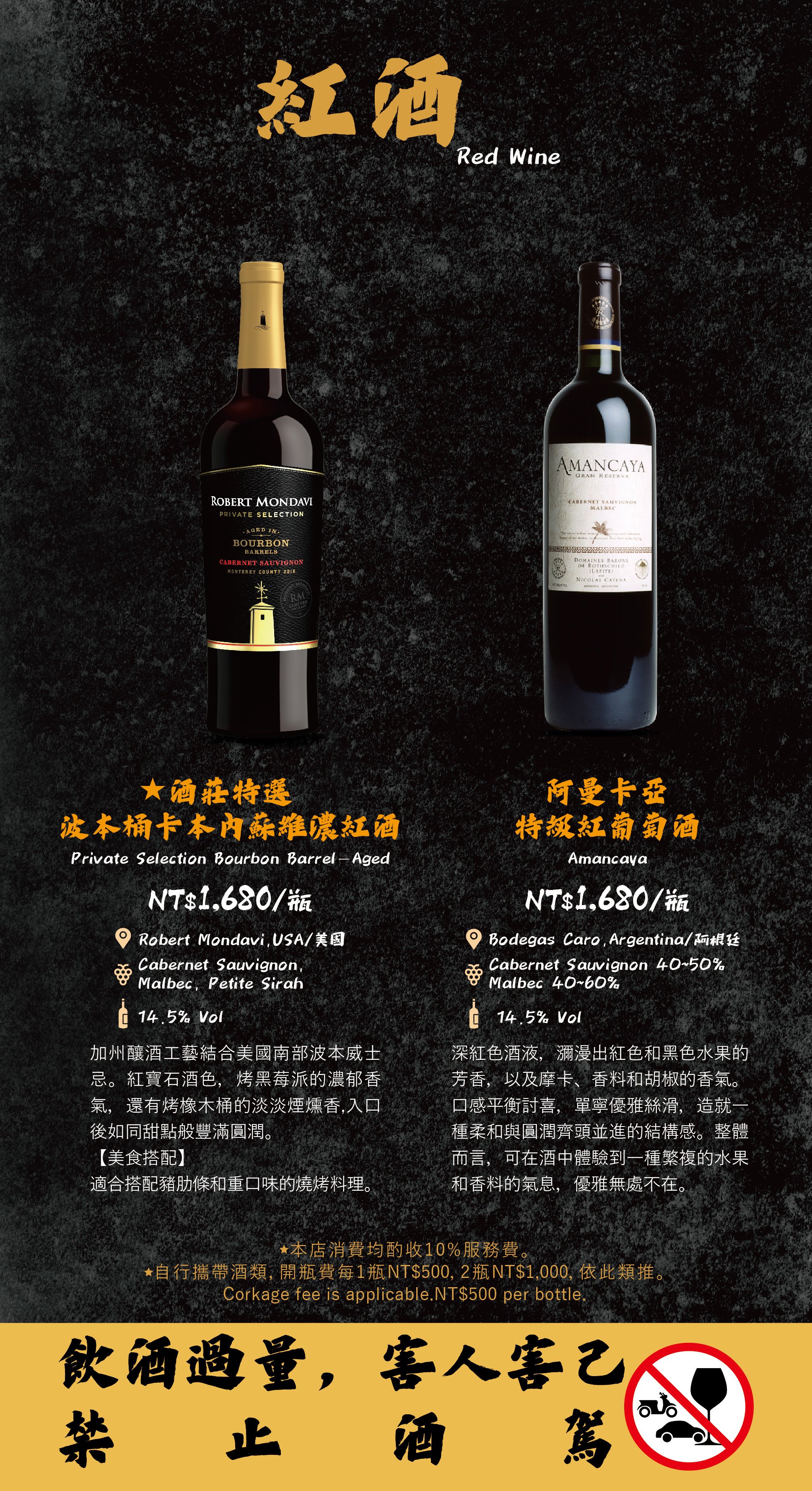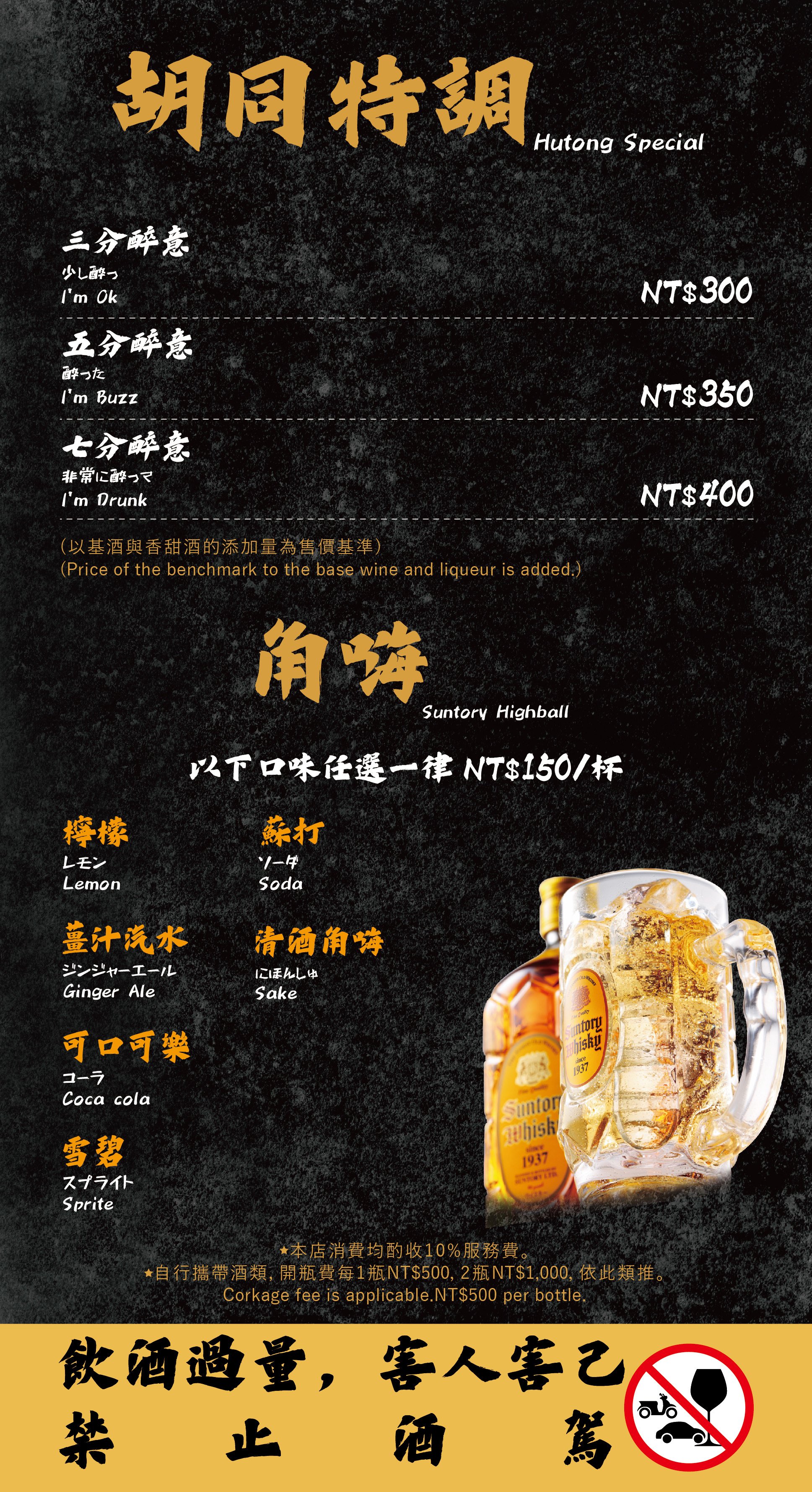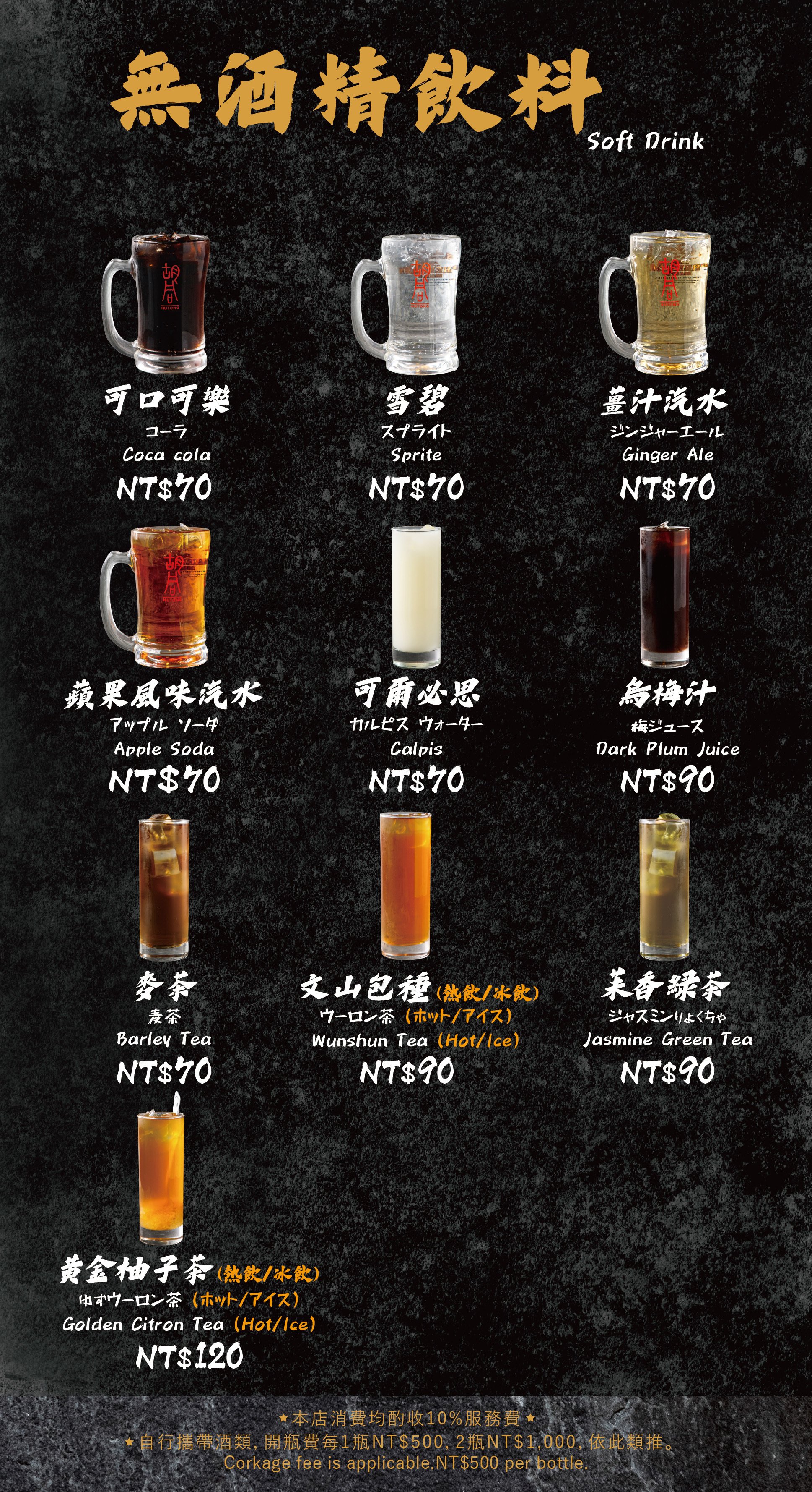 - 自帶酒水,需收開瓶費每瓶 TWD 500。