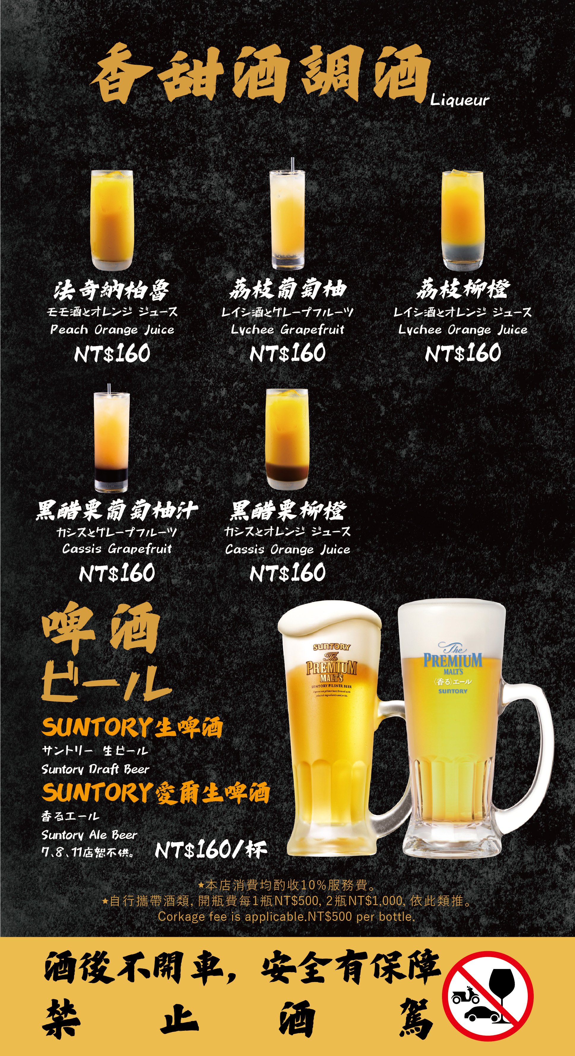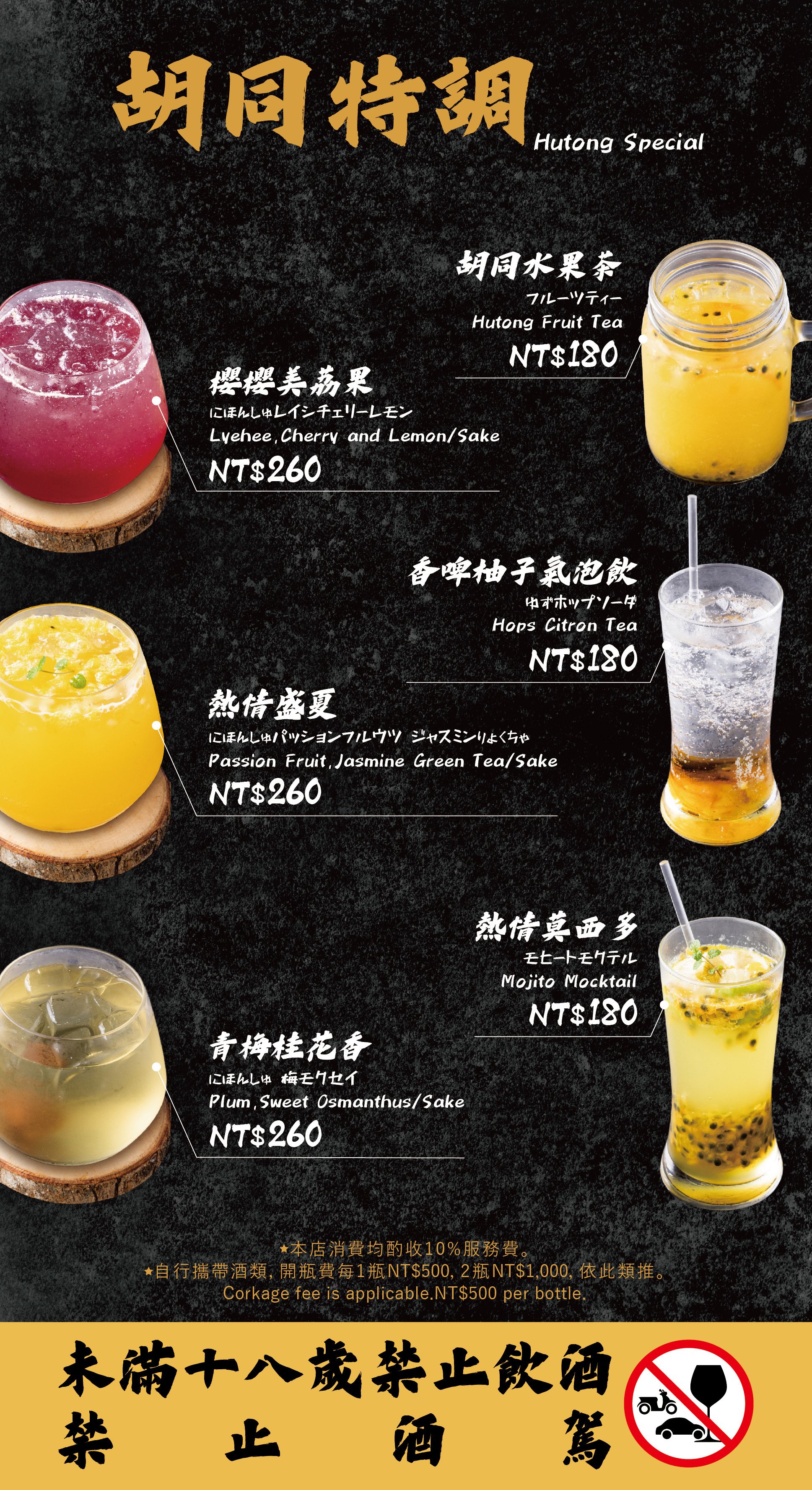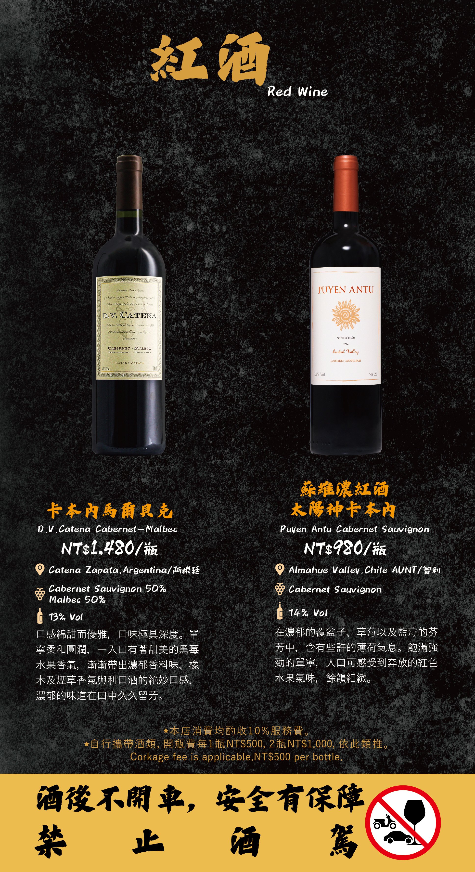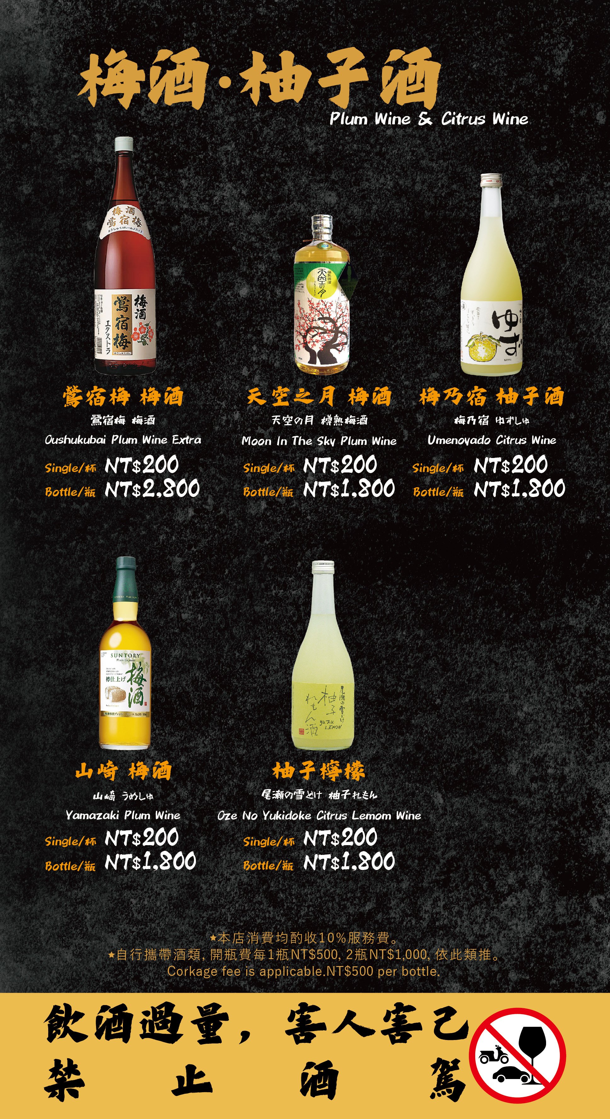 - 自帶酒水,需收開瓶費每瓶 TWD 500。