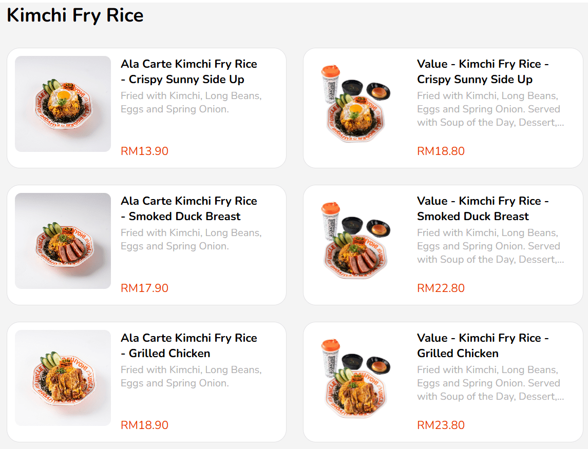 - Pictures shown are for illustrations purpose only. Dishes are subject to the daily menu provided.