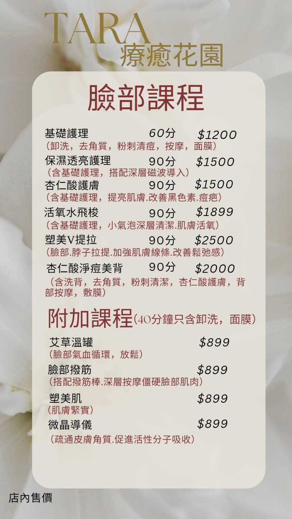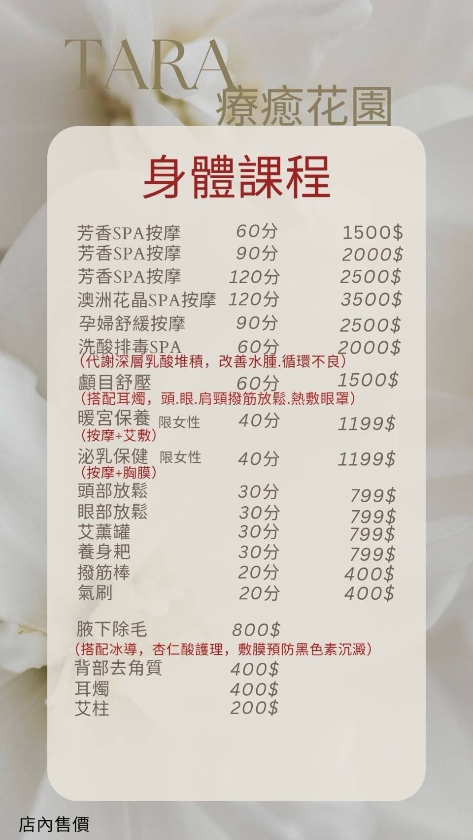 🌿店面價目表