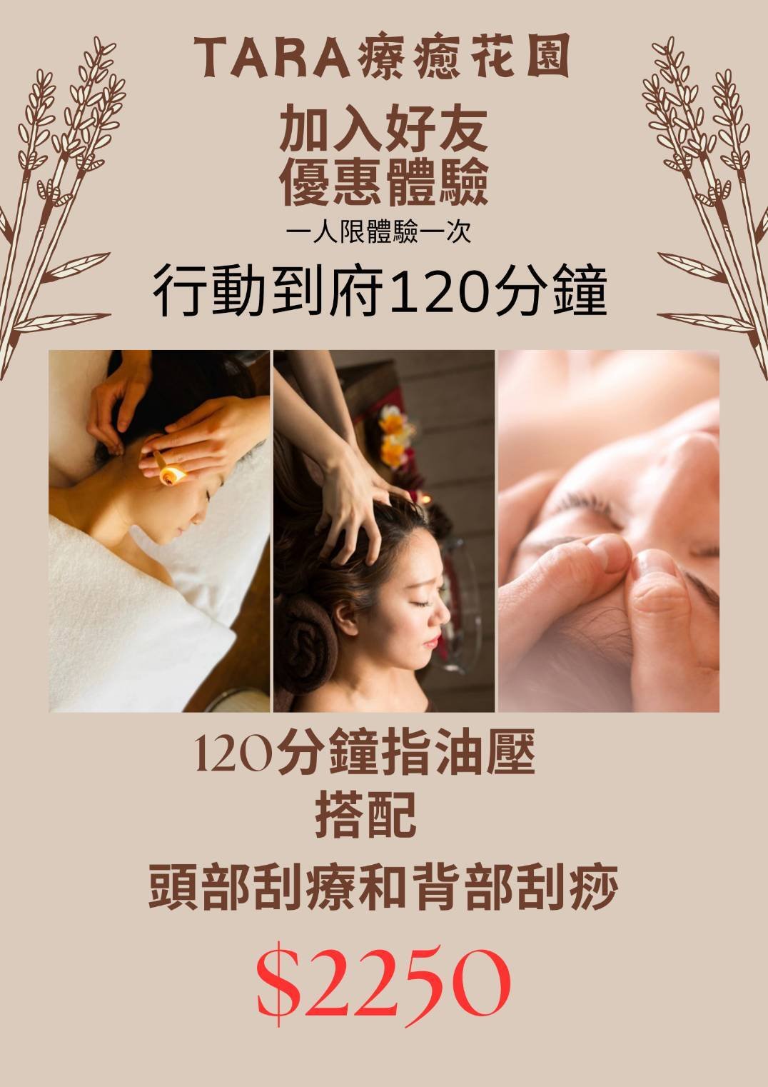 TARA療癒花園美容工作室——您的專屬芳療師,為您帶來全方位的健康與美麗呵護! 我們除了店面服務外,也提供到府服務,專業細心的芳療技術結合天然精油,讓您享受身心靈的極致放鬆。服務項目涵蓋身體保養、臉部護理、孕婦按摩、纖體瘦身、美胸泌乳、暖宮婦科、眼部按摩及顱沐放鬆,針對不同需求提供個人化調理。 此外,我們也承接工商團體活動與保健講座,協助企業與團體推廣健康管理理念。 無論是日常舒壓或深度保養,TARA療癒花園都願成為您的健康美麗夥伴! 📅 預約時間:10:00-22:00