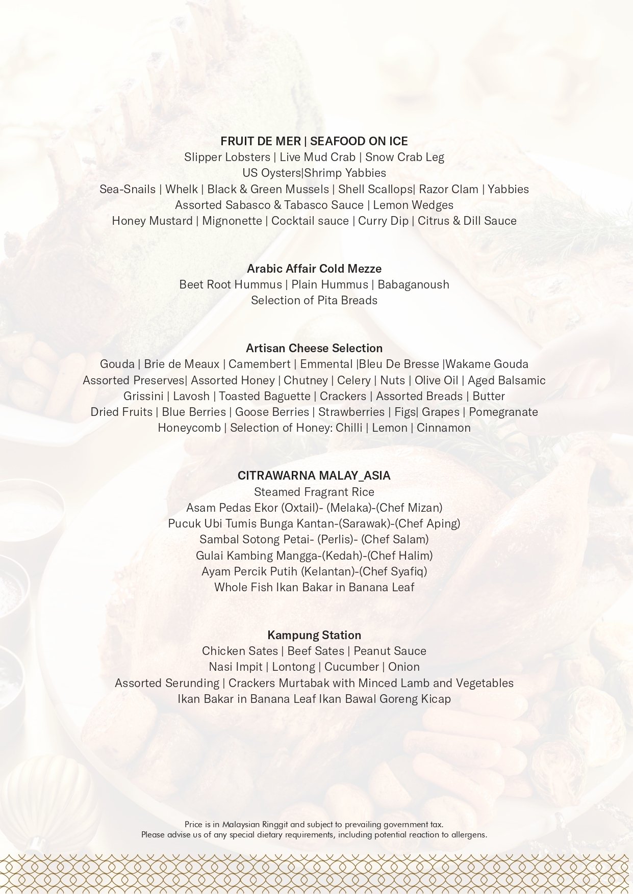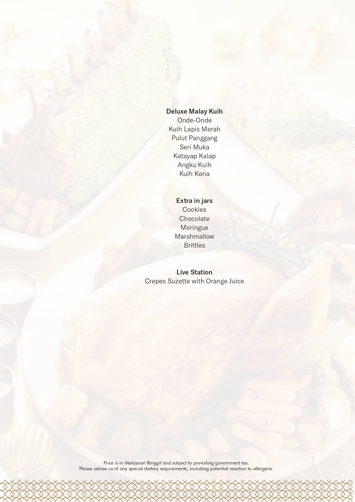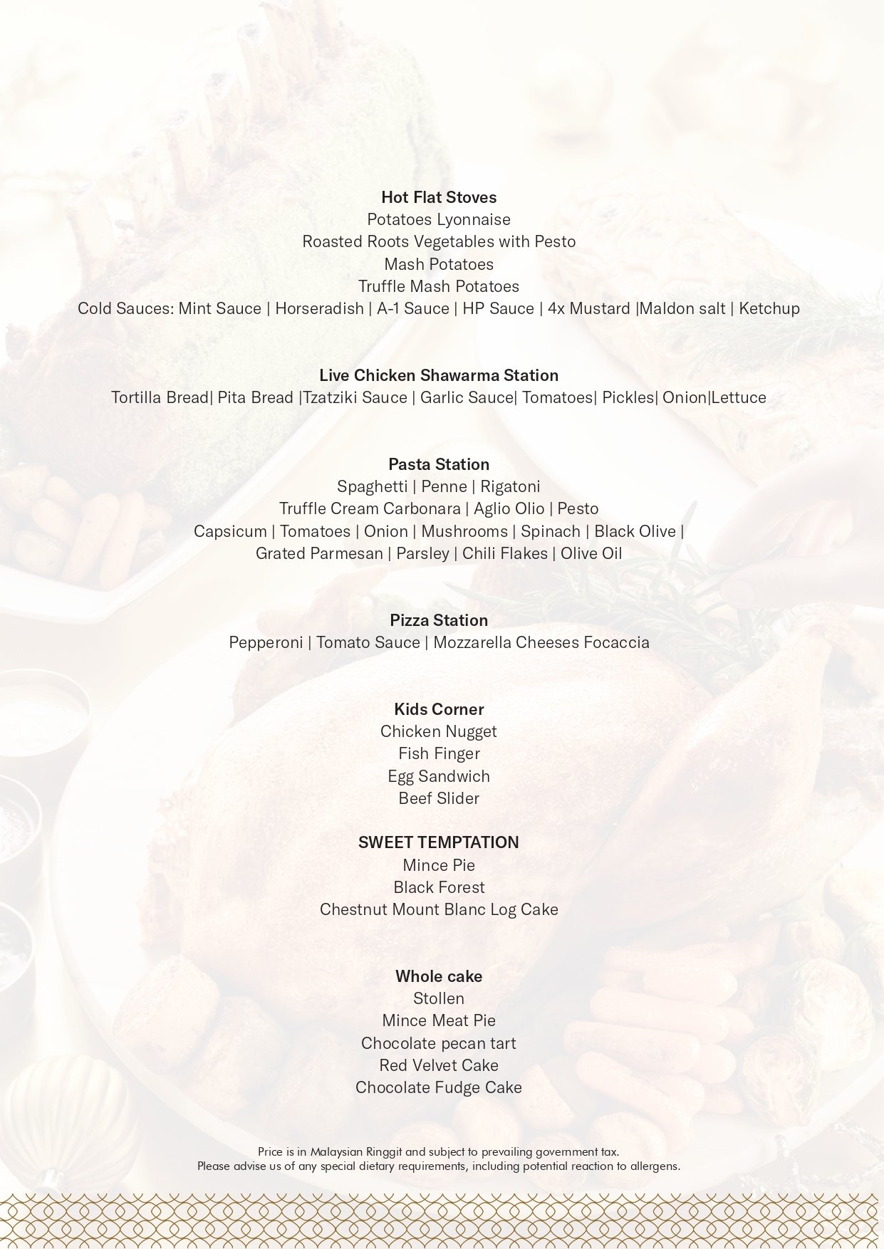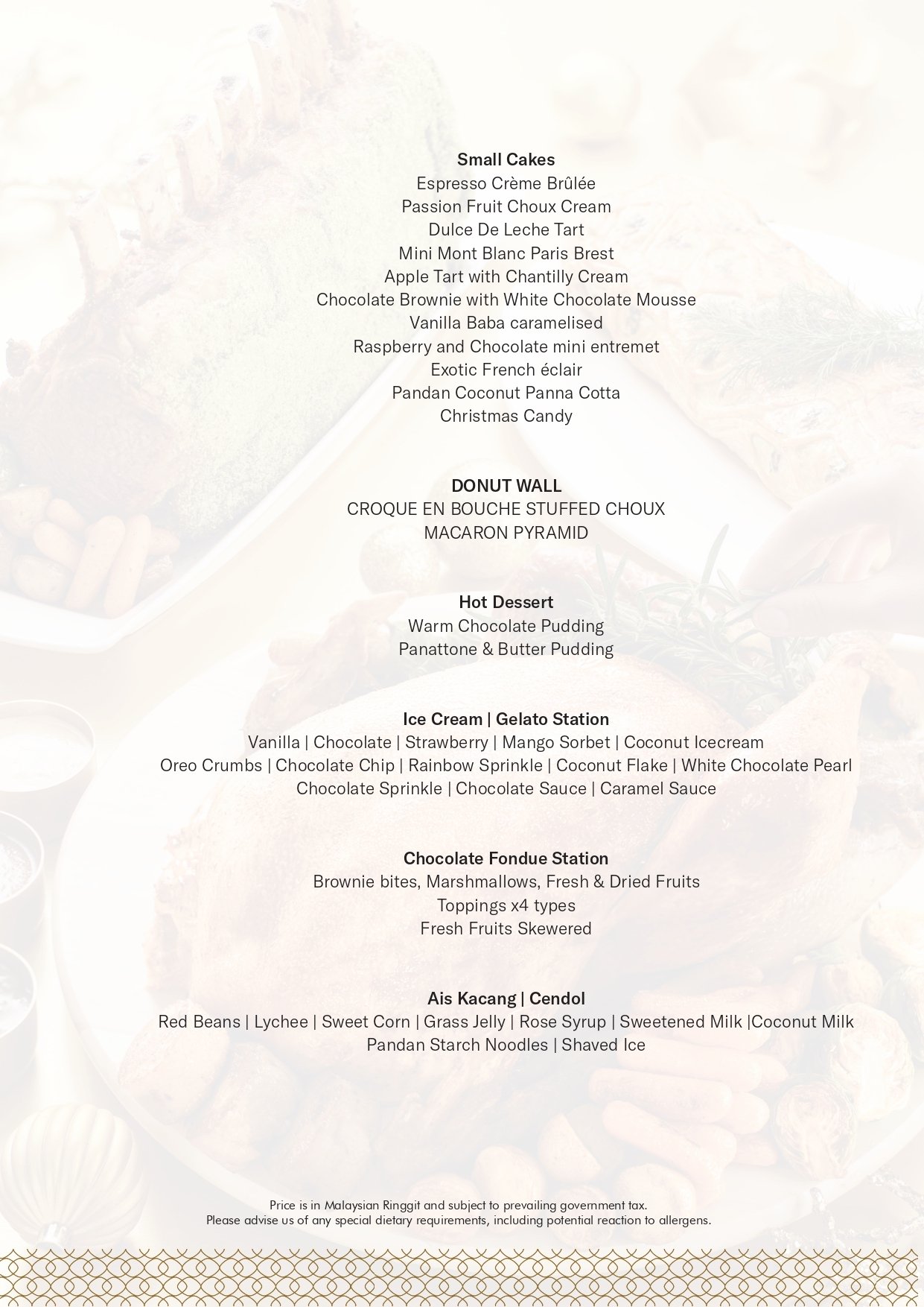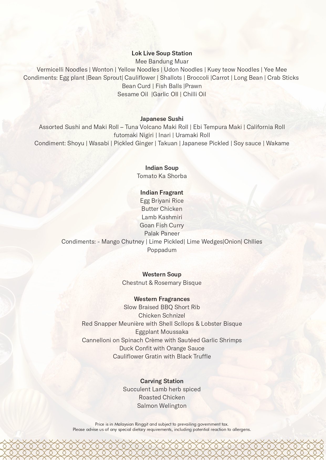 - Pictures shown are for illustrations purpose only. Dishes are subject to the daily menu provided.