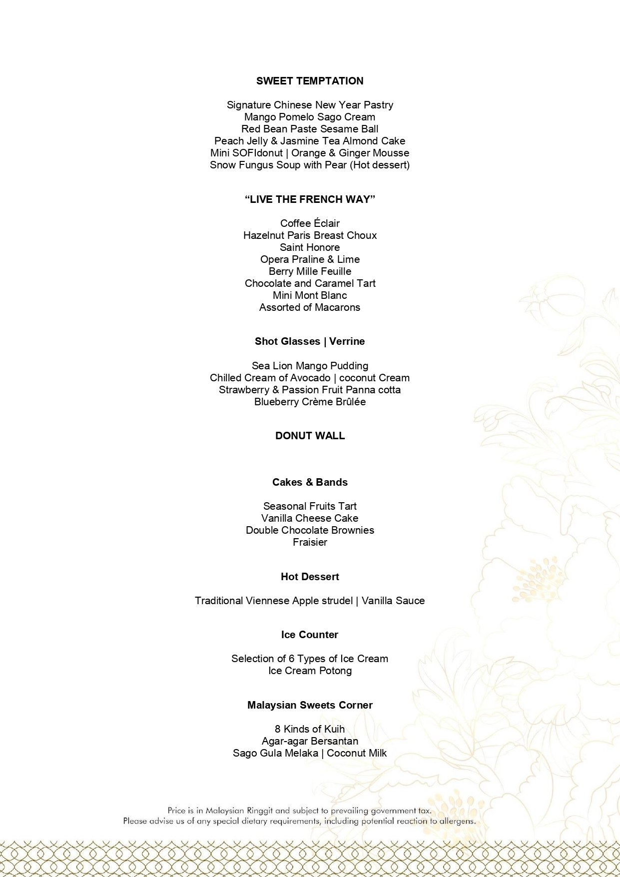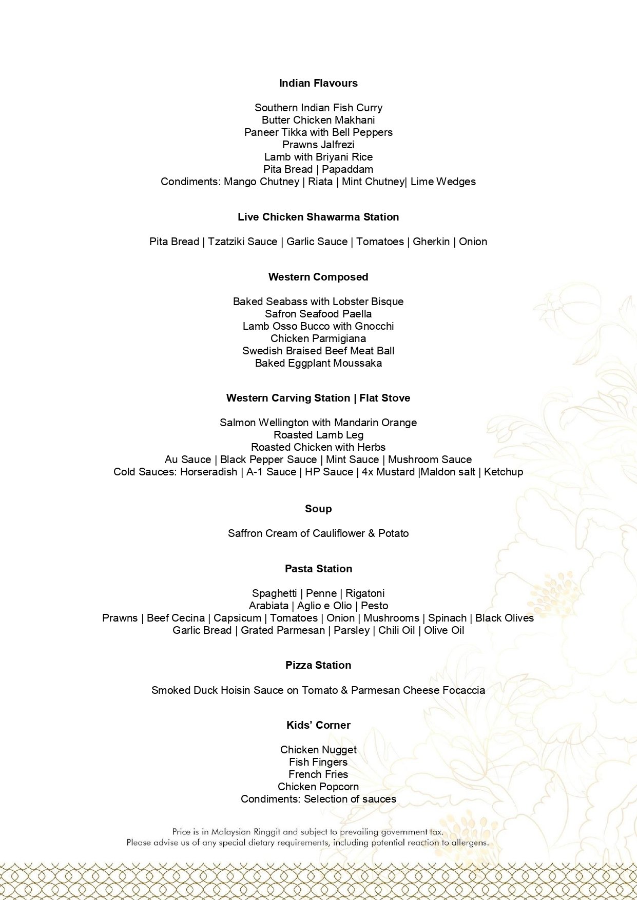 - Pictures shown are for illustrations purpose only. Dishes are subject to the daily menu provided.