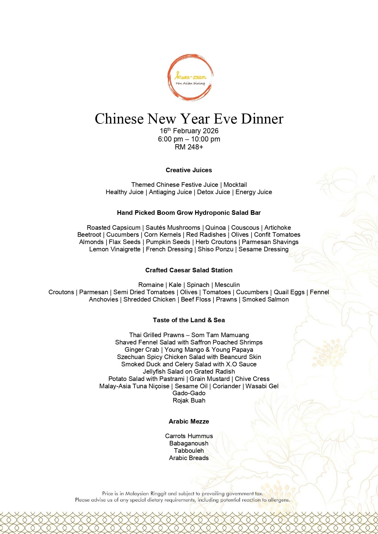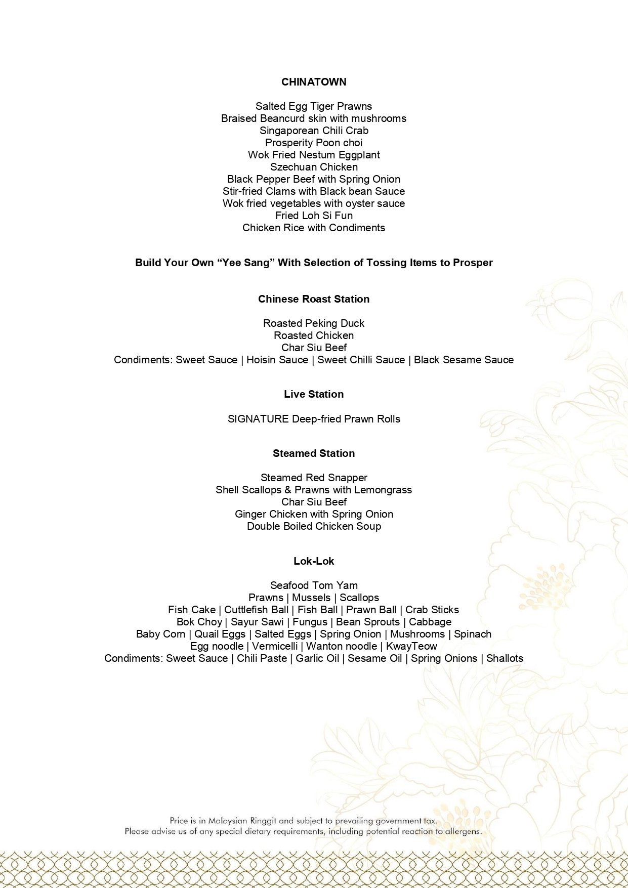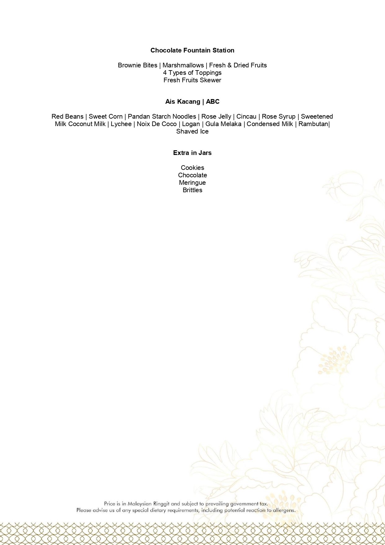 - Price displayed is inclusive of service charges & SST.