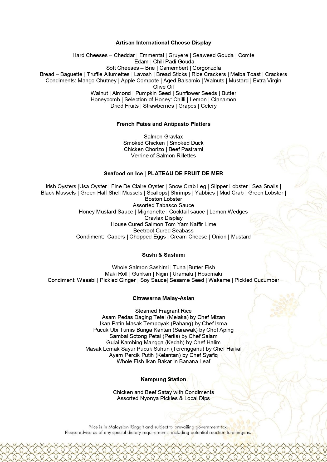 - Menu is subject to change without notice.