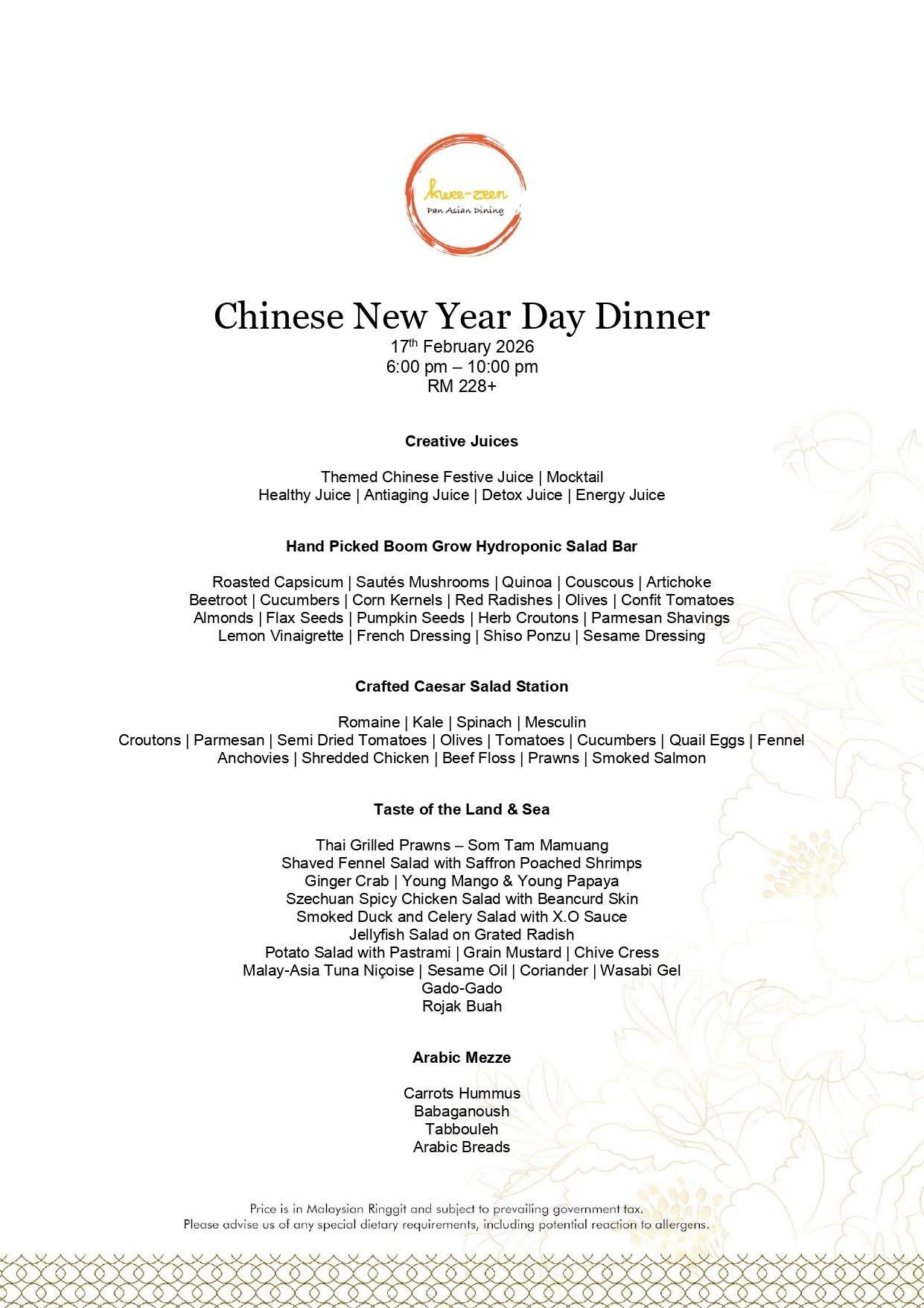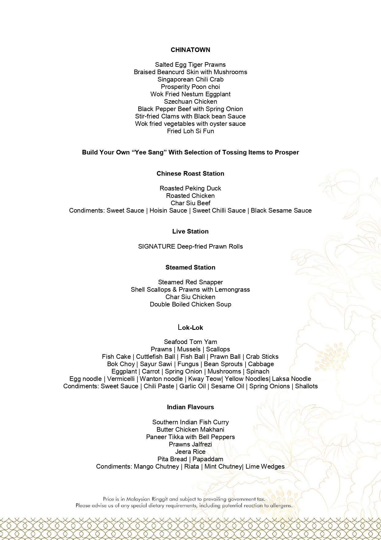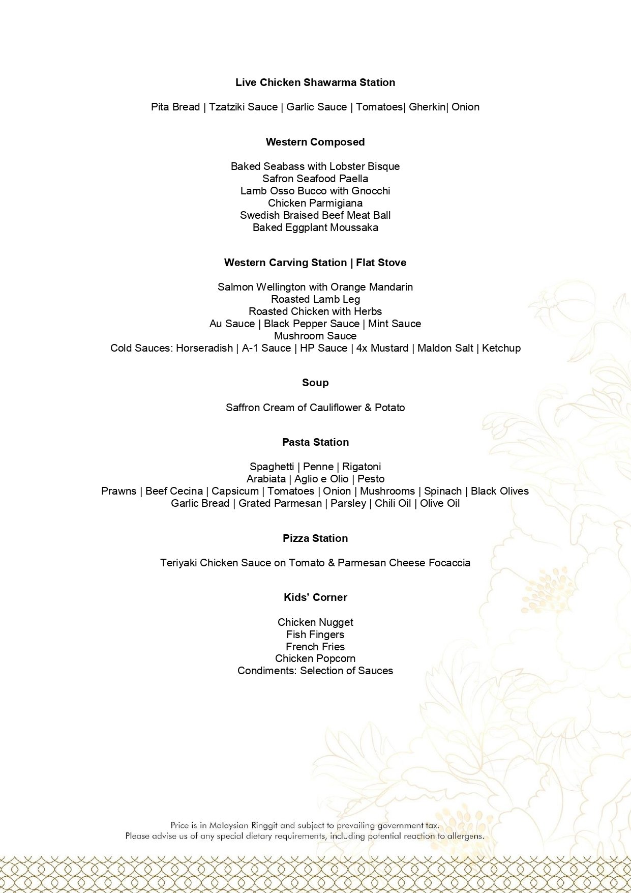 - Pictures shown are for illustrations purpose only. Dishes are subject to the daily menu provided.