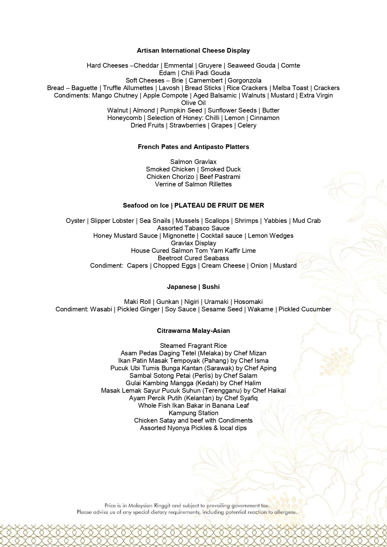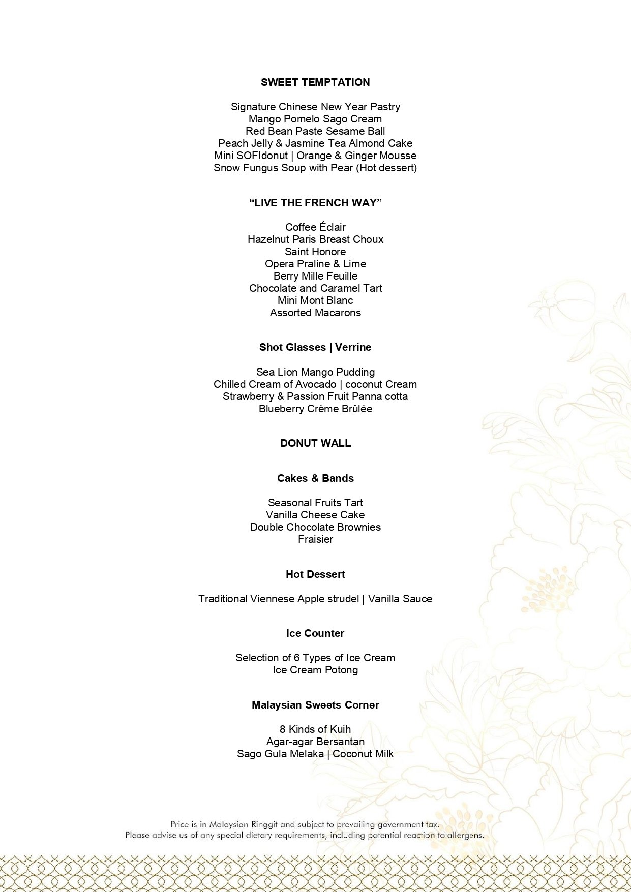 - Menu is subject to change without notice.