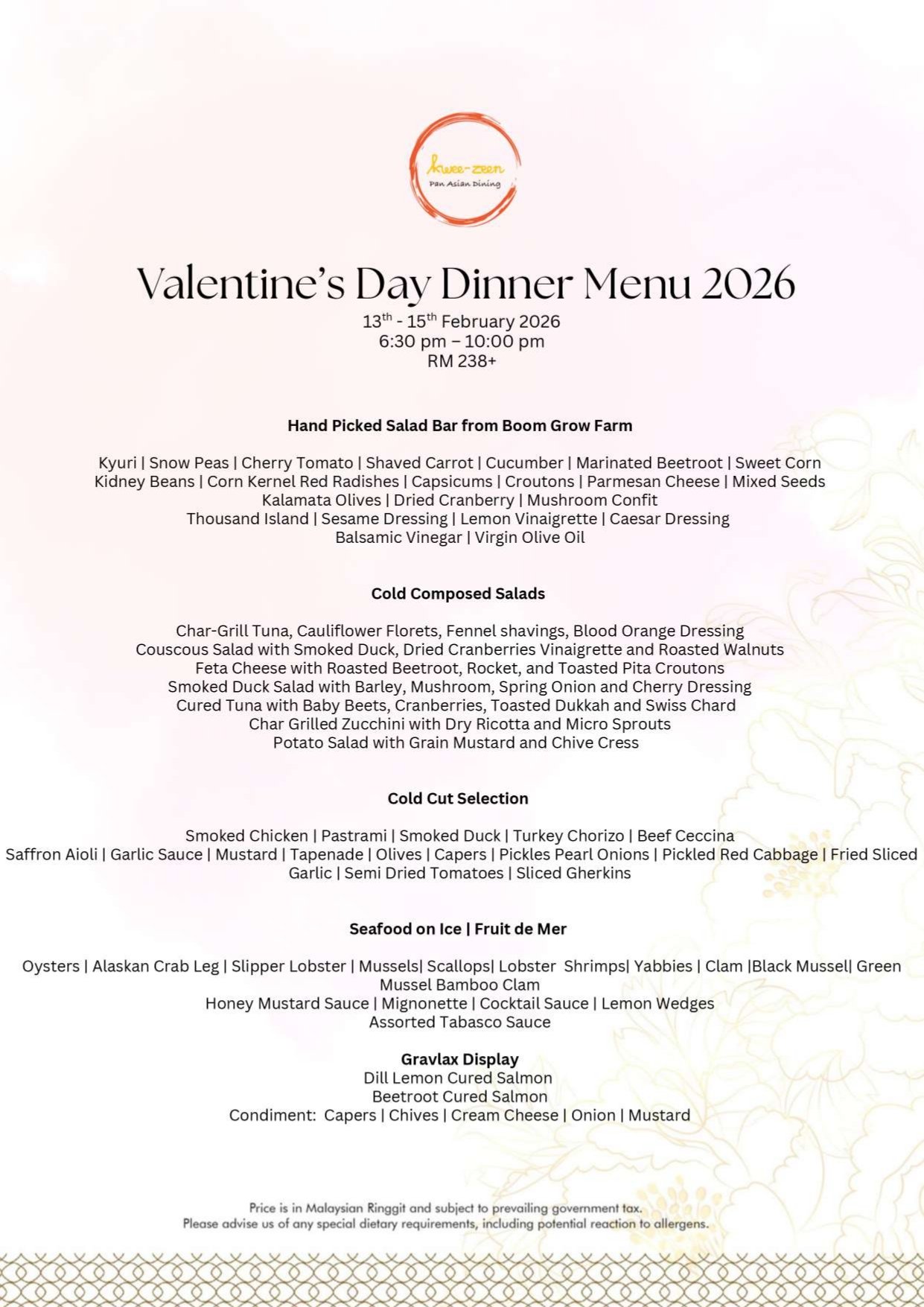 - Price displayed is inclusive of service charges & SST.