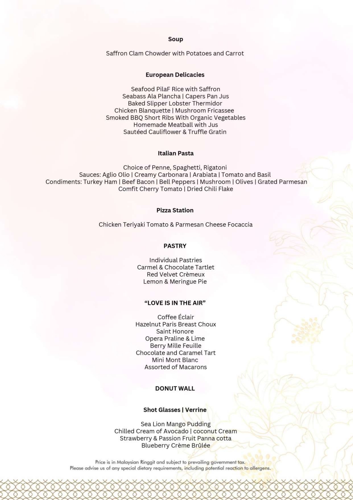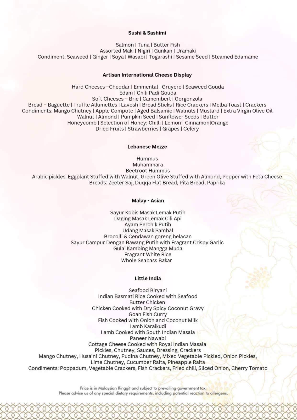 - Menu is subject to change without notice.