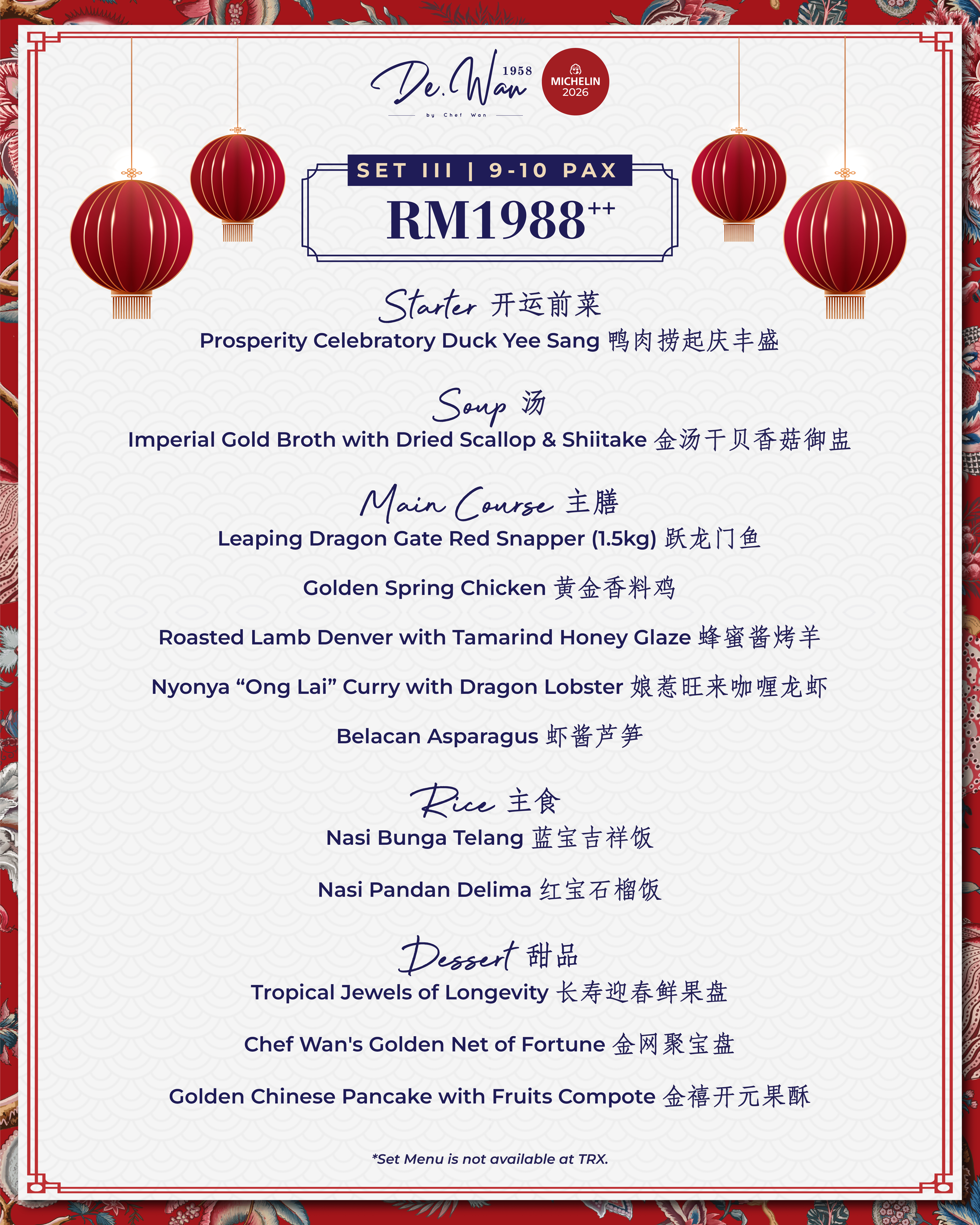 ・Celebrate the Year of the Horse with De.Wan 1958’s. Perfect for 9-10 pax, enjoy premium dishes like Prosperity Toss and Signature Green Lamb Opor.