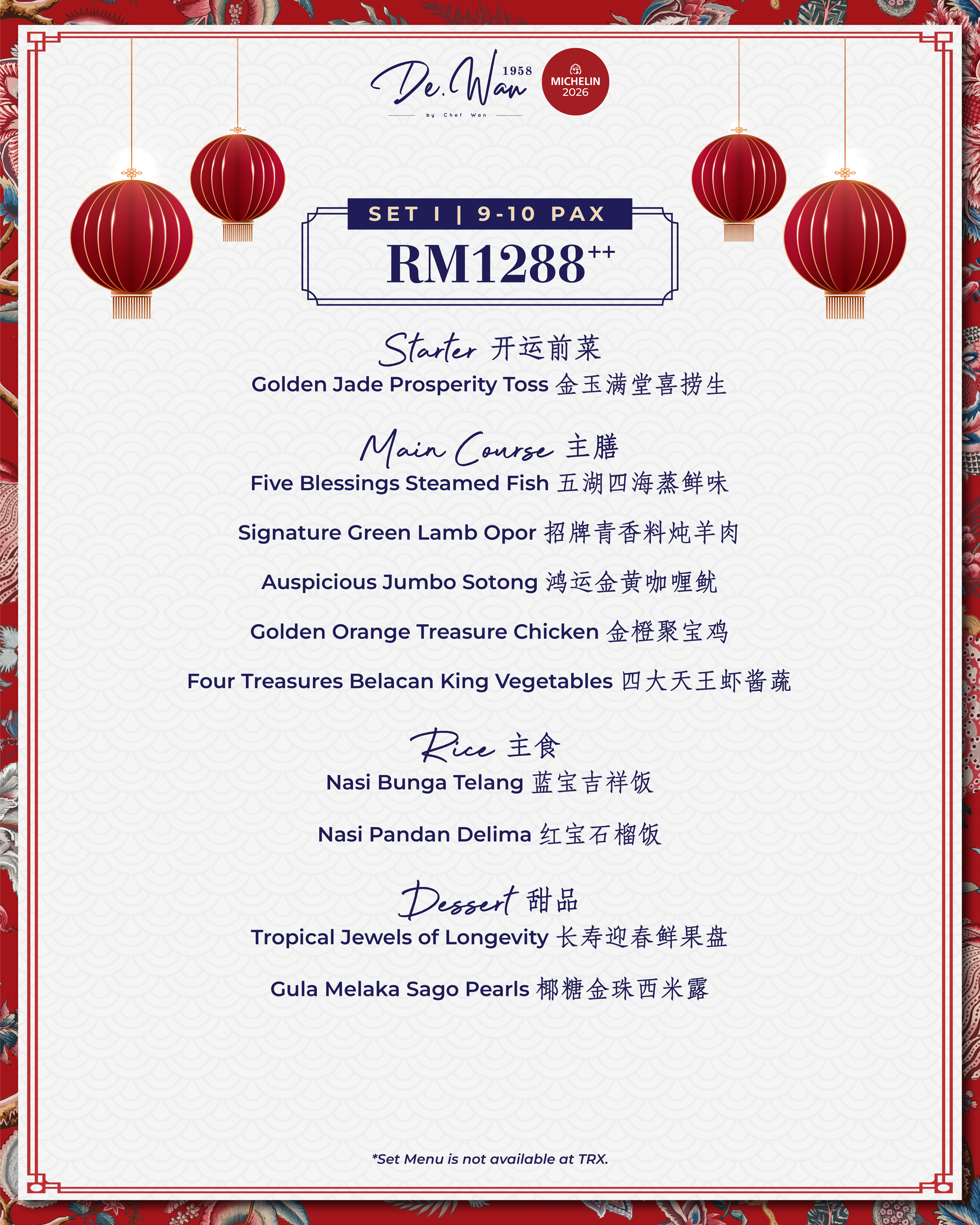 ・Celebrate the Year of the Horse with De.Wan 1958’s.Perfect for 9-10 pax, enjoy premium dishes like Prosperity Toss and Signature Green Lamb Opor.