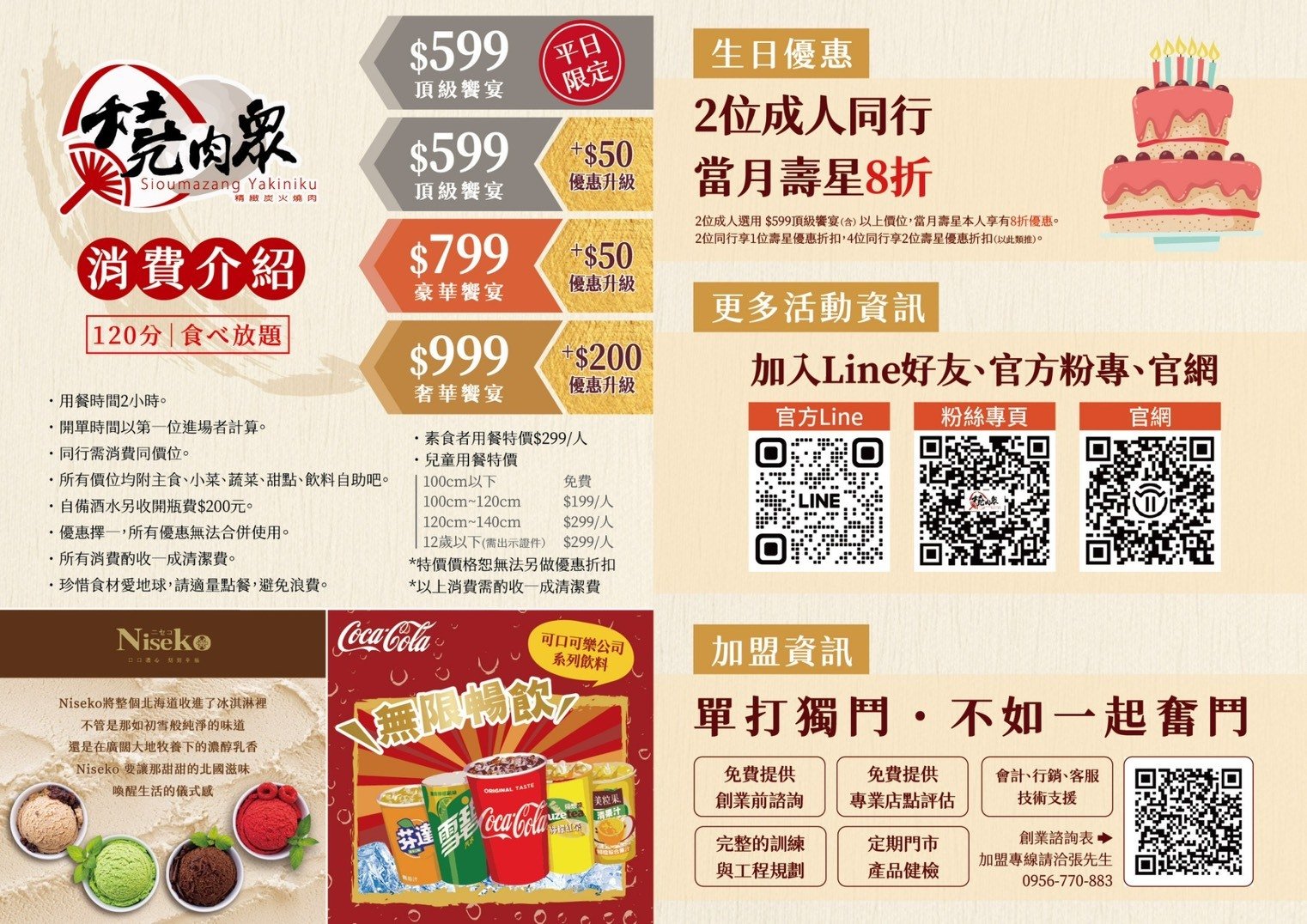 - 現場額外消費另收 10% 服務費。