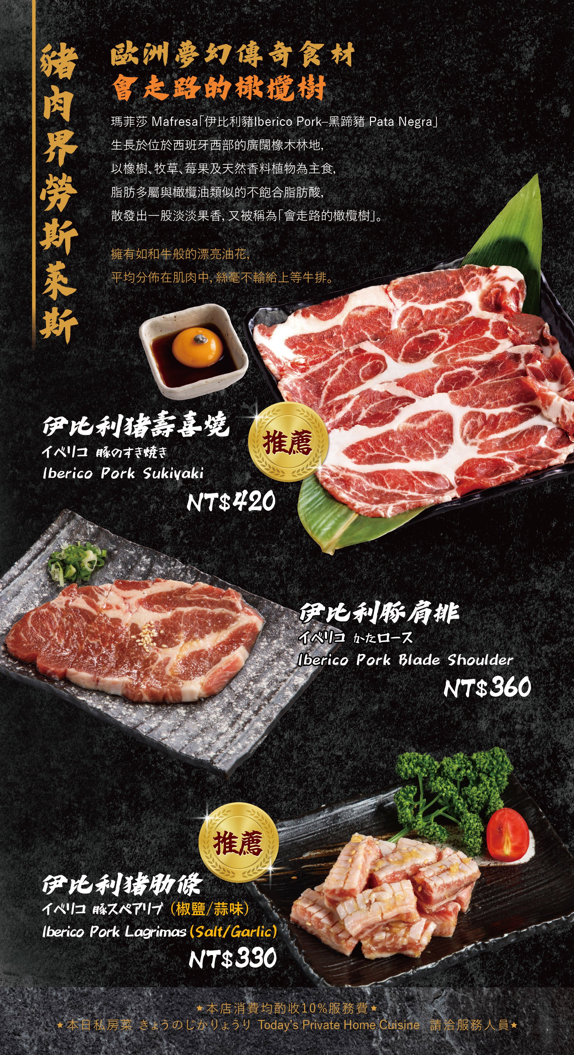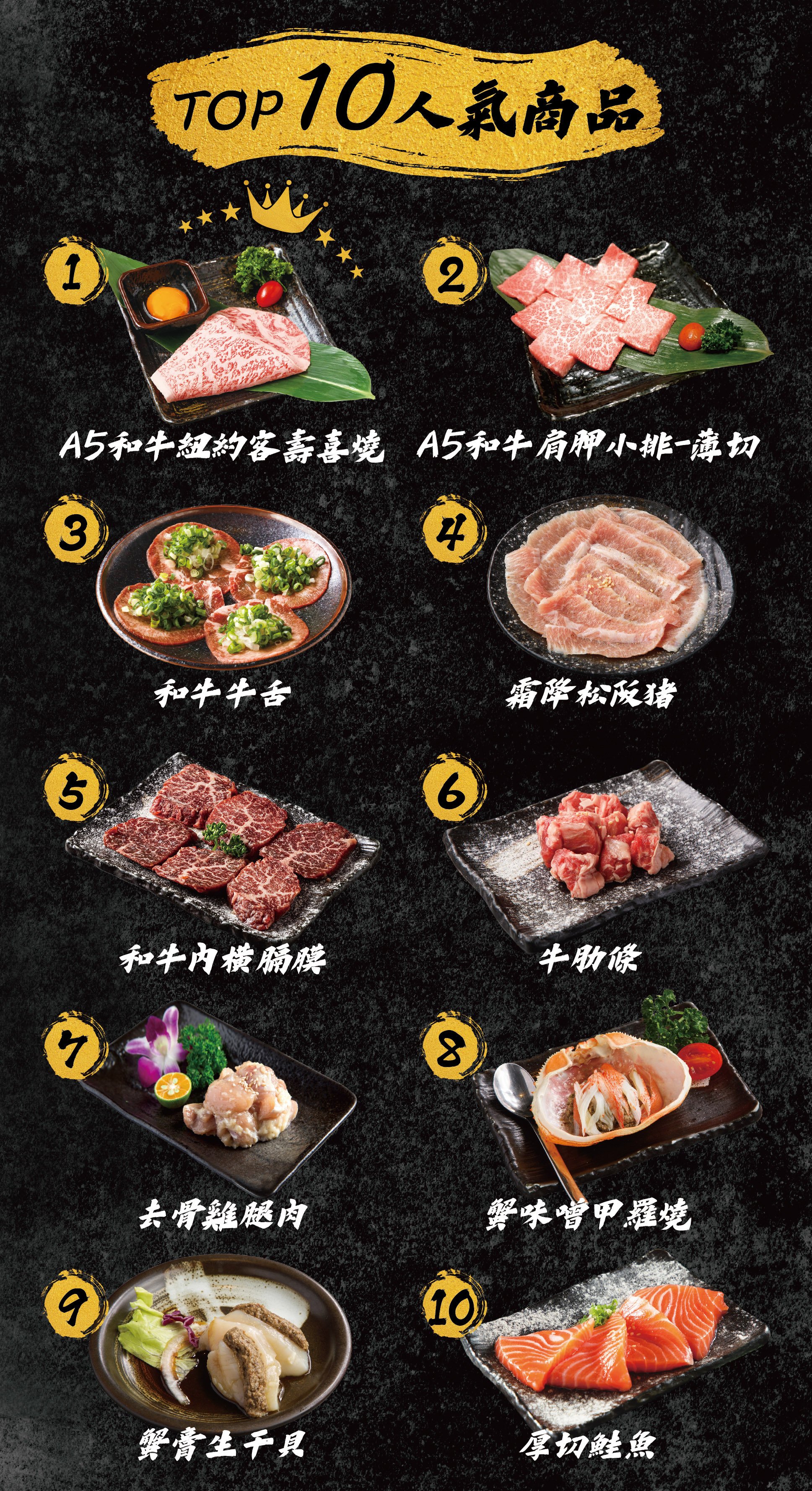 ・店家推薦菜色:和牛牛舌、牛五花、達拉斯、伊比利豚壽喜燒、蟹味噌甲羅燒。