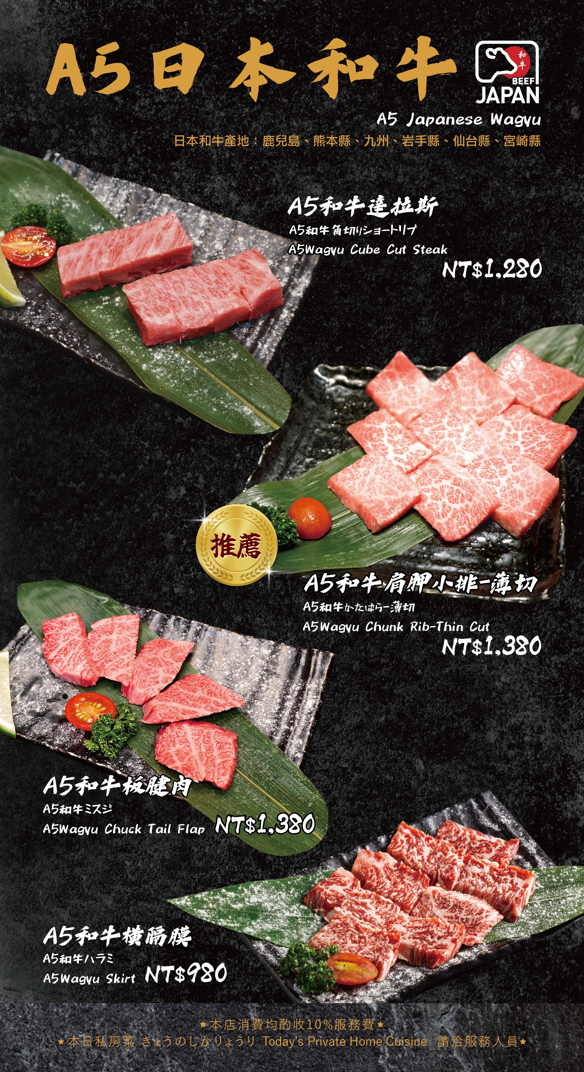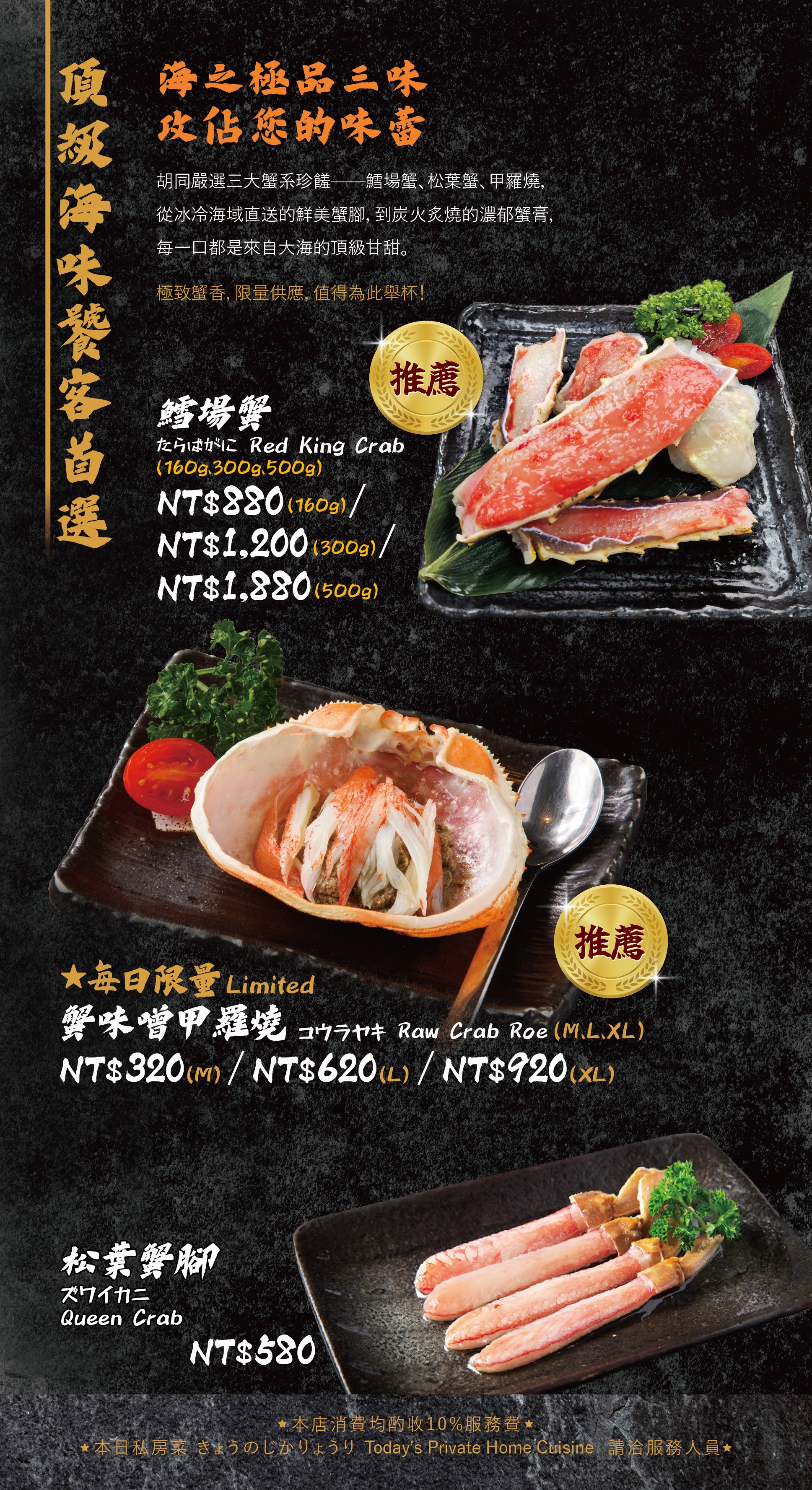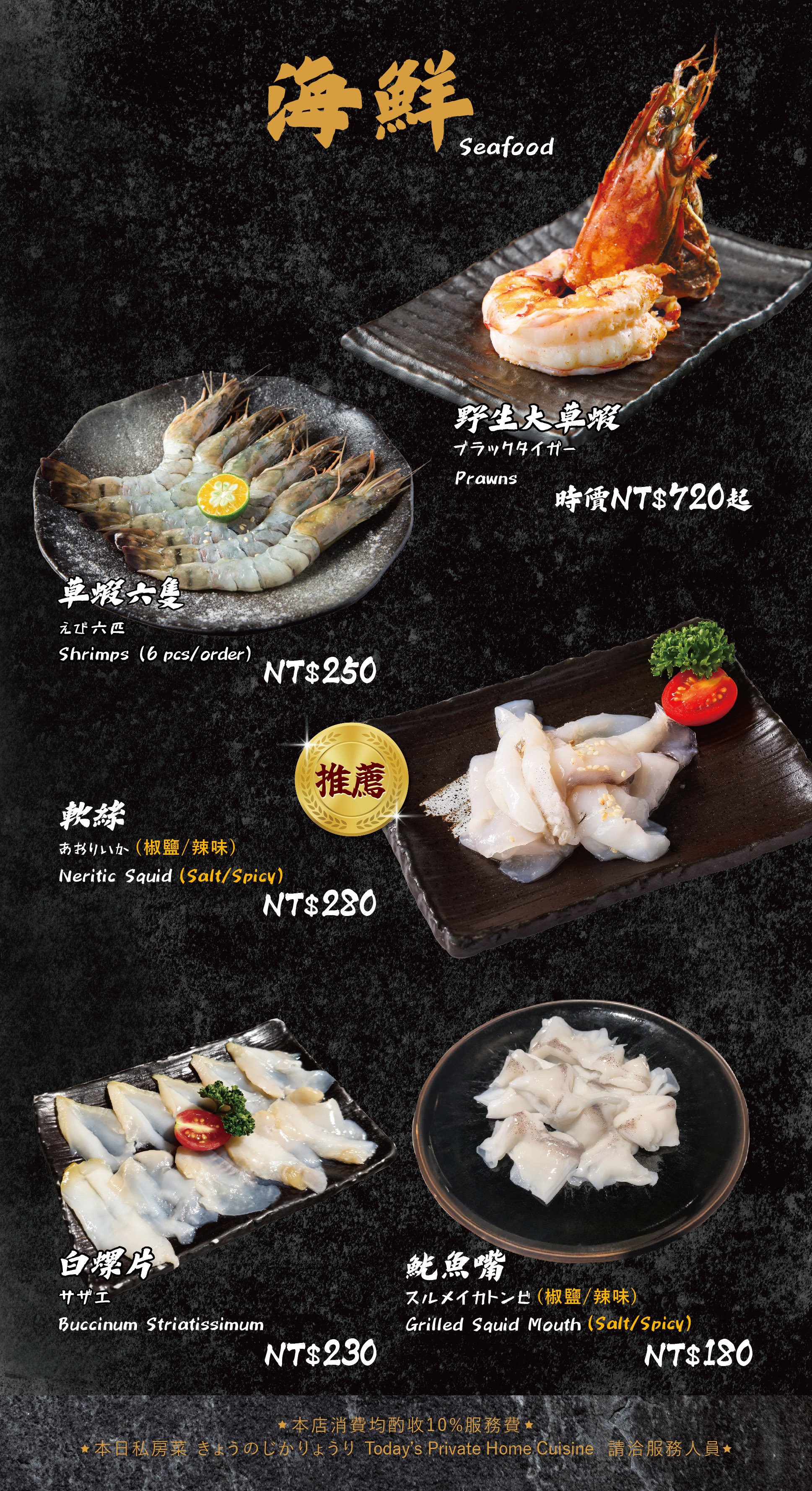 ・現場需收 10% 服務費。