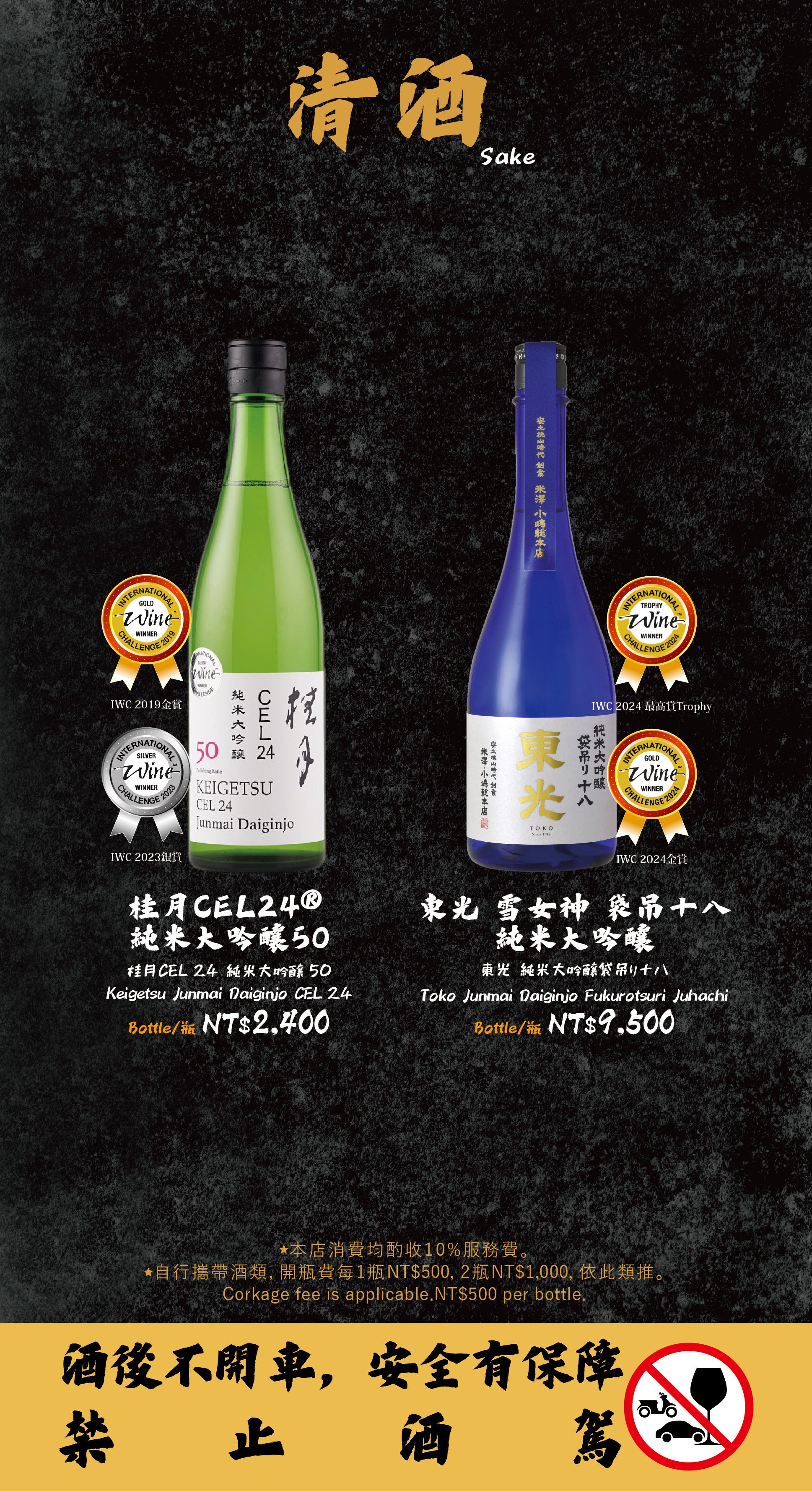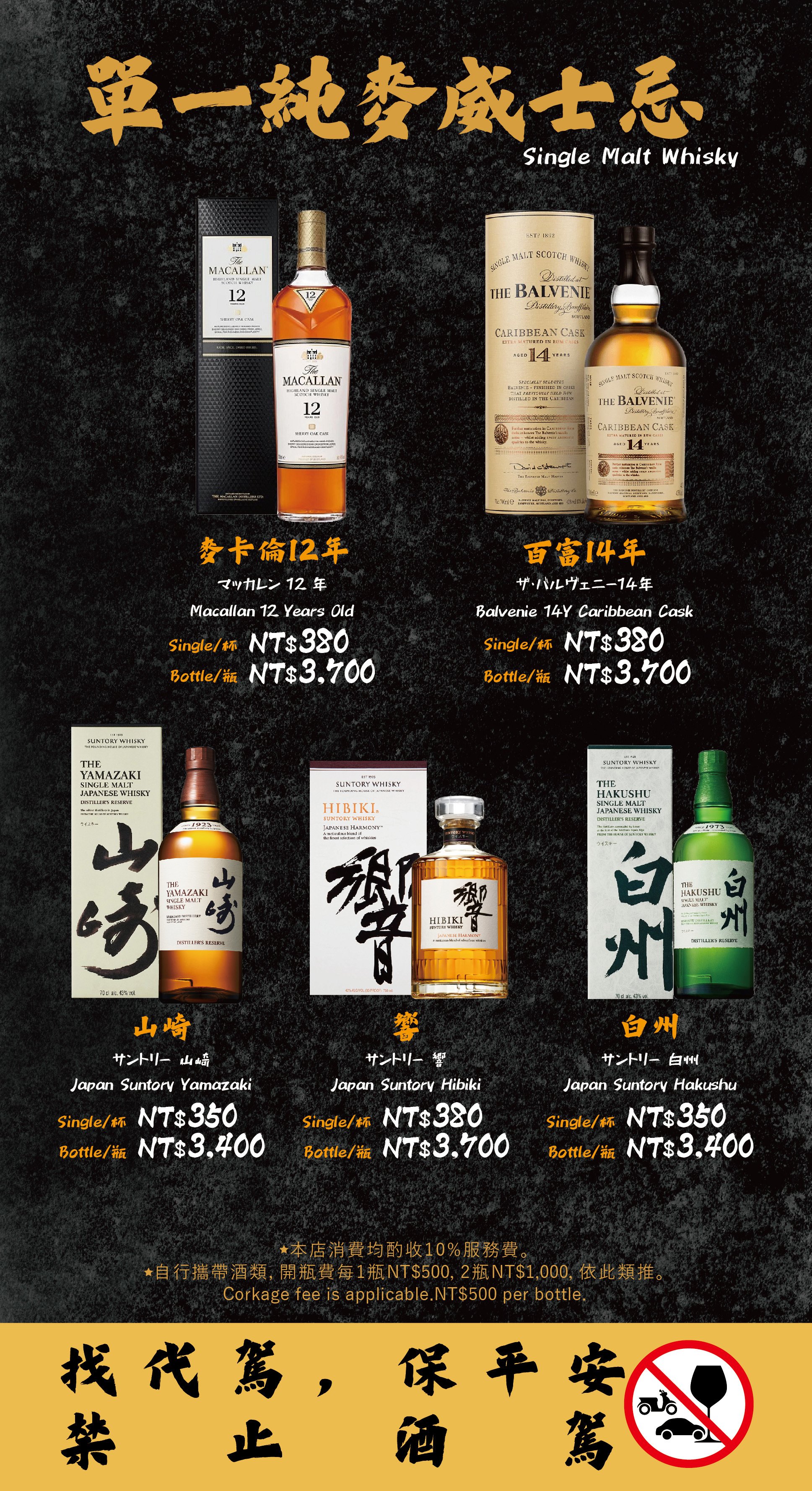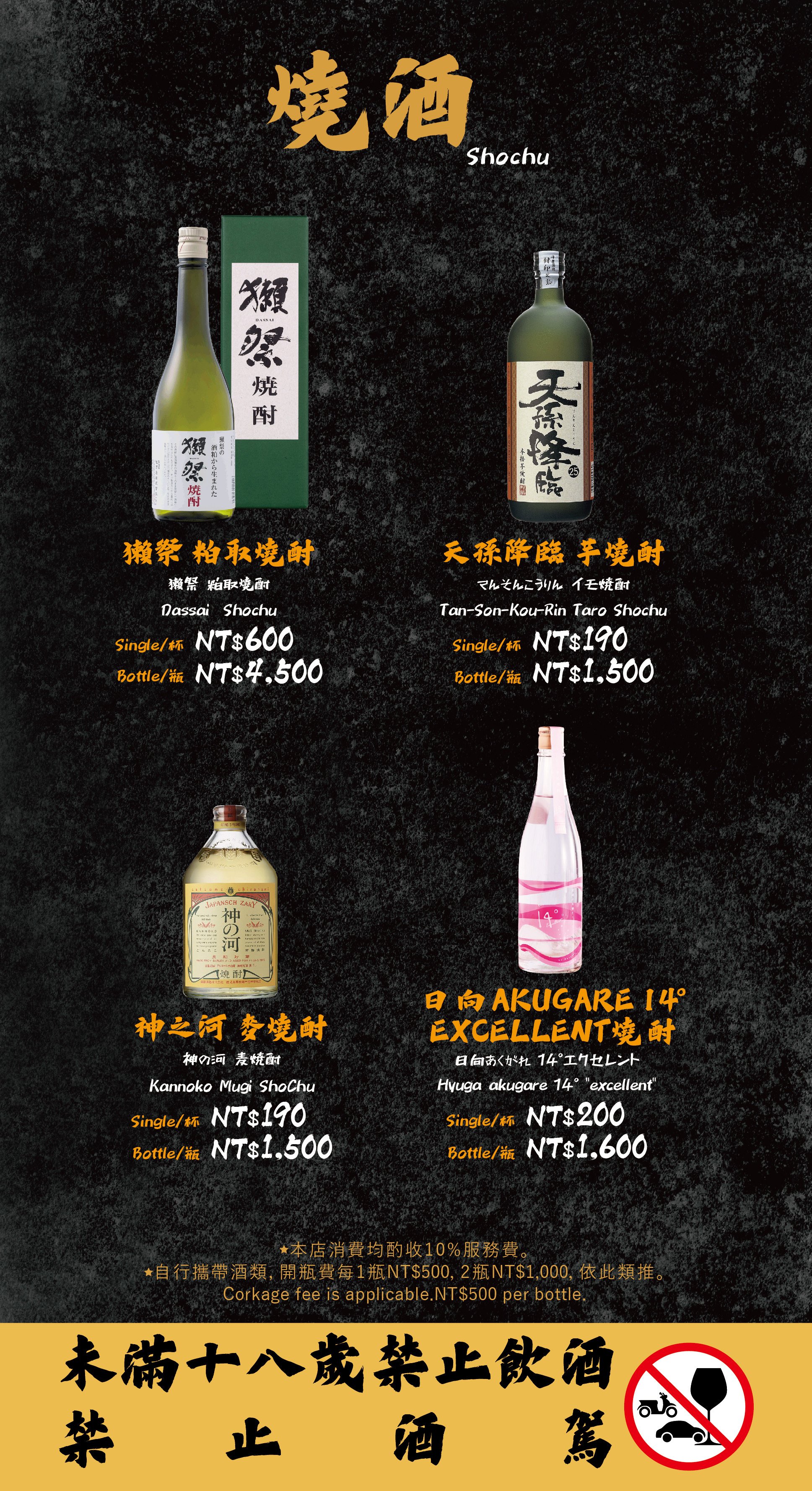 - 自帶酒水,需收開瓶費每瓶 TWD 500。