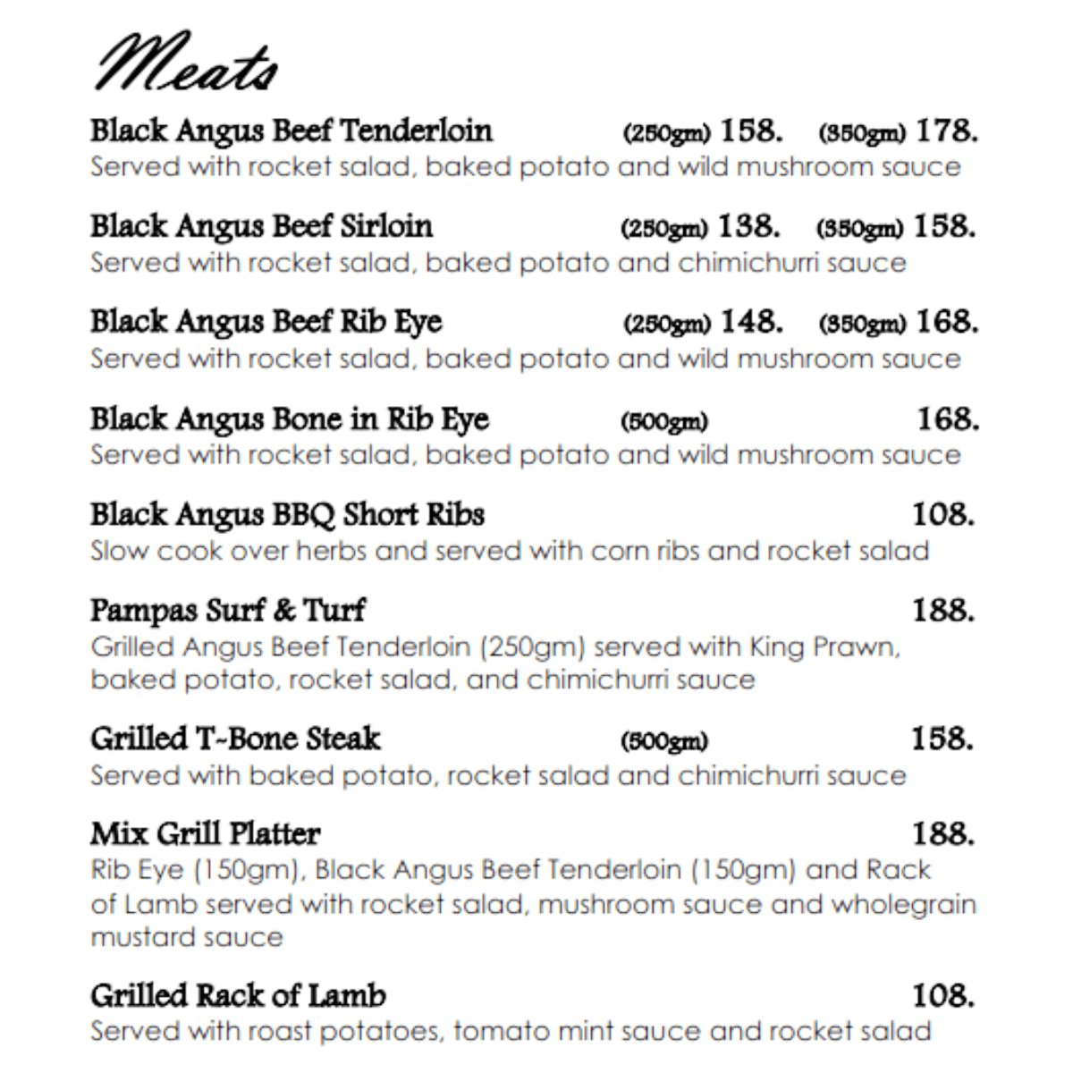 PAMPAS Steakhouse at Old Malaya is the latest addition to PAMPAS Group, located at the one of the most beautiful heritage dining buildings in Kuala Lumpur. PAMPAS Steakhouse at Old Malaya sets a beautiful colonial setting with an amazing backdrop which is the Kuala Lumpur Tower. We at Pampas are proud to feature the most succulent Steaks.