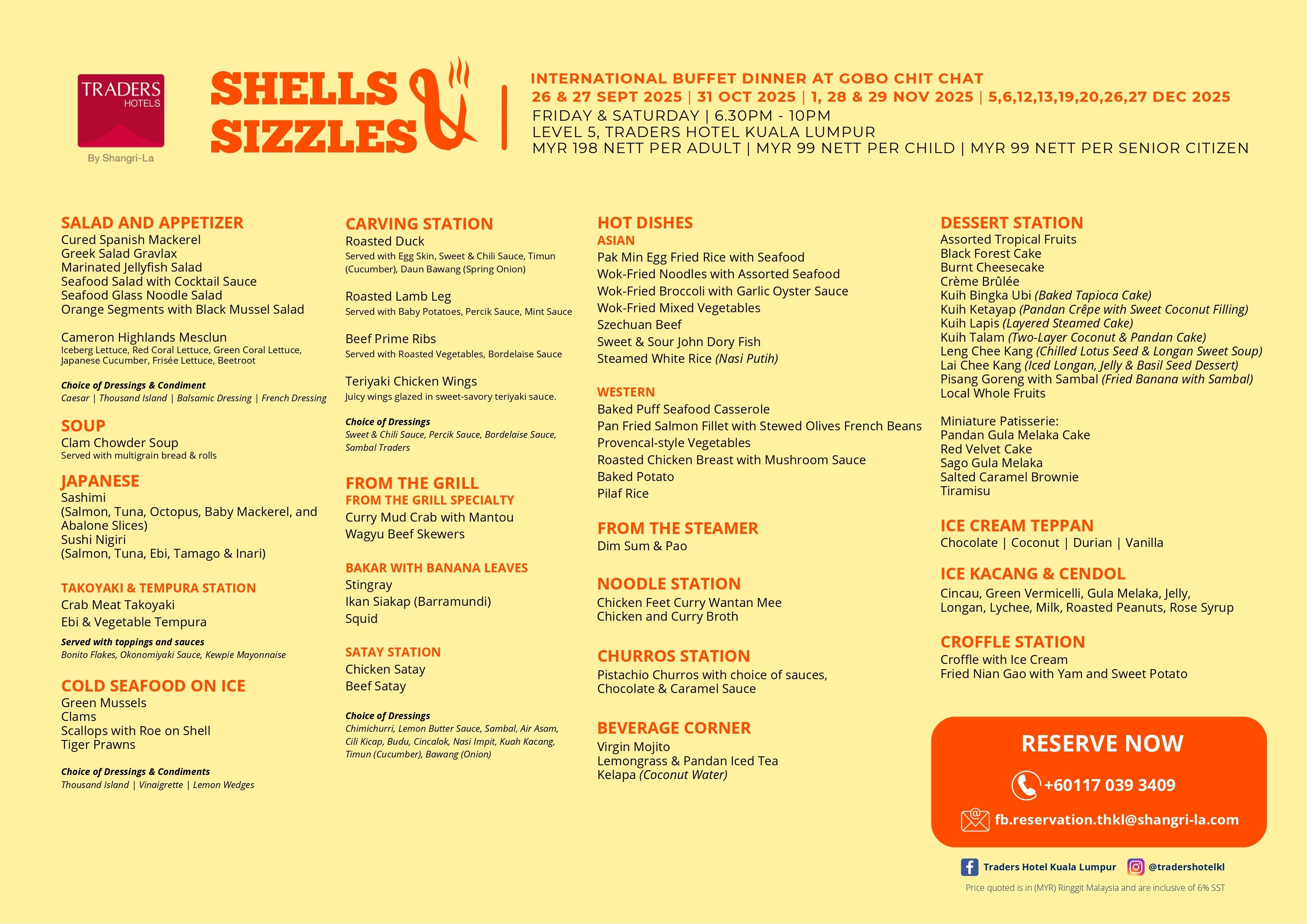 ・Indulge in an array of dishes from local flavors to international delicacies like our Grilled Baby Lobster with Garlic Butter Sauce, Wagyu Beef Burger, Truffle Beef Wellington, Roasted Lamb Leg with Pandan Nasi Lemak, and many more!