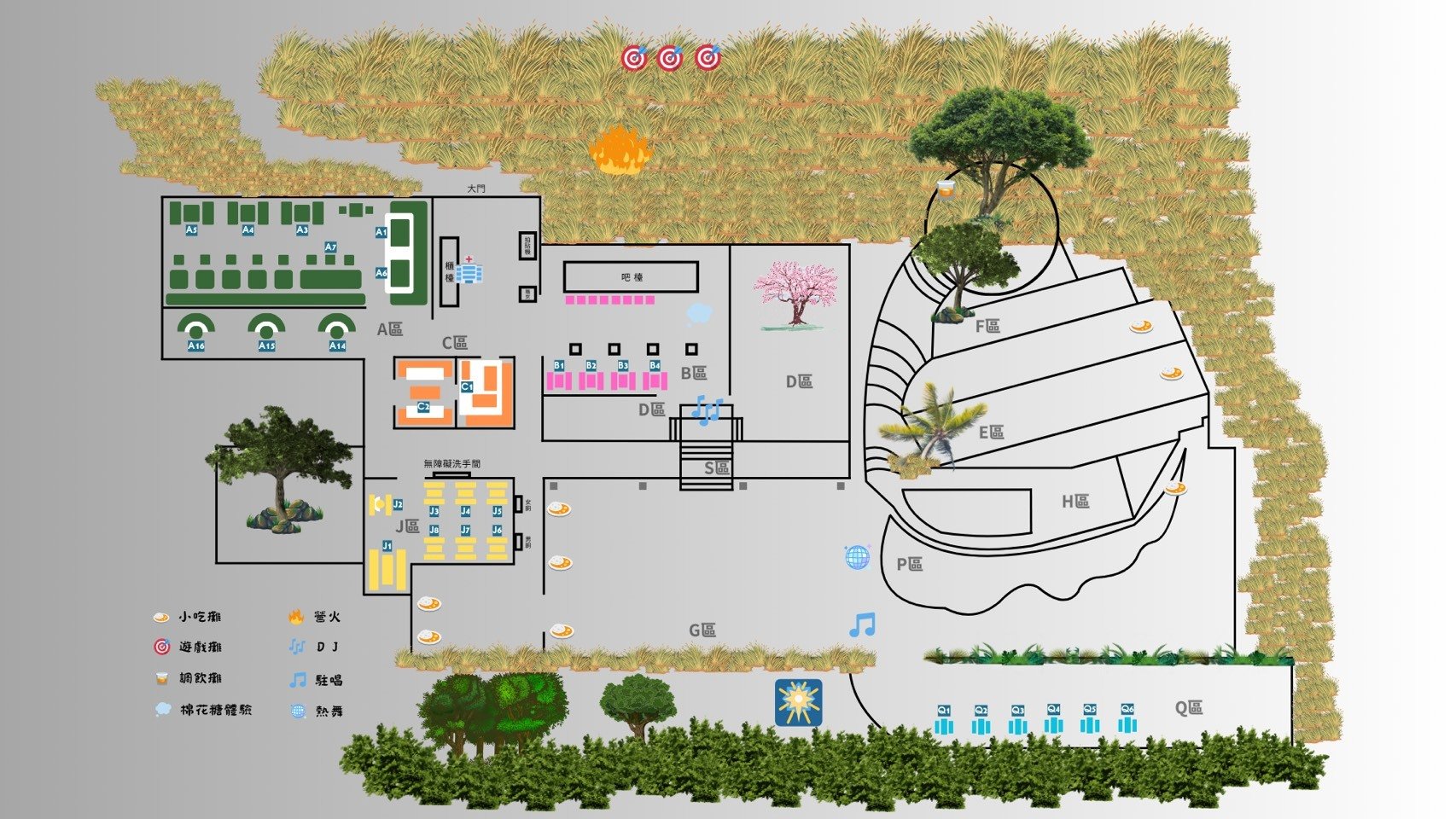 在滿滿綠意與星光下, 營火搖曳、音樂響起、美食香氣四散, 這裡沒有拘束,只有歡笑、音浪與閃亮煙火!