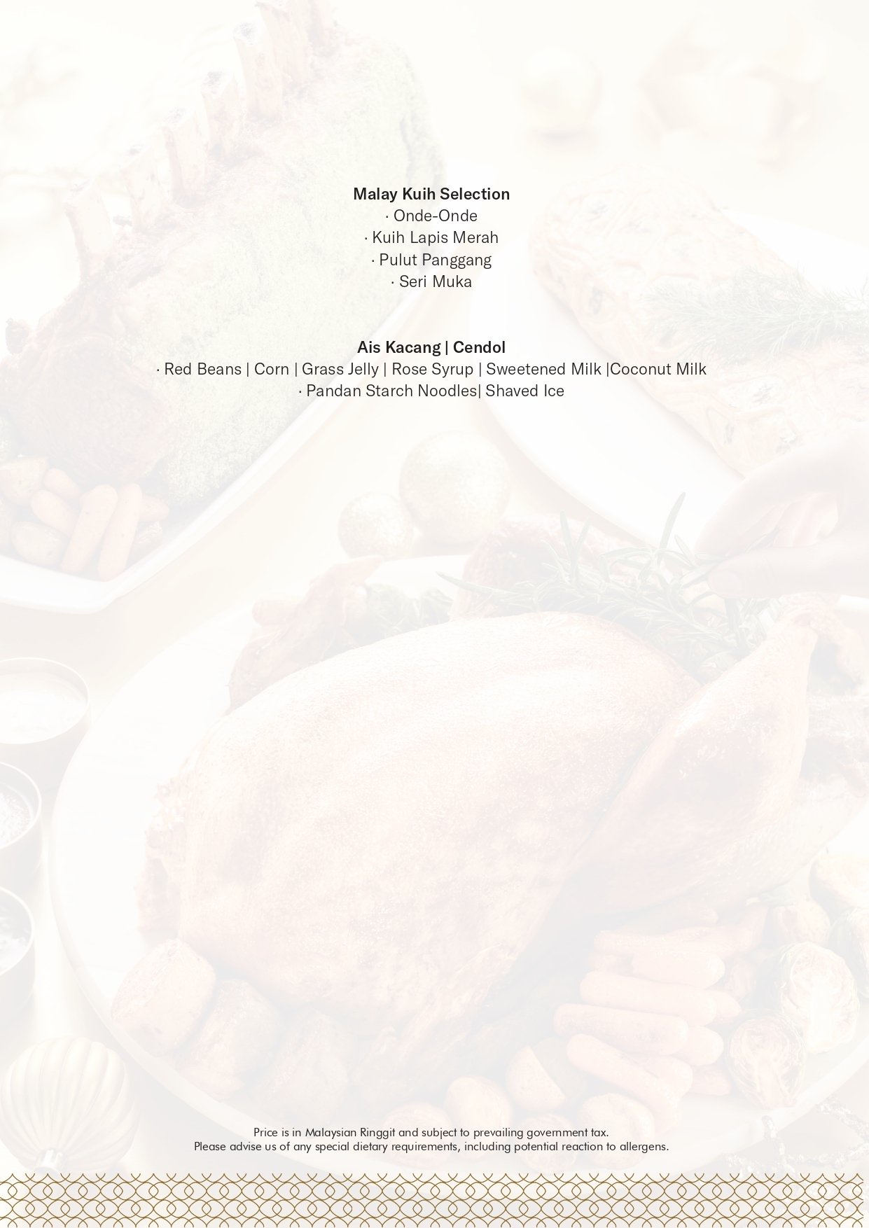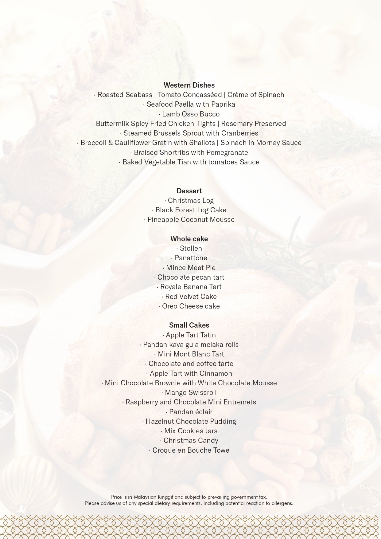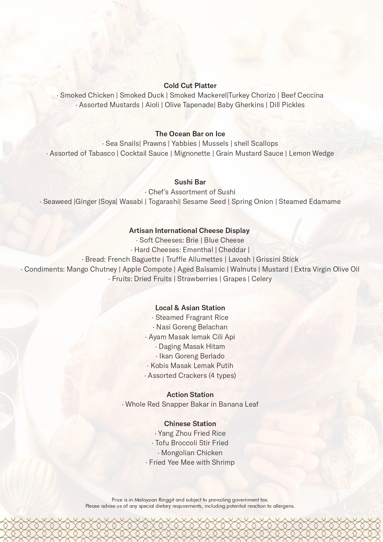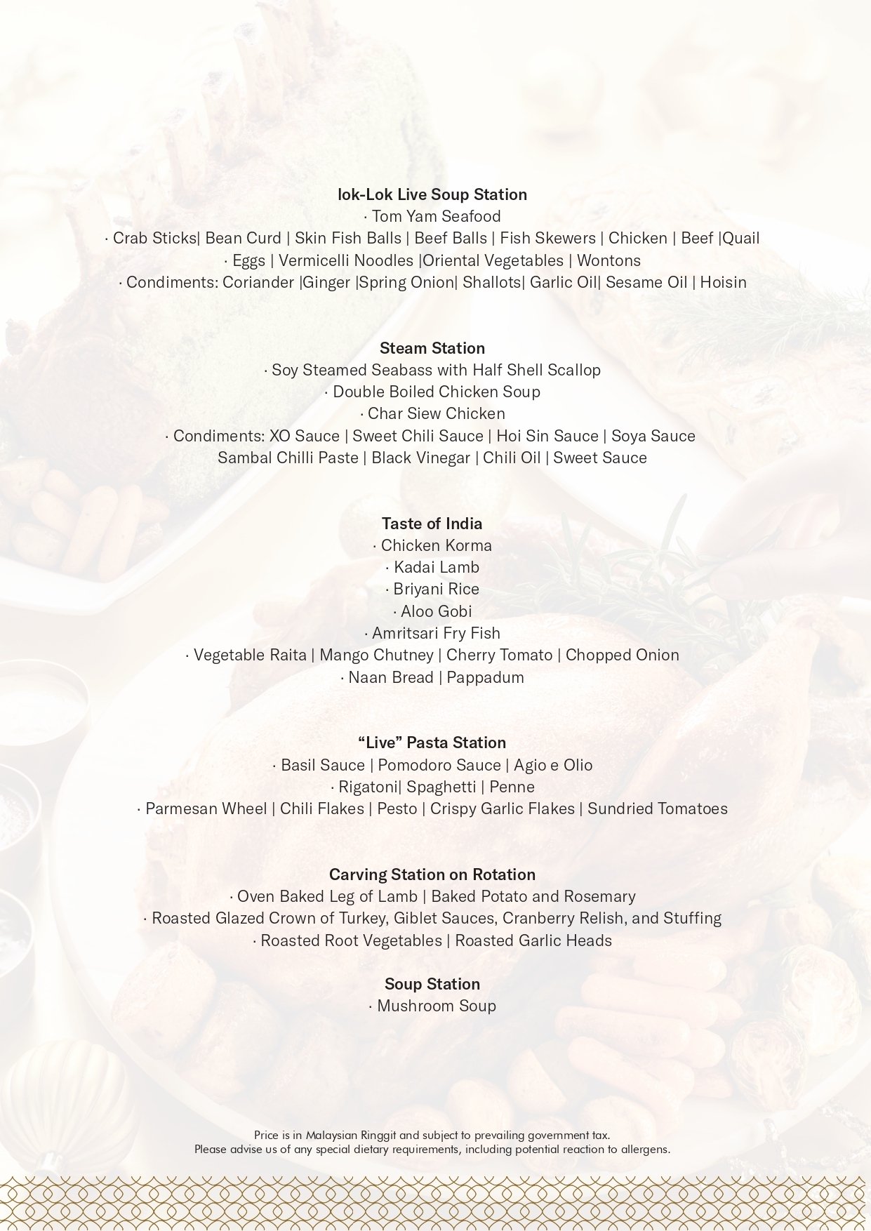 - Pictures shown are for illustrations purpose only. Dishes are subject to the daily menu provided.