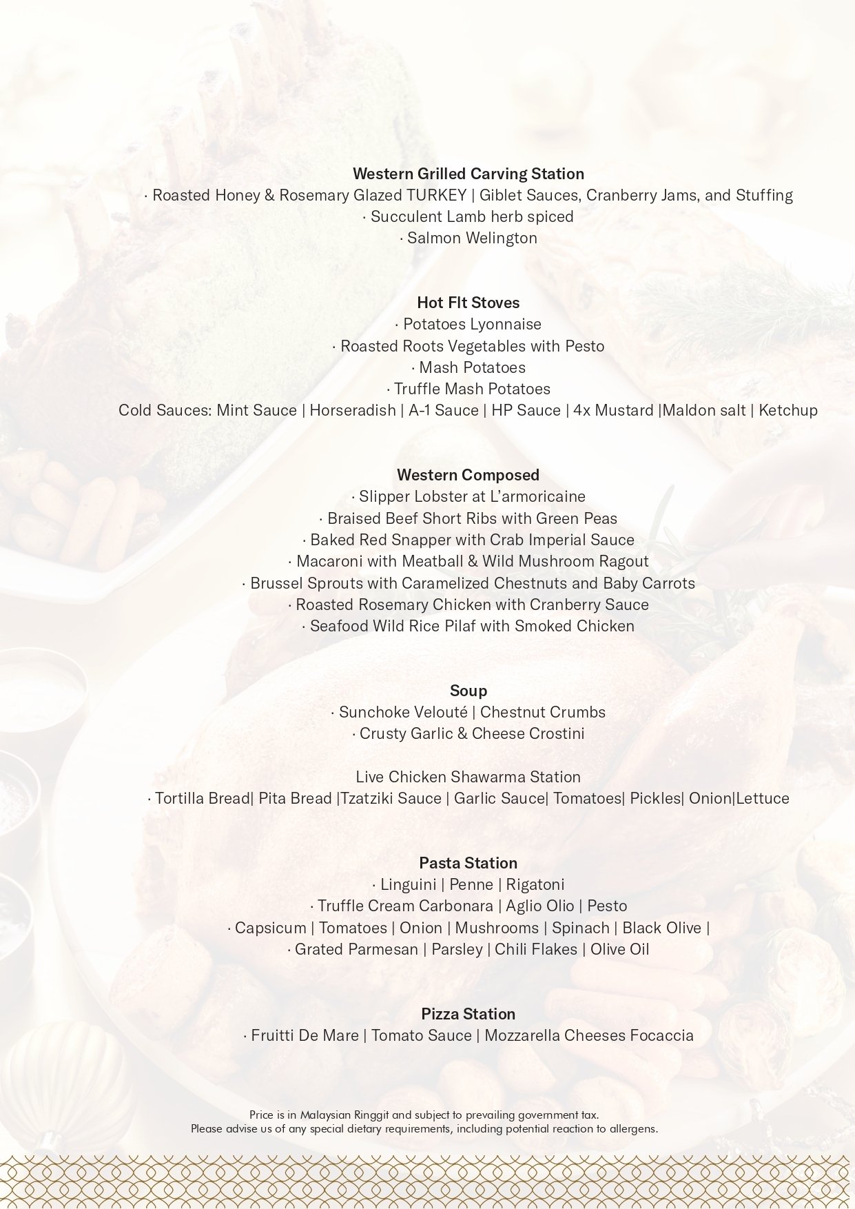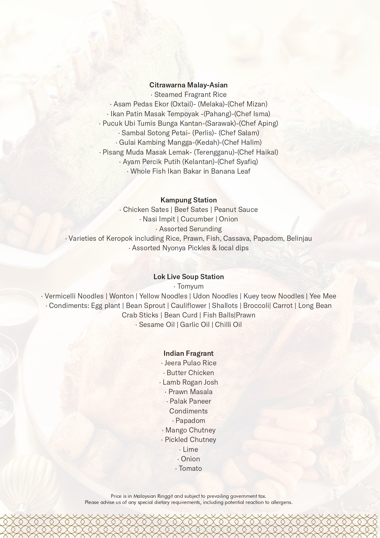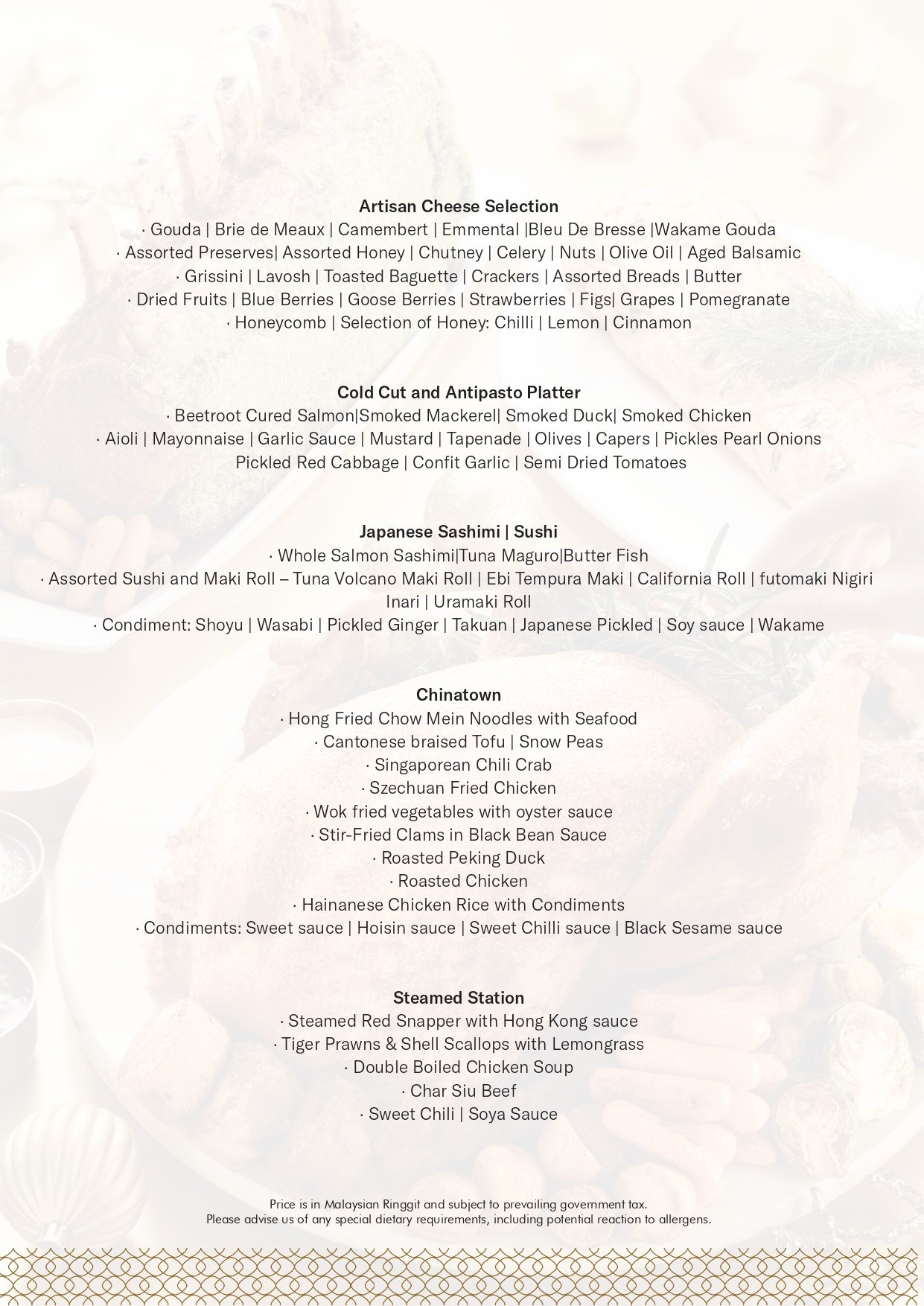 - Pictures shown are for illustrations purpose only. Dishes are subject to the daily menu provided.