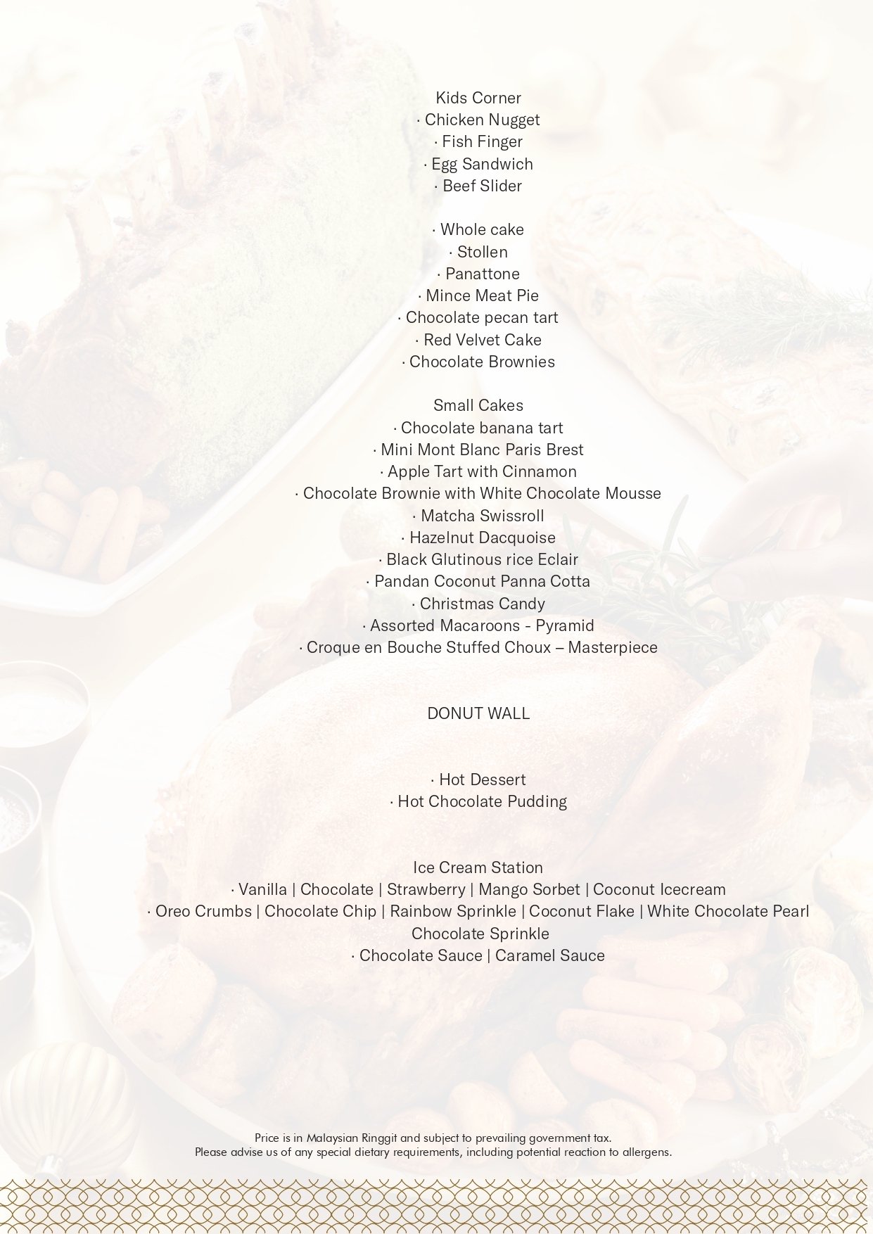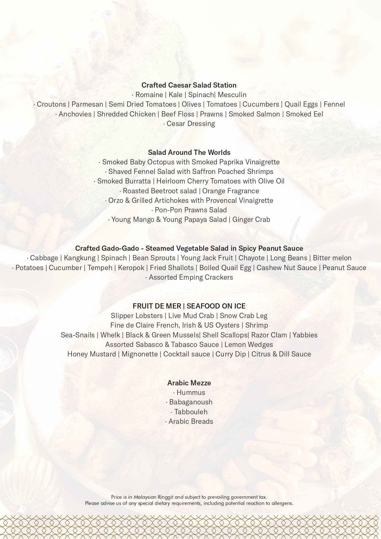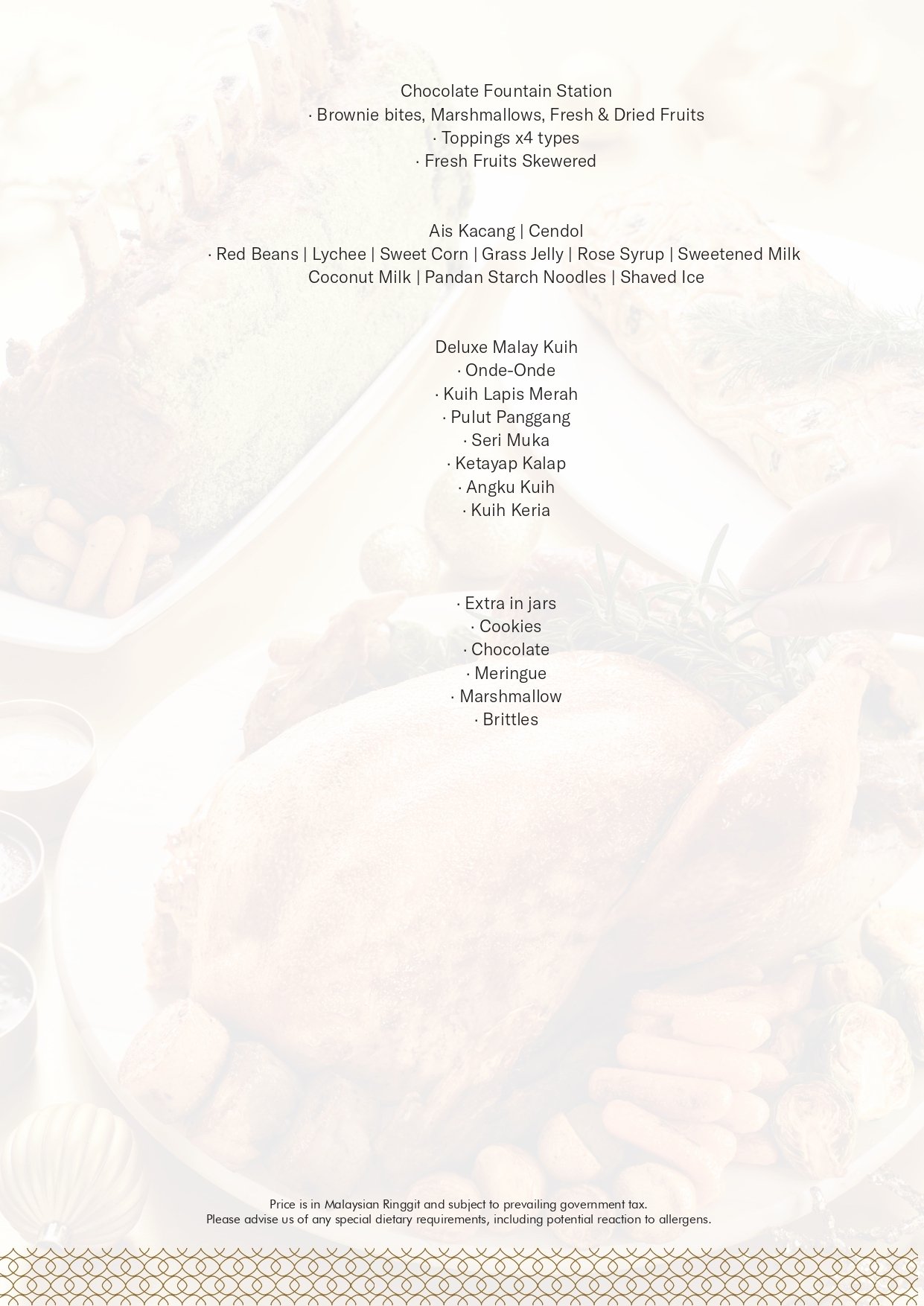 - Pictures shown are for illustrations purpose only. Dishes are subject to the daily menu provided.