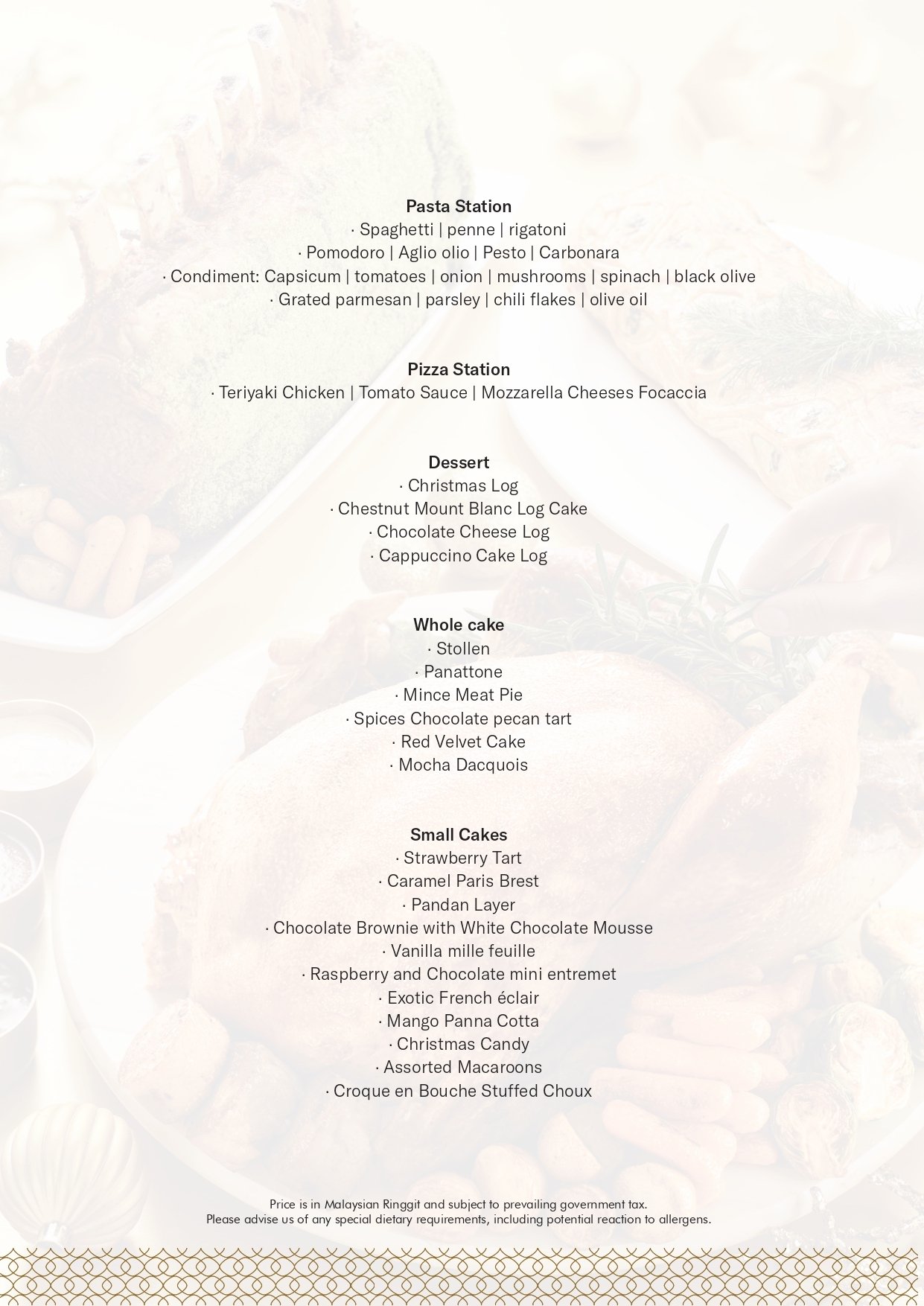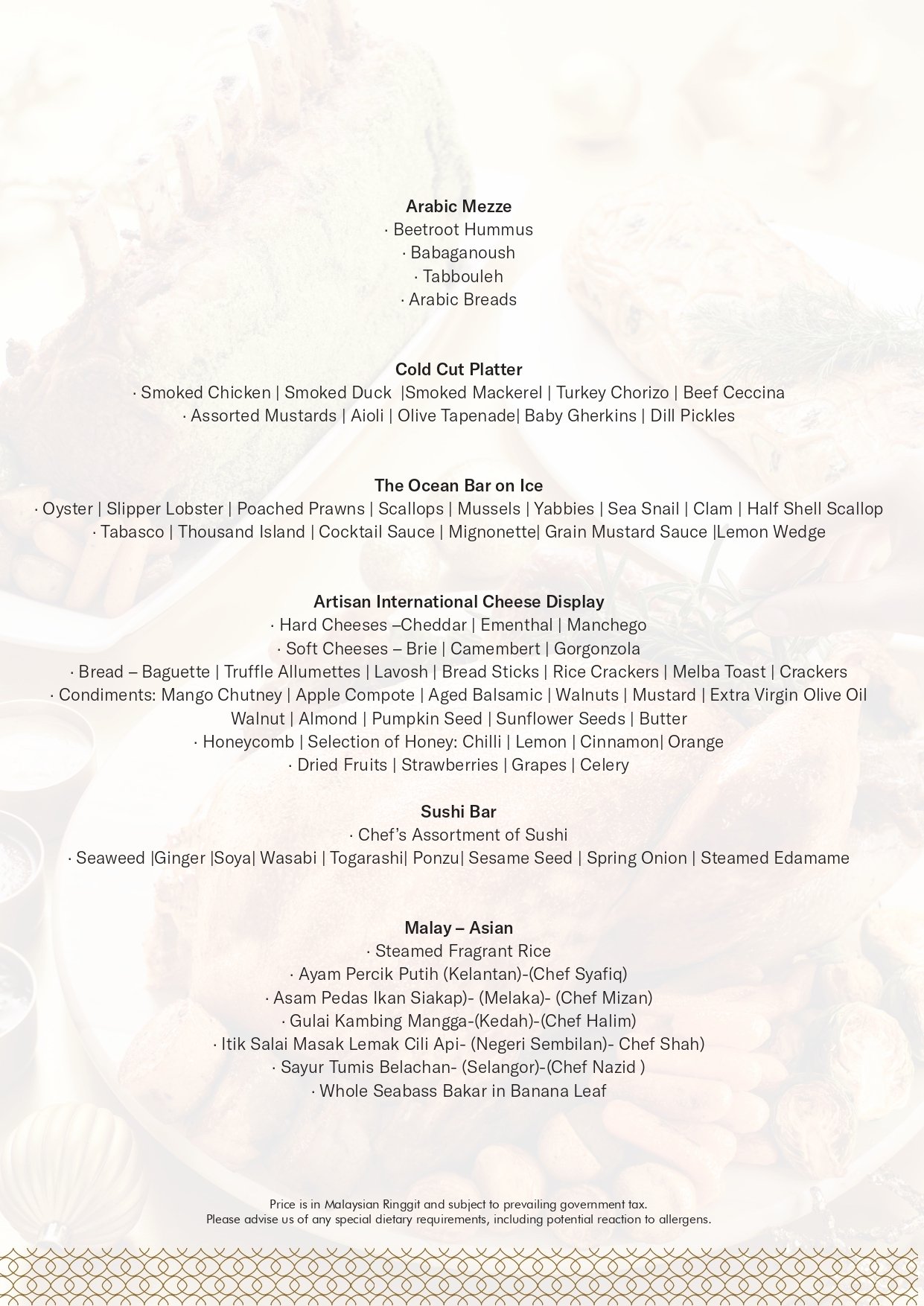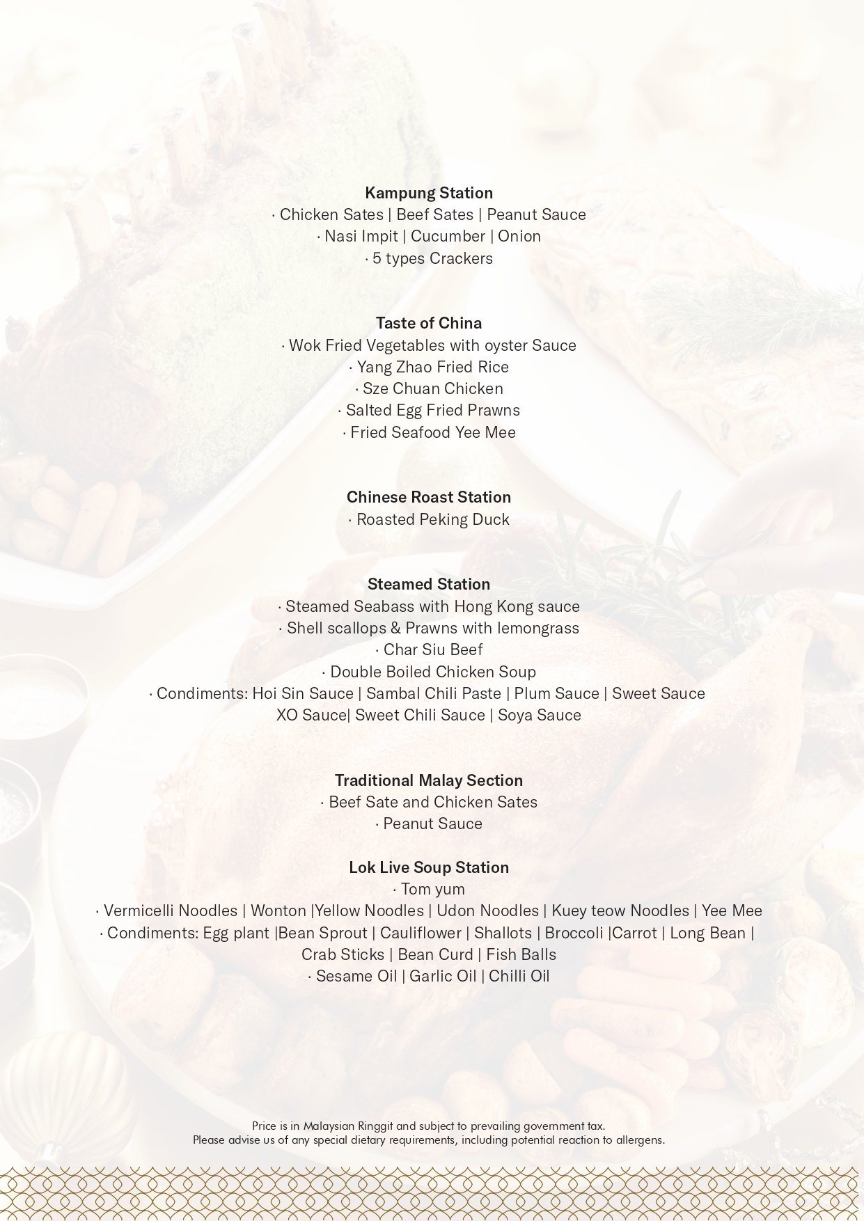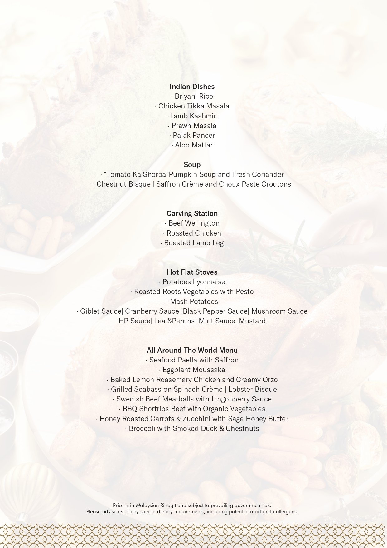 - Pictures shown are for illustrations purpose only. Dishes are subject to the daily menu provided.