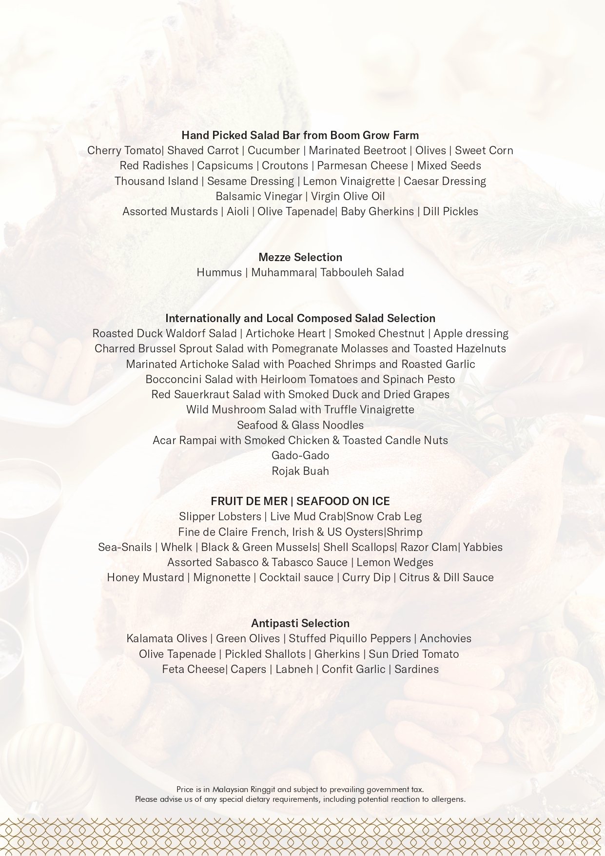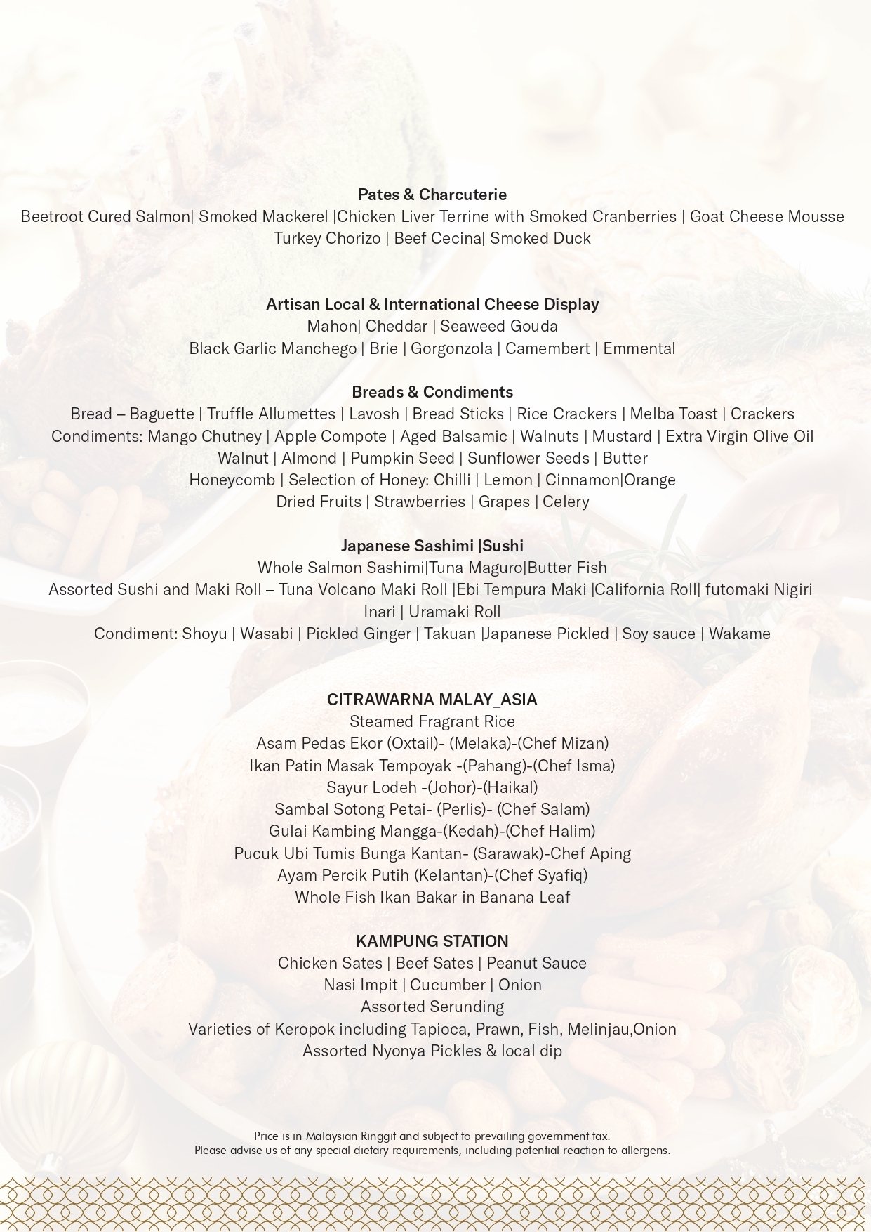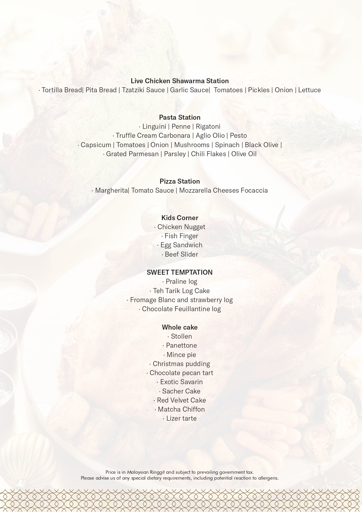 - Pictures shown are for illustrations purpose only. Dishes are subject to the daily menu provided.