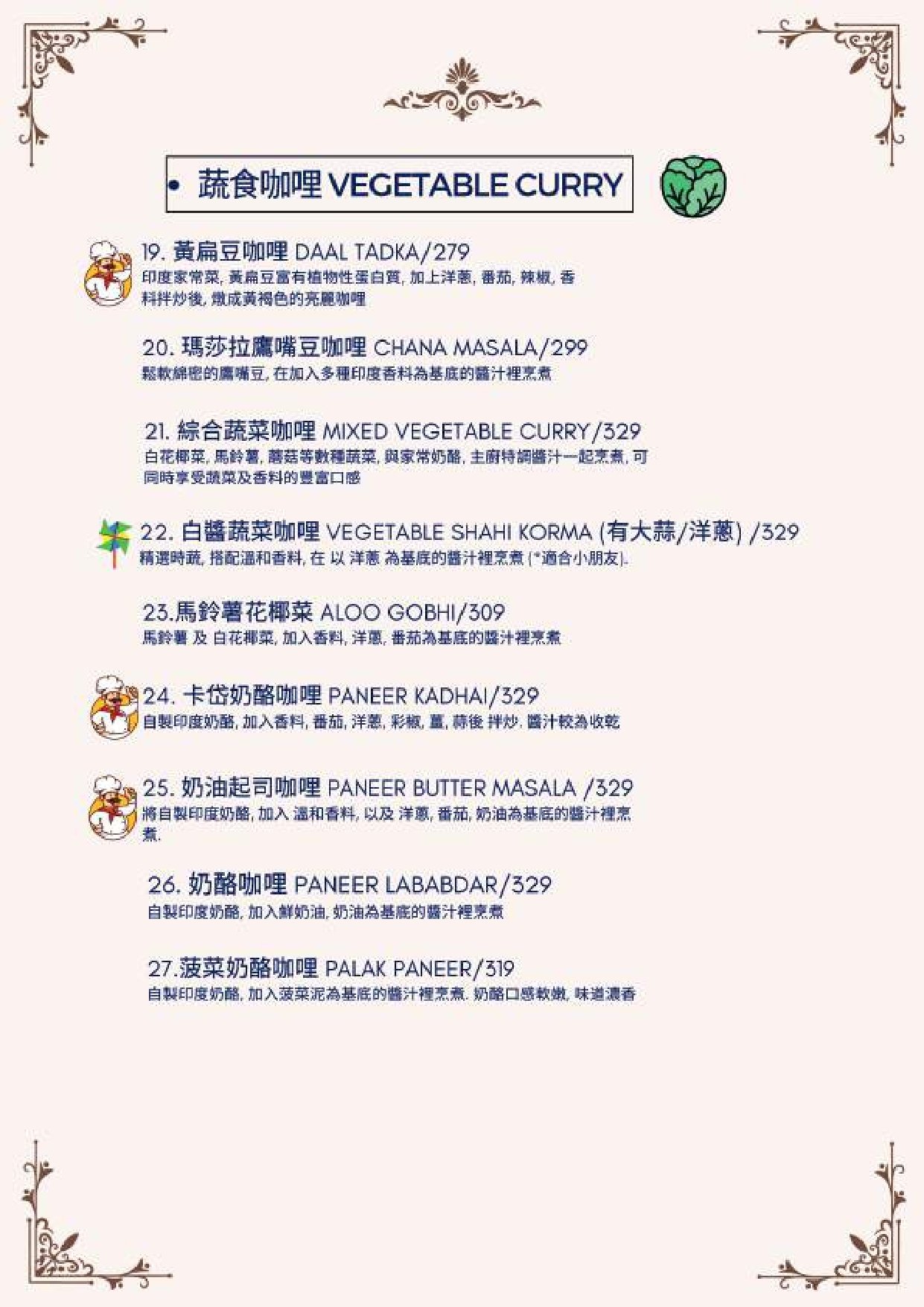 - 4. 蔬菜類咖哩 如不添加/洋蔥/大蒜/香菜,請在點餐時註明,感謝~ (肉類都有洋蔥、大蒜、香菜)