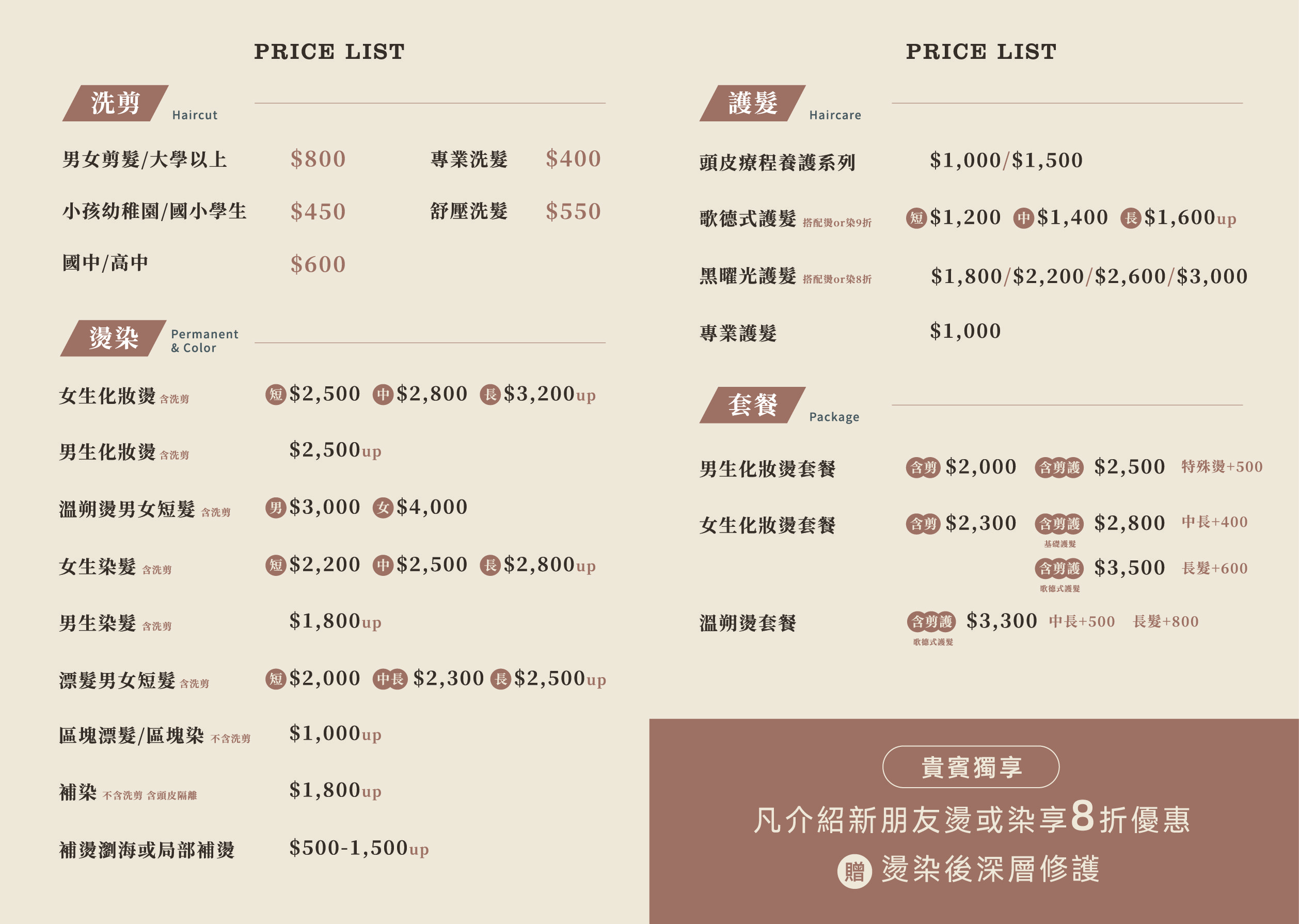 男女剪髮包含大學以上學生