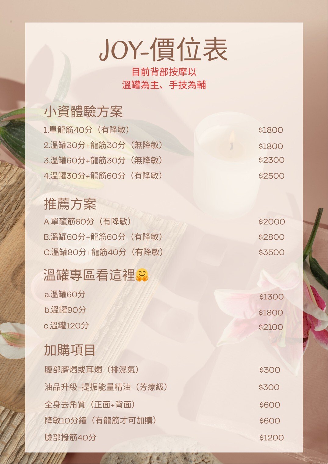 台中JOY老師 |推薦B|溫罐60分+龍筋60分(有降敏)