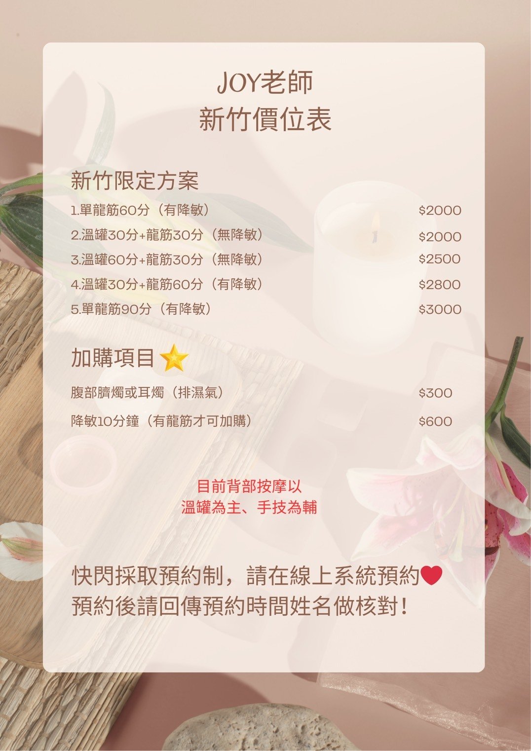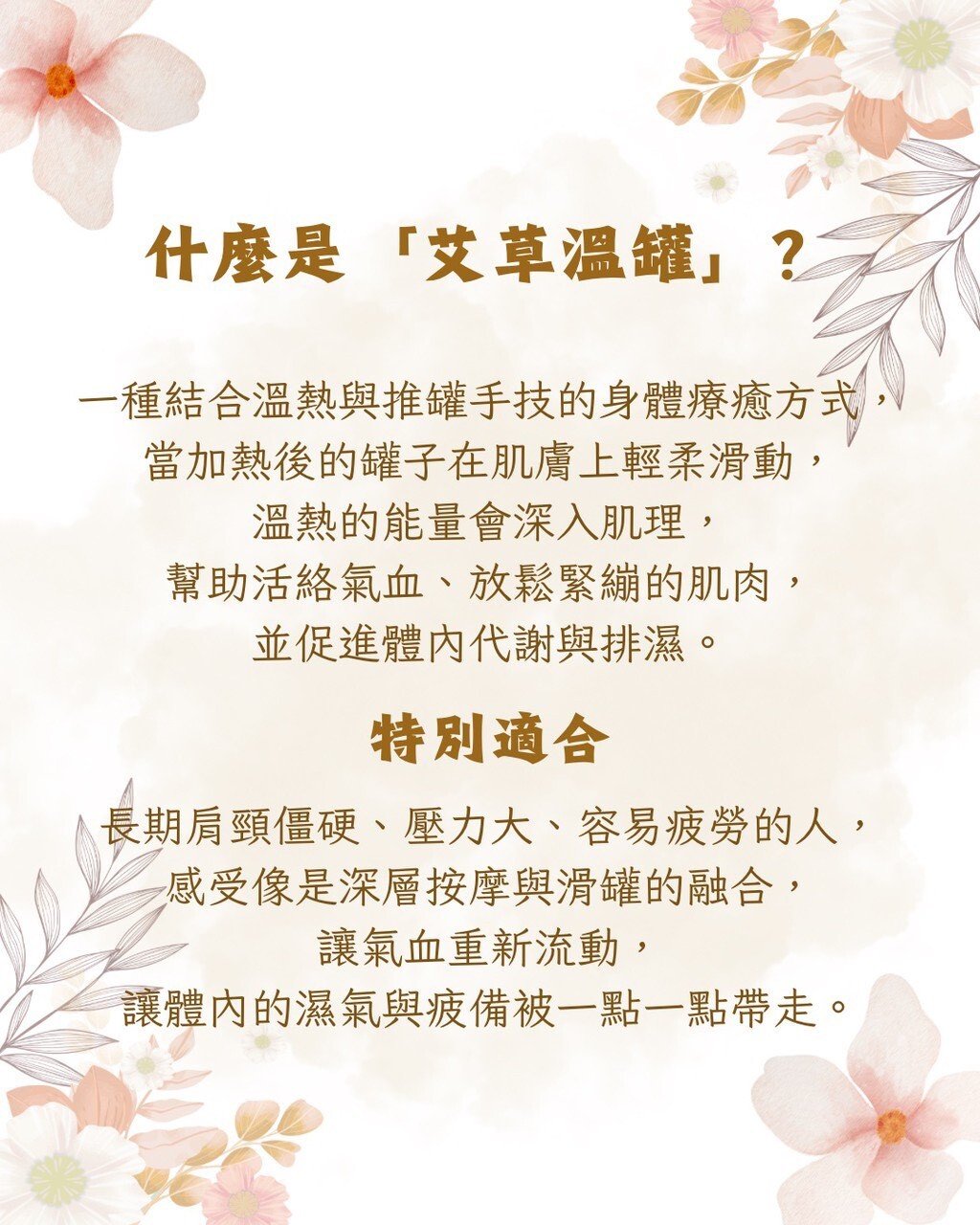 老師的熱情和專業態度始終如一,提供多元化的服務項目,專精於艾草溫罐療法,特別適合怕痛的客戶,療程結束後,回家睡覺會發現好入眠。(老師不便露臉,但人好相處)