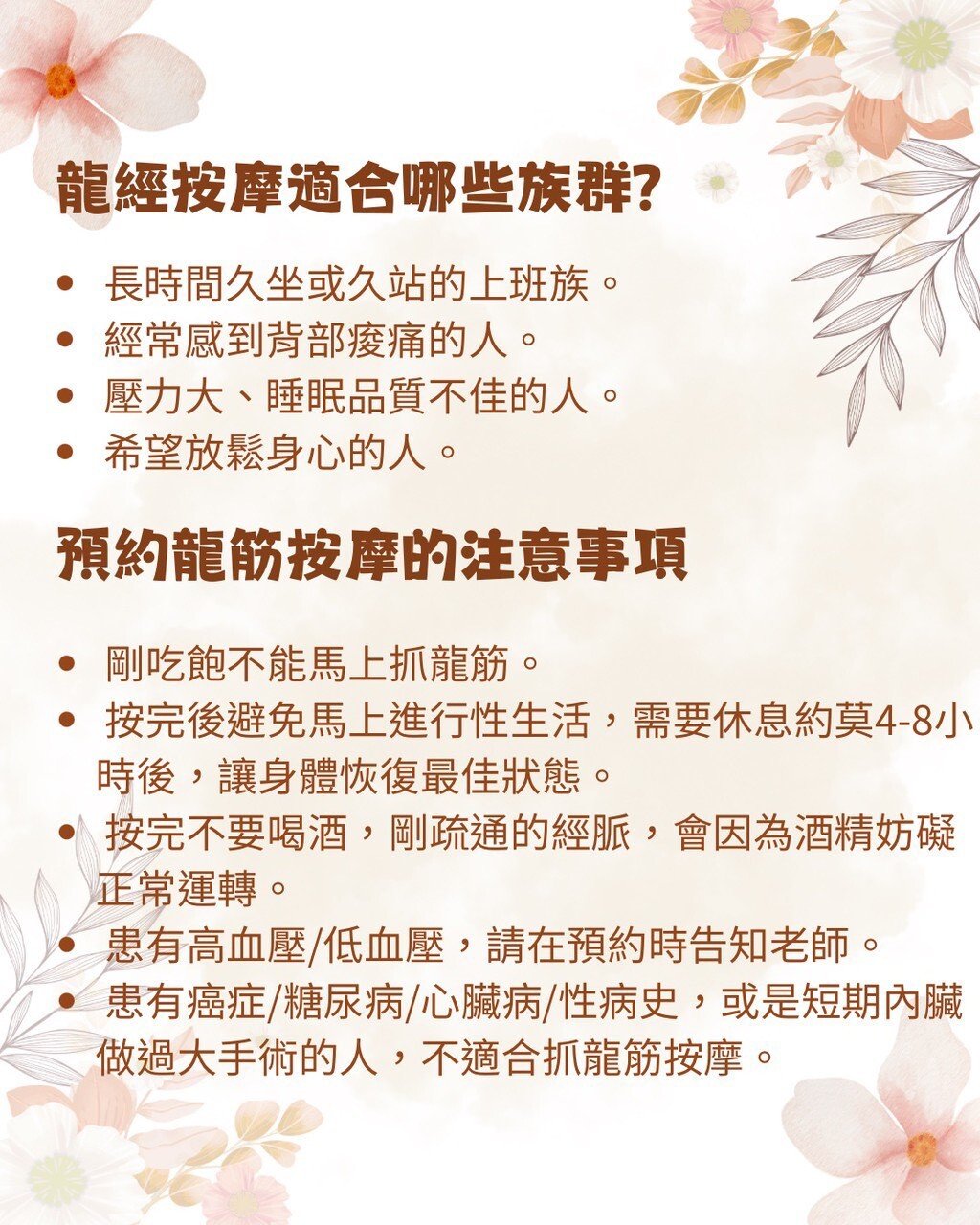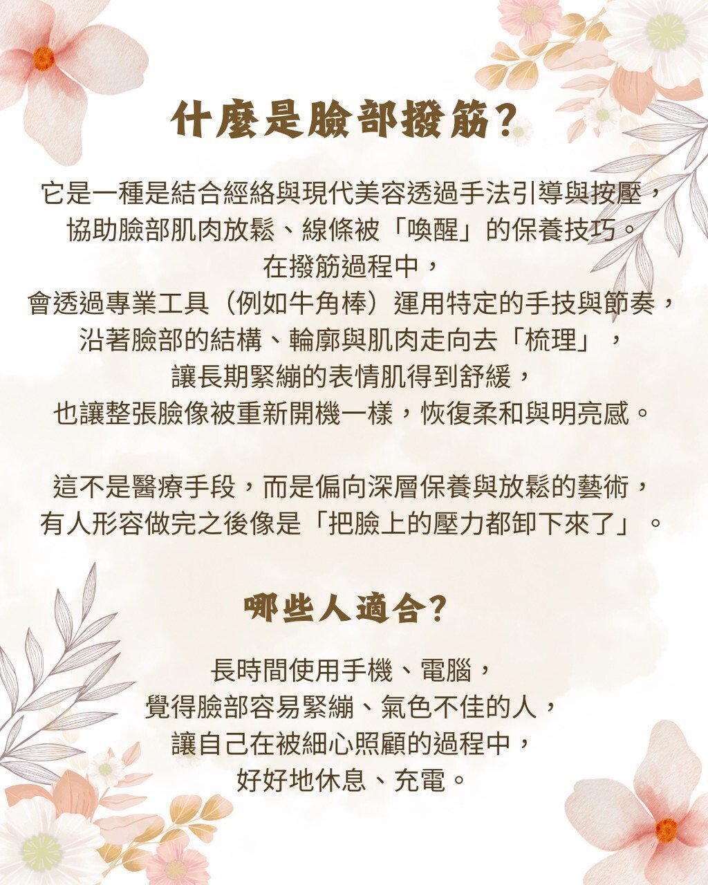 在忙碌的生活節奏中,為自己保留一段安靜放鬆的時光。 我們融合中式與泰式按摩技術,運用循序漸進的筋絡手法與延展技巧,依照身體不同部位的狀態,給予適當的按壓與放鬆。透過細膩的手技與節奏掌握,帶來層次分明、深淺有度的舒適體驗。 每位按摩師皆經過專業培訓,重視手法細節與服務品質,並依照顧客當下的感受調整力道與節奏,讓整體過程自然流暢、安心自在。 空間設計以溫潤沉靜為主調,搭配輕柔音樂與柔和燈光,營造放鬆舒適的氛圍。讓您在靜謐環境中,暫時放下日常繁忙,享受專屬於自己的休憩時刻。 我們相信,真正的放鬆,是一種對自己的溫柔對待。